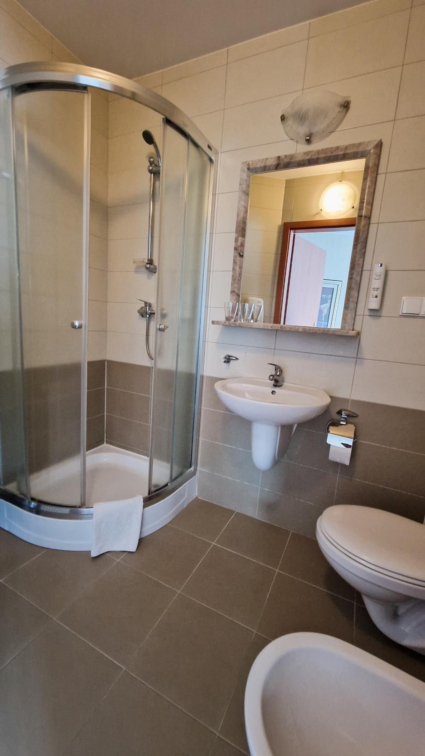 Bardzo dobra lokalizacja. 15 minut spacerkiem od dworca kolejowego. W okolicy dyskonty spożywcze oraz drogerie. Bardzo duży parking. Pokój czysty. Woda pitna dostępna z dystrybutora usytuowanego w korytarzu. Śniadanie w formie bufetu. Duży wybór. Każdy znajdzie coś dla siebie.
