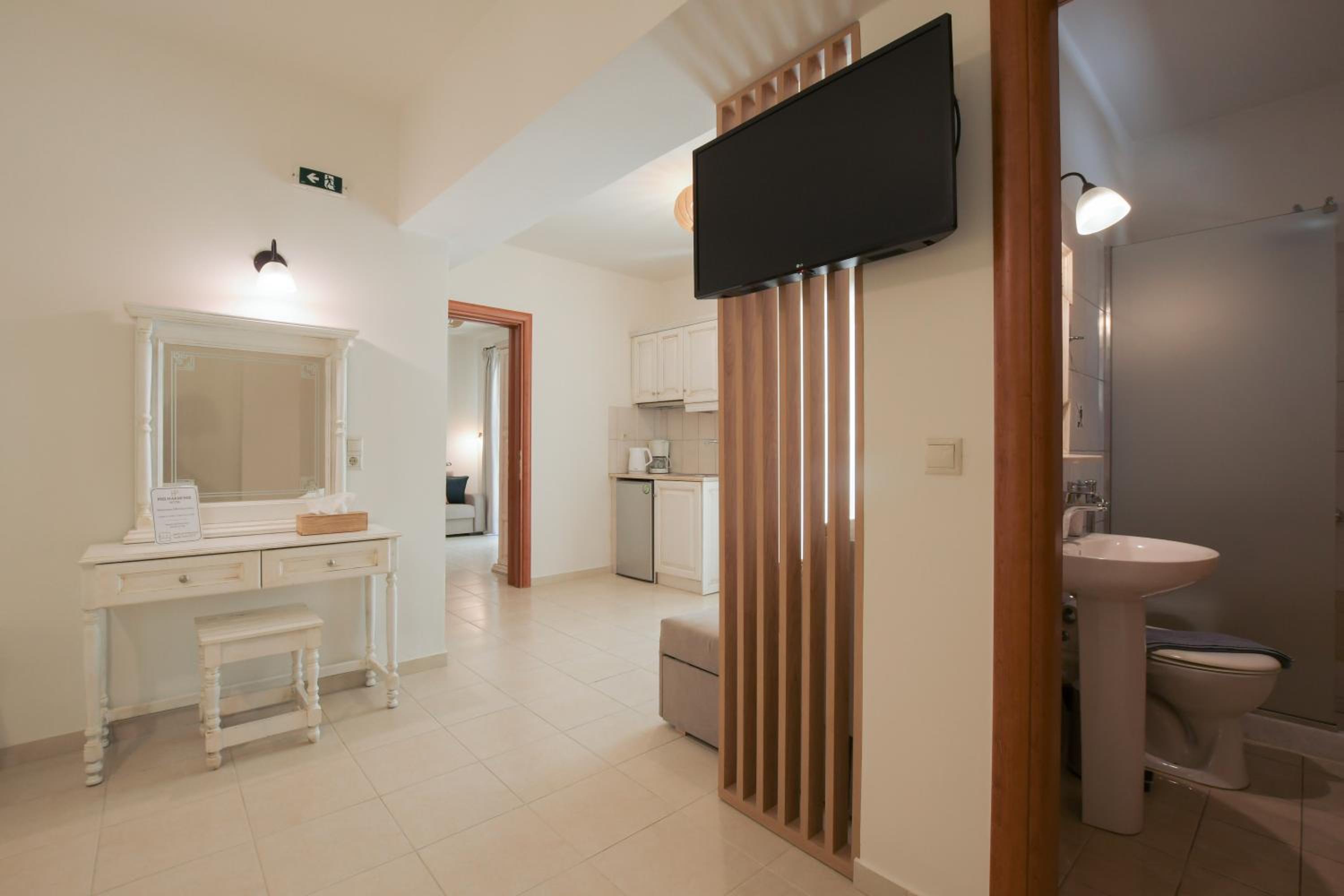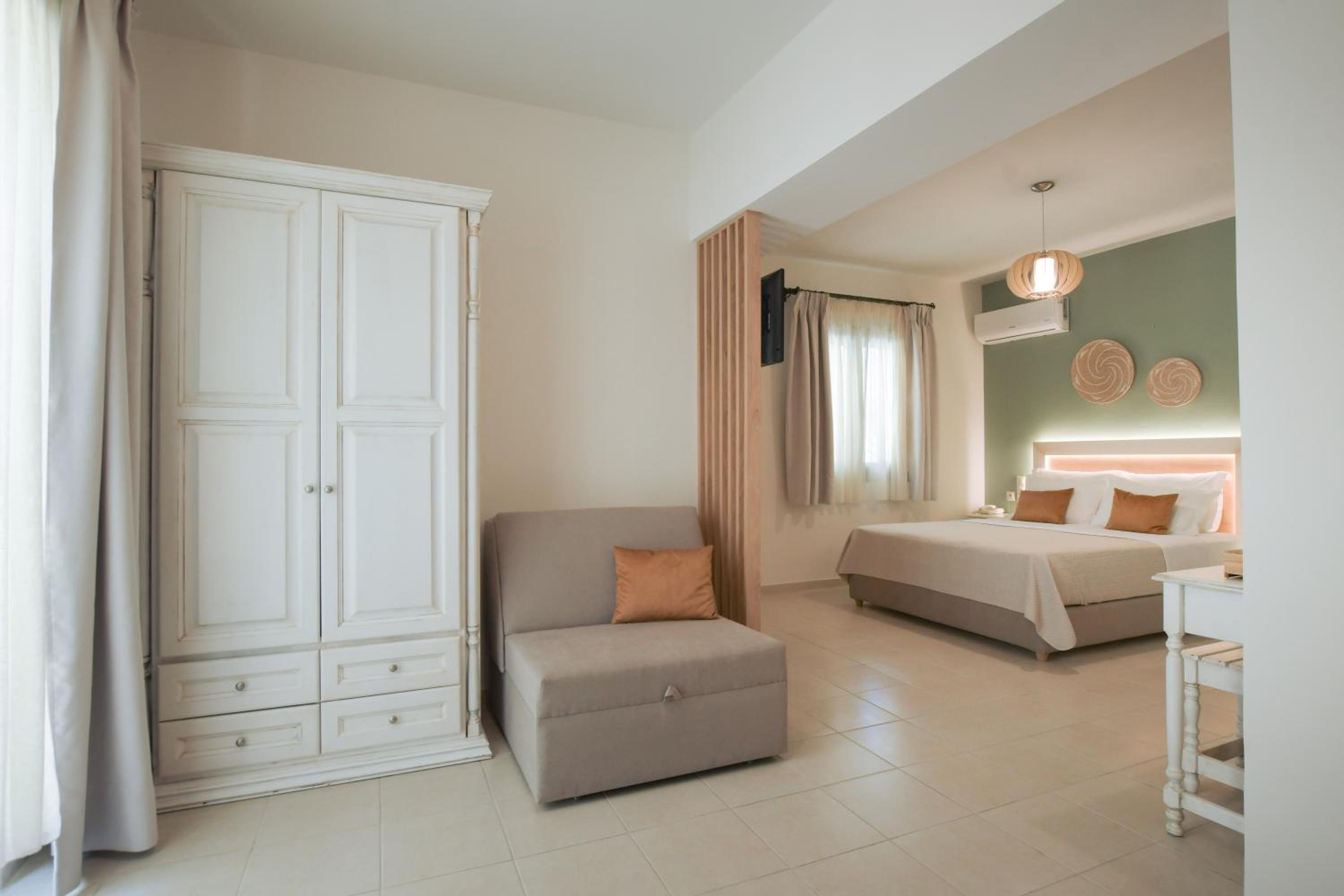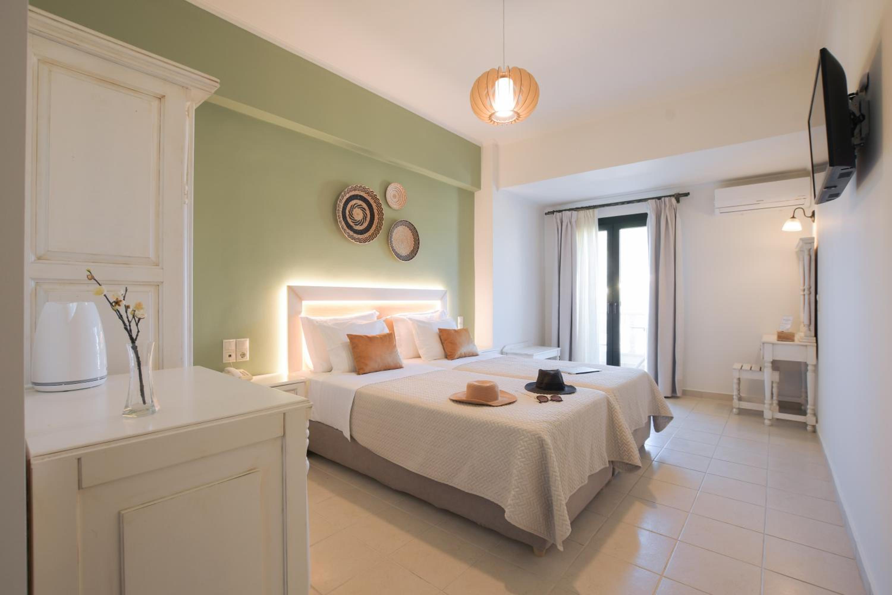 The staff were welcoming, friendly and attentive. They were most helpful in arranging taxis for us whenever needed. Just €15 & 15 minutes to Matala.