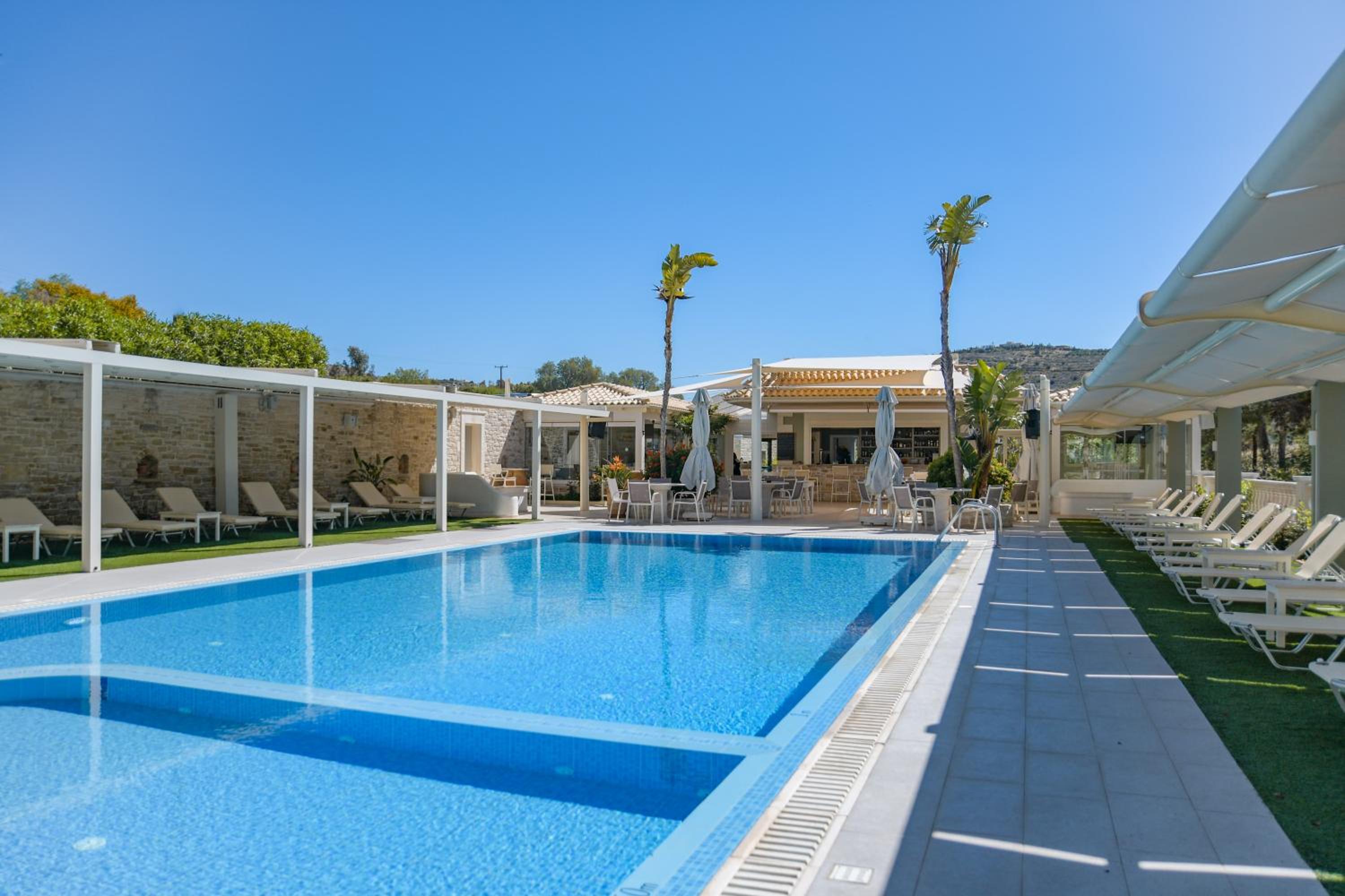 There is a fundamental flaw in how they operate the pool.If you are staying somewhere else or stayed there before but hire a car from the hotel or have a drink there you can use the pool.So people not staying there get to use the pool and the residents like me can not get sun beds for my family….imagine staying there and you can’t get a sun bed because someone has bought a drink from the bar!It upset a lot of hotel guests.