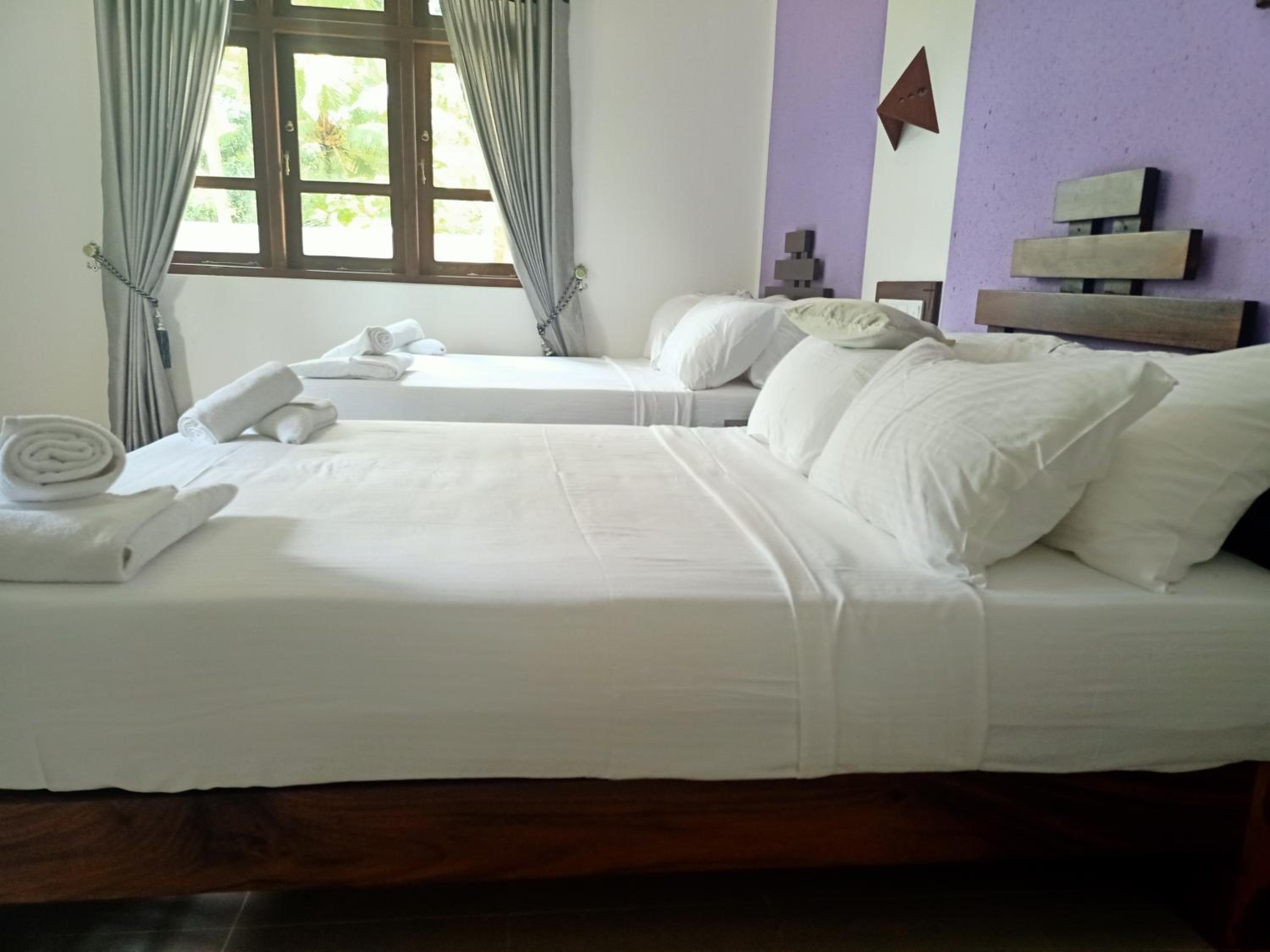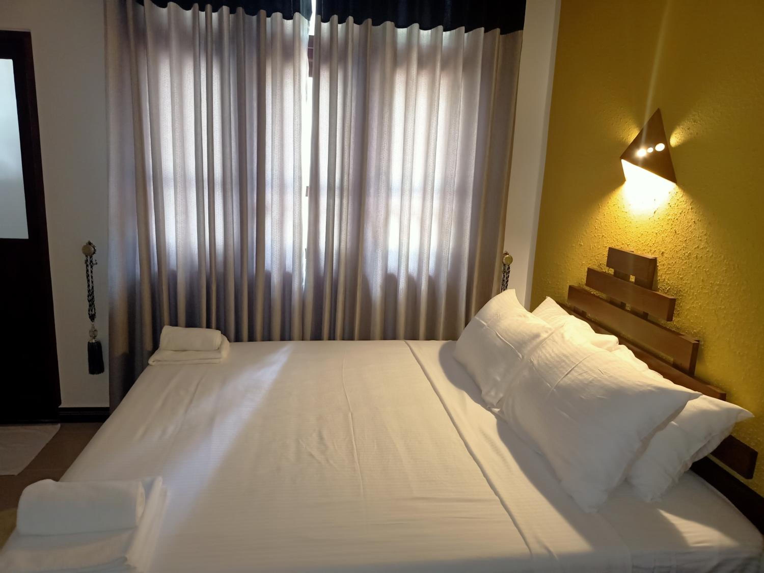 The pictures are deceiving. Positive thing is that the room is spacious and AC is fantastic. Everything else is something to criticize on. I.e a ton of mosquitos, washroom is full of stains, the doors to the bathroom doesn’t close properly making mosquitos to fly into the room through the bathroom. The bed had mattress cover but no blankets whatsoever and had to explicitly request one, which showed up as if a few cats picked a fight in it.