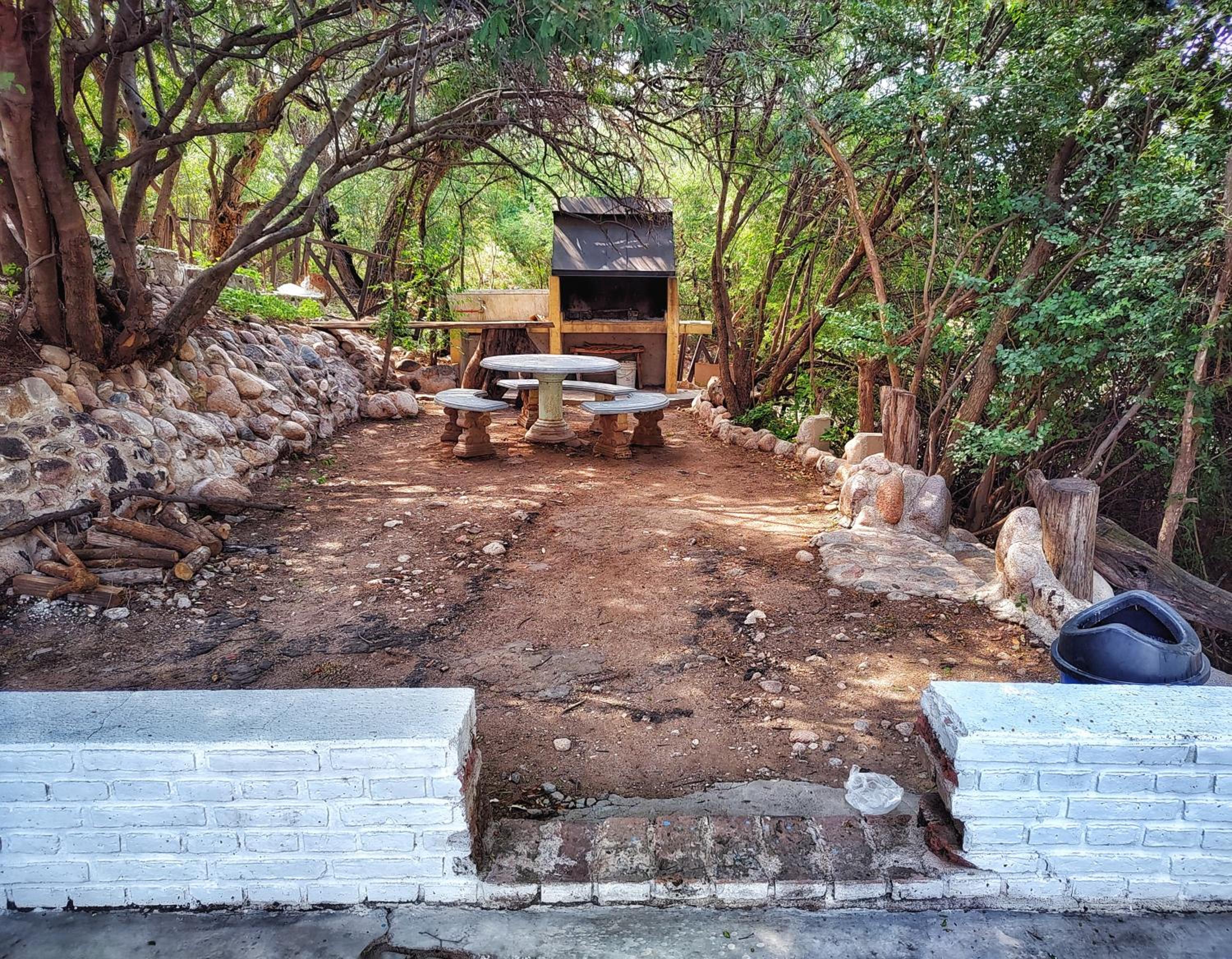 El parque muy grande y para sentarse a descansar entre árboles