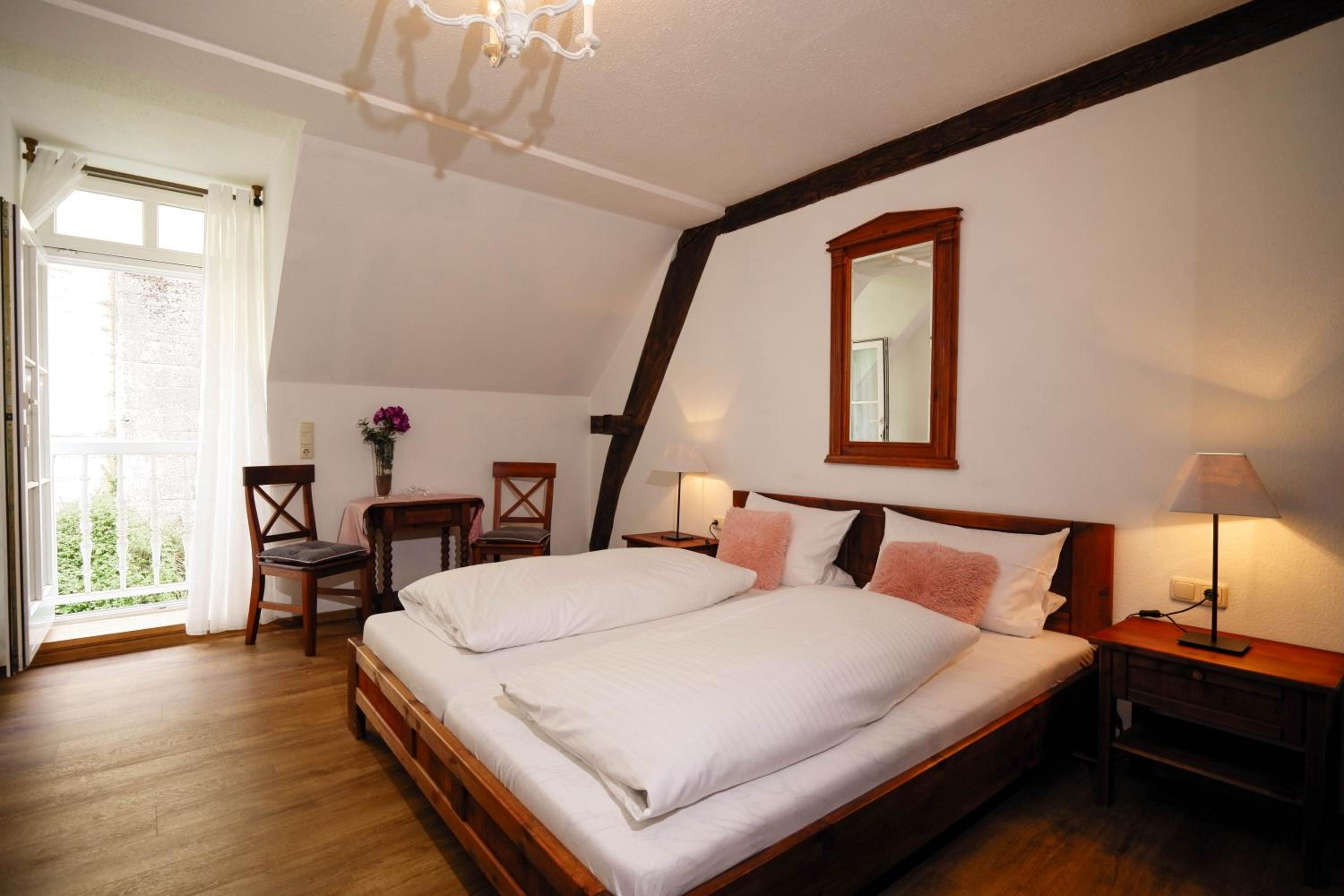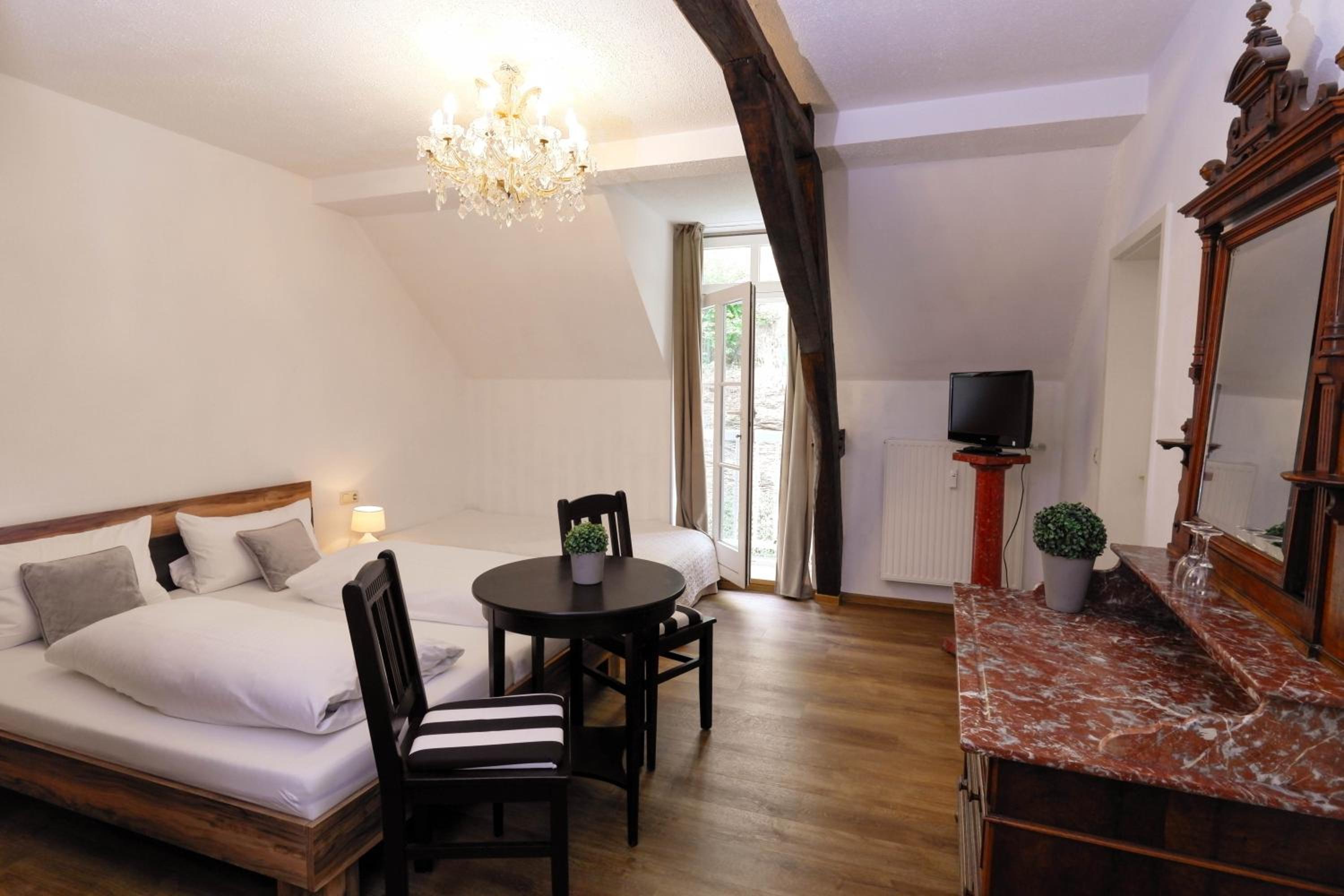 Experience the comfort of homelike rooms at Hotel Klostermühle Siebenborn, some adorned with exposed-timber framework and antique furnishings for a touch of rustic charm.