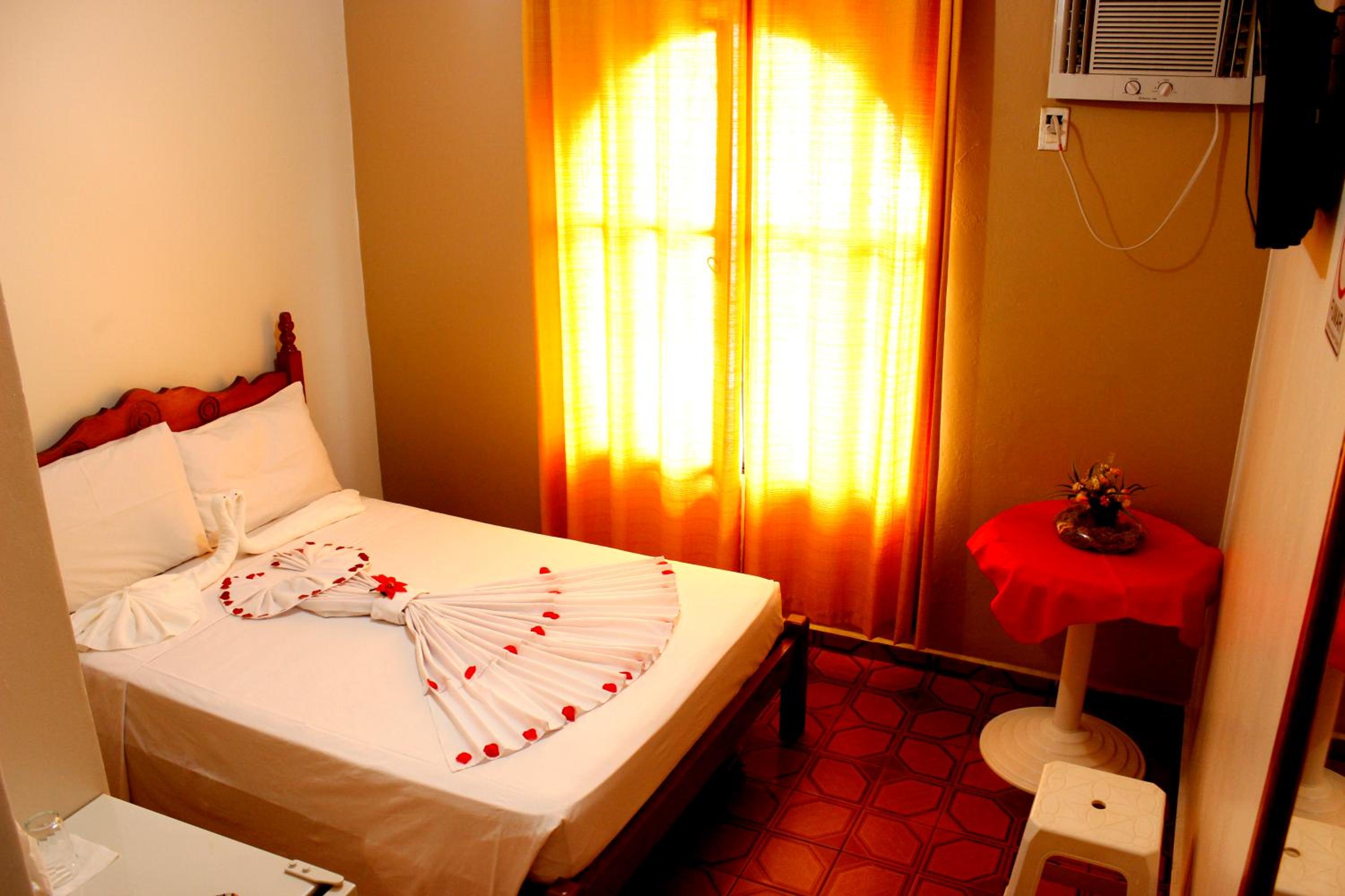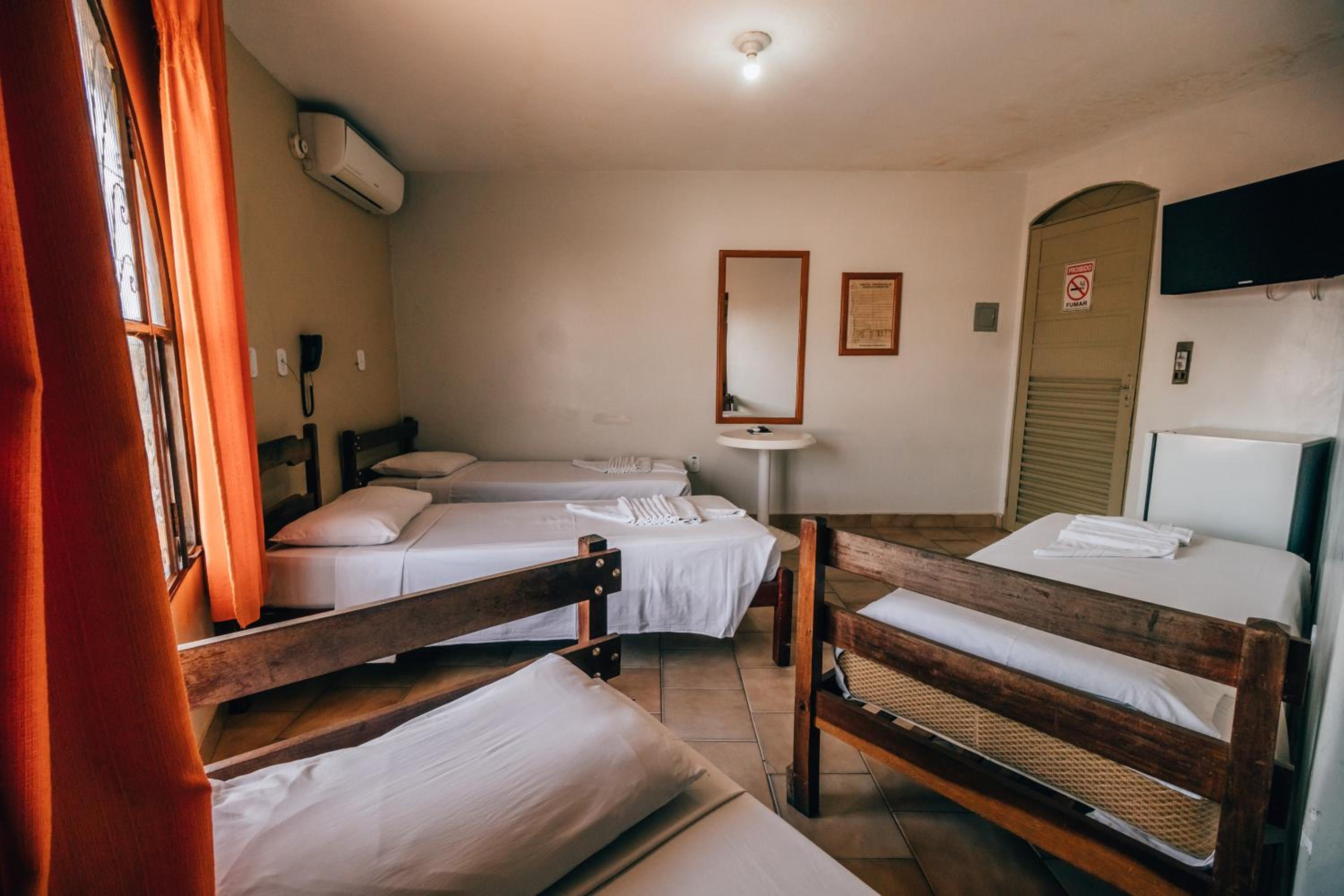 As imagens que colocam no booking não condizem com os quartos que oferecem. As camas estavam todas sujas, com manchas e muita poeira. O quarto é extremamente escuro e abafado. Logo que entrei já comecei a espirrar por conta da rinite. O banheiro ficou está cheio de acabamento grudado no chão e janela, as camas tem um vão nas laterais onde junta mais sujeira ainda. Cortina rasgada em várias partes. O som do microfone da atividade da piscina ecoa pelo quarto, impossível dormir durante o dia ou enquanto tem alguém por ali. As portas que mostram na foto de madeira, a porta é alumínio.