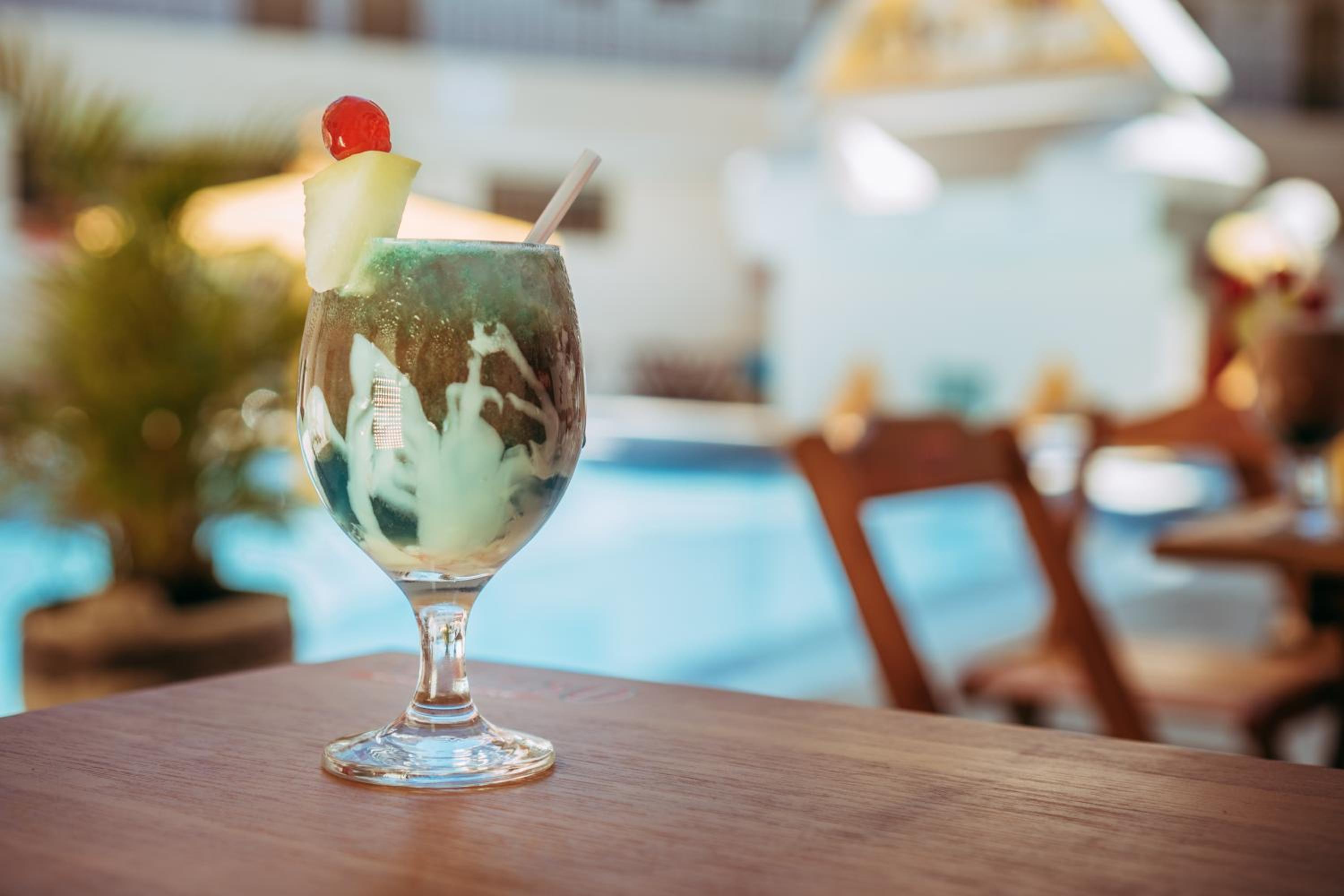 Atendimento na recepção, piscina.