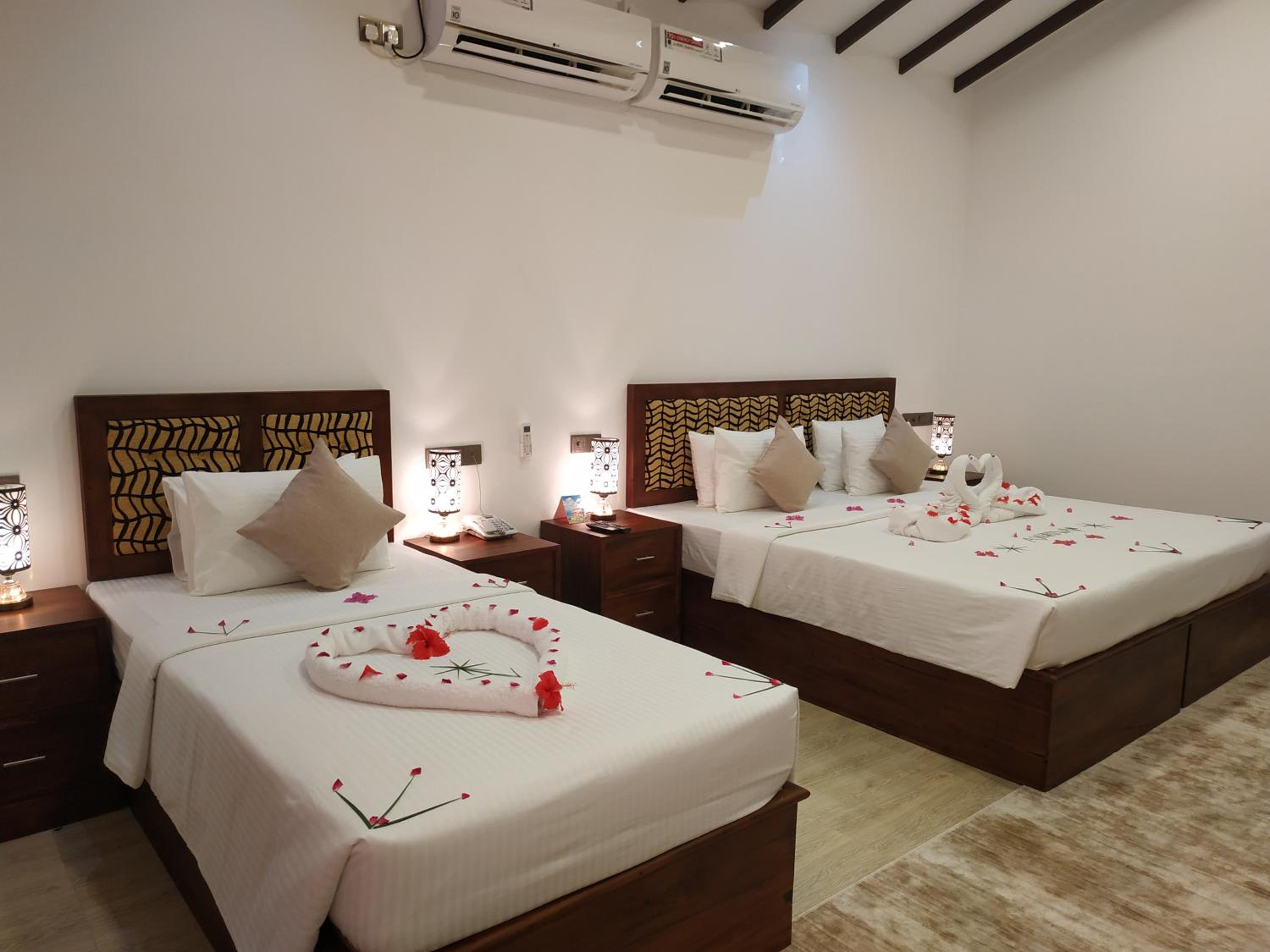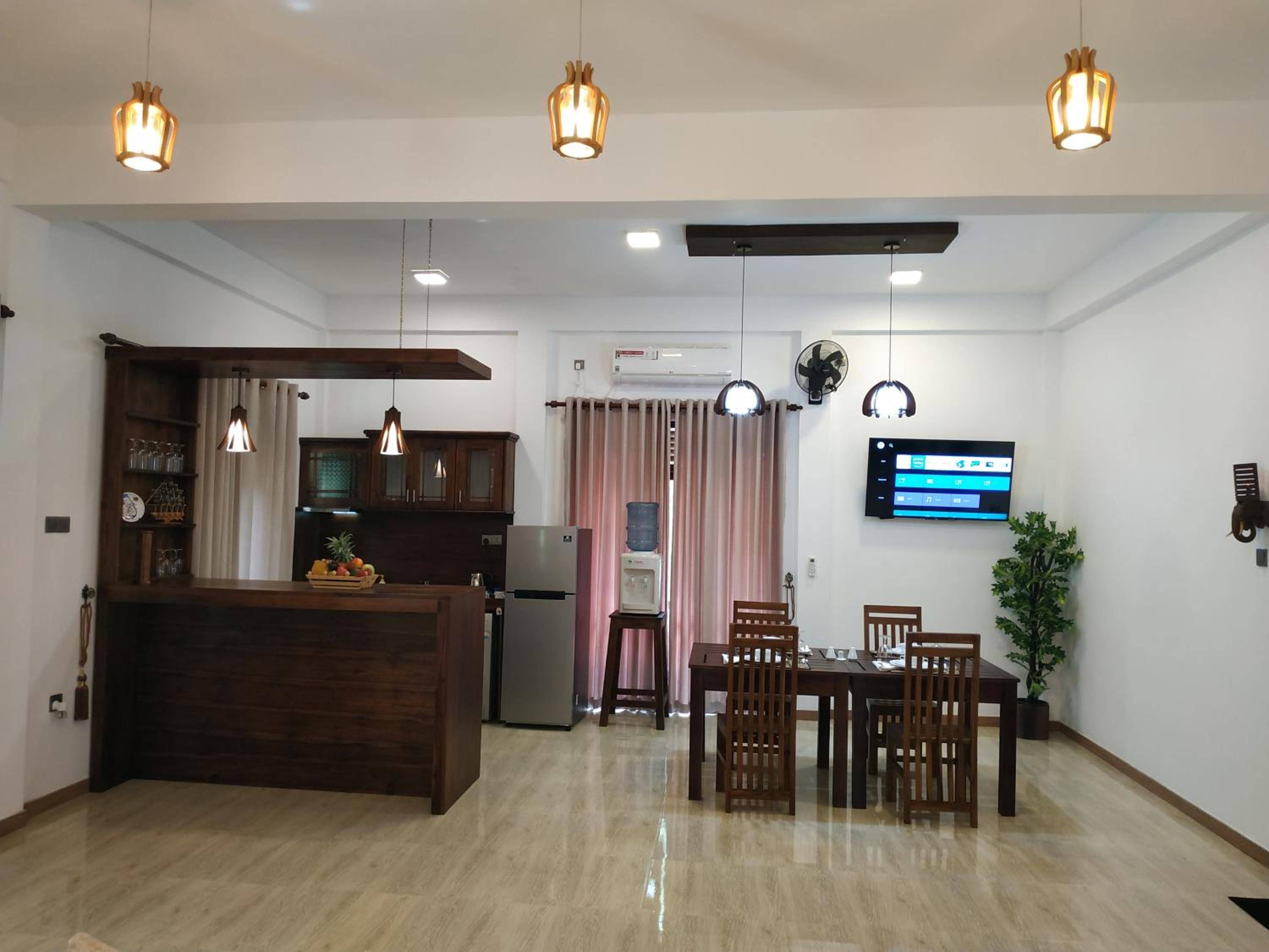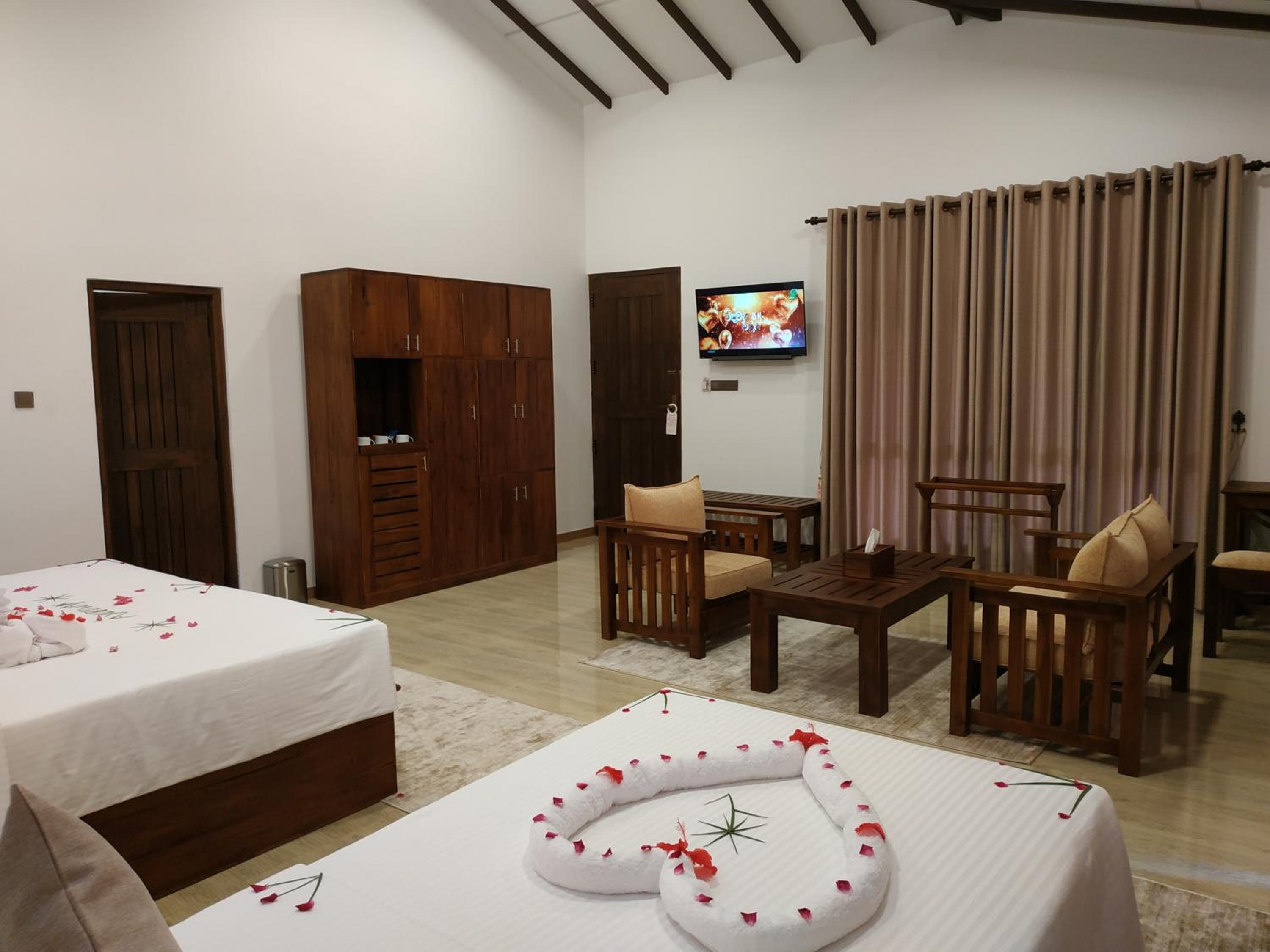 Это лучший отель в Сигирии! Шикарный номер - очень большой! Нам с 2 детьми было просторно. Вокруг будто джунгли настоящие. Домик на дереве, гамаки, бассейн. Отличная кухня и гостиная. Две большие спальни с ванными, везде телевизоры.