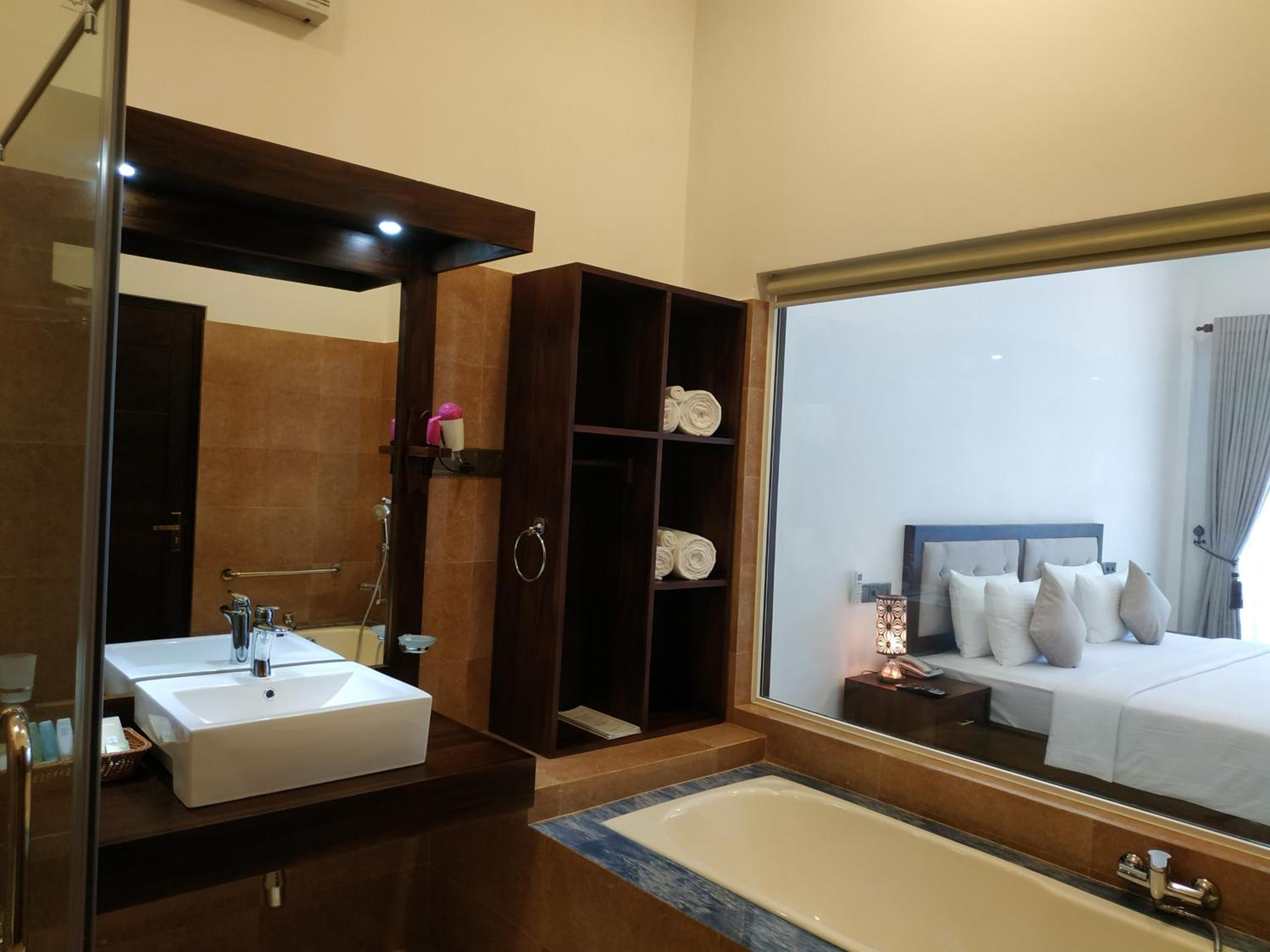 Fewer options for Indian vegetarian but The breakfast was authentic Srilankan that we tried. The staff was very courteous and the room size almost 500 sq. Ft. was and ambience in it was amazing. The bathroom size almost 150 sq. Ft. and accessories in it were also best that one can ask for.