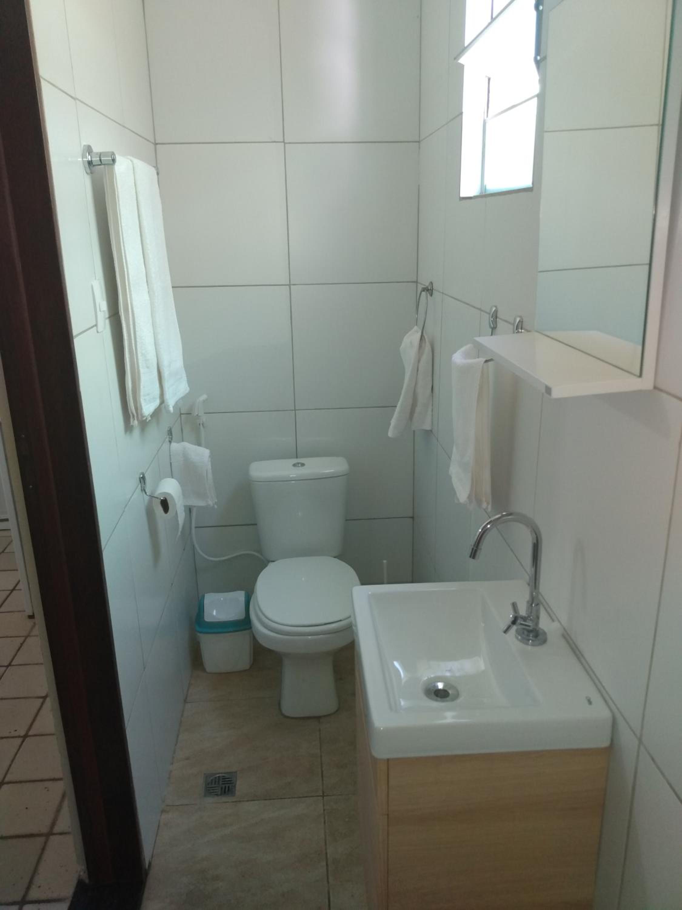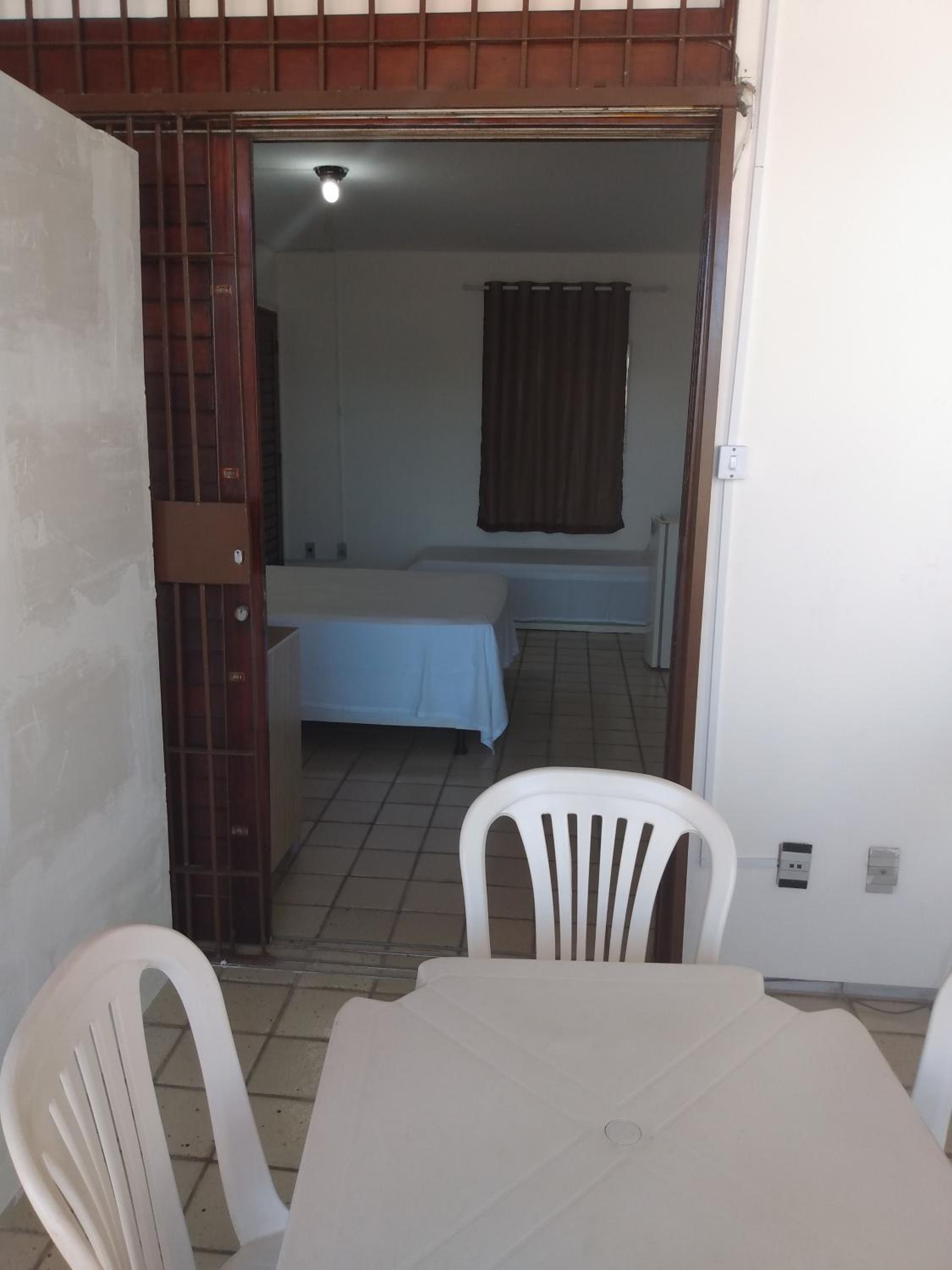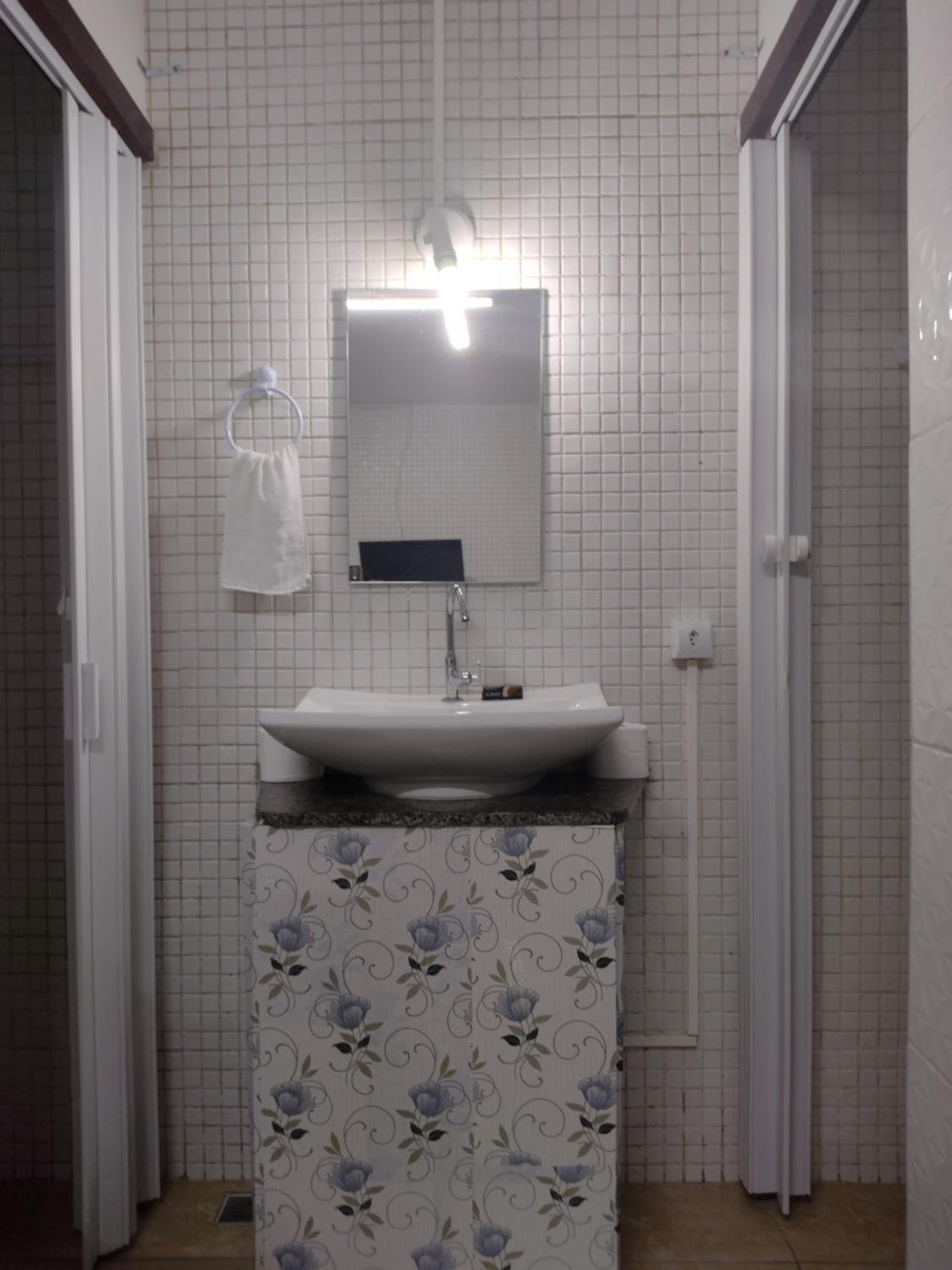 TV antiga, só pega canais locais e não é possível espelhar a tela de outro dispositivo; A varanda é dividida com madeira, o que pode comprometer a privacidade; A chave do chuveiro está com defeito, fica sempre água pingando e, como o chão tá mal nivelado em relação ao ralo, fica sempre uma grande poça d'água; O cesto de lixo do banheiro não tem tampa, podendo favorecer mau cheiro.