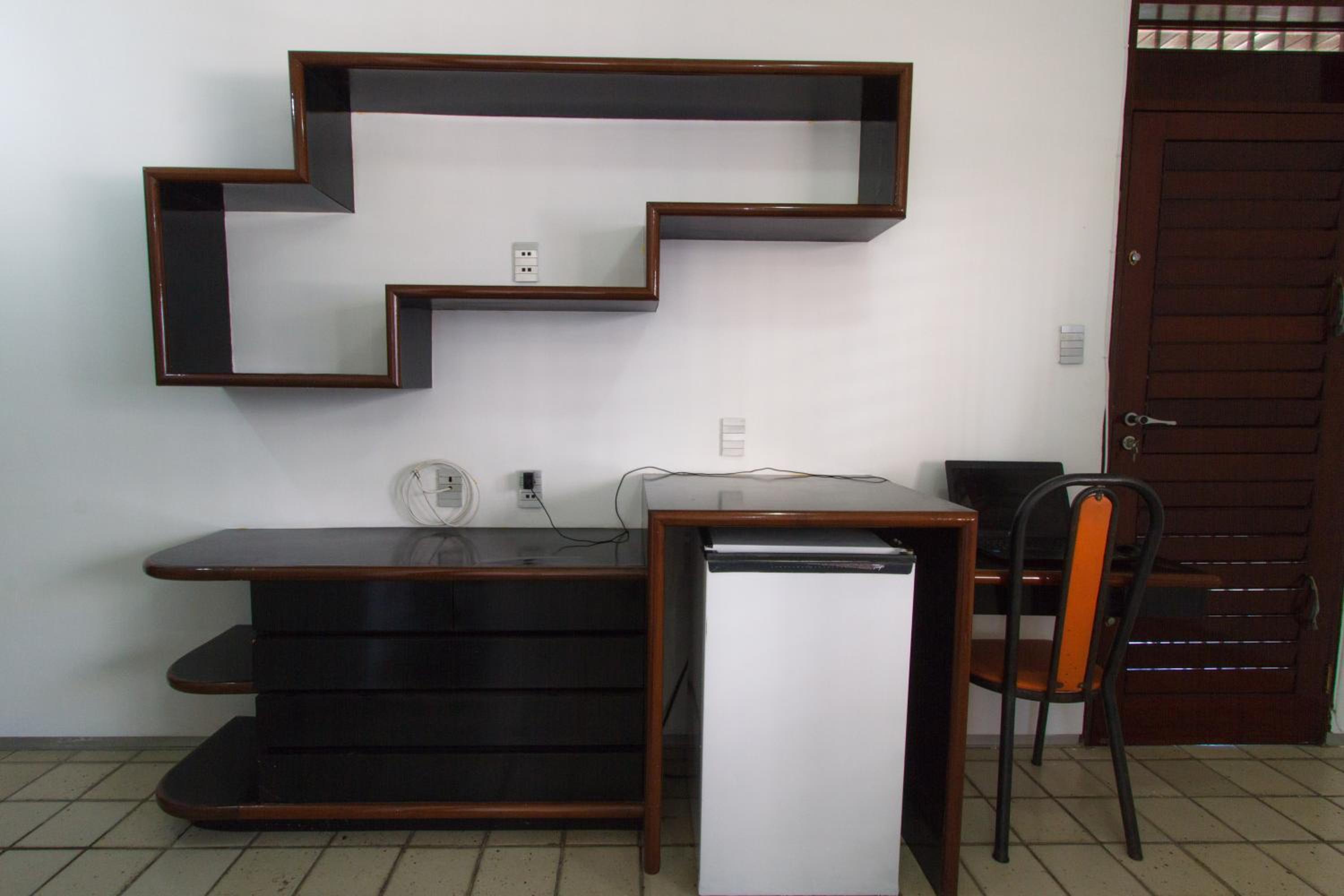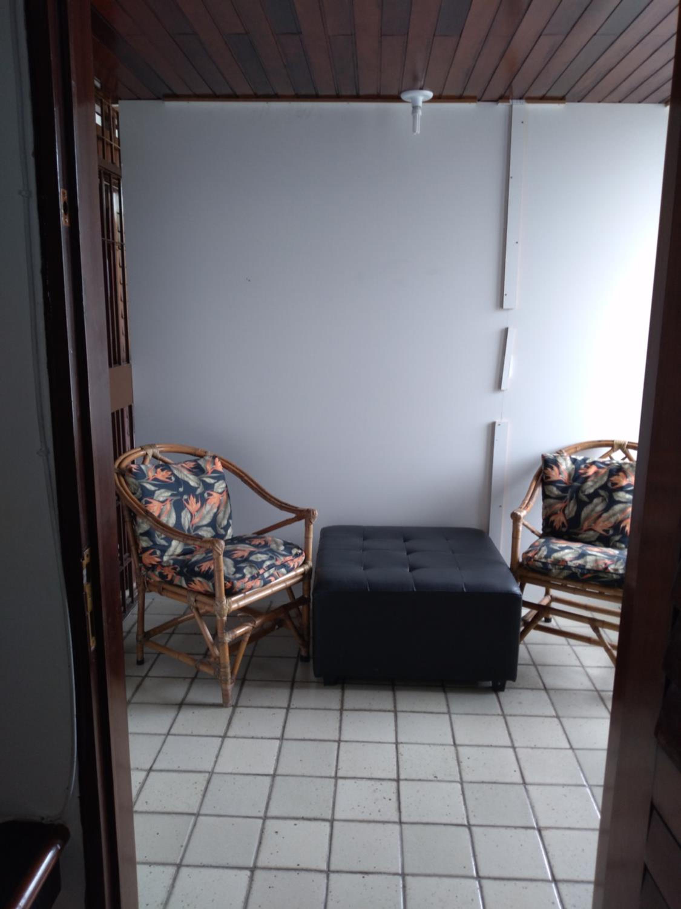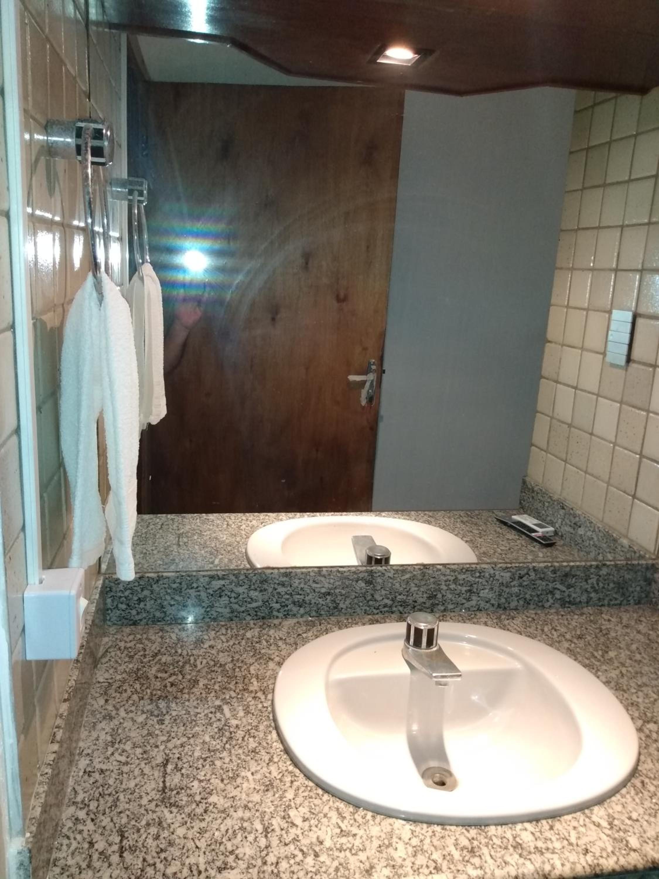 TV antiga, só pega canais locais e não é possível espelhar a tela de outro dispositivo; A varanda é dividida com madeira, o que pode comprometer a privacidade; A chave do chuveiro está com defeito, fica sempre água pingando e, como o chão tá mal nivelado em relação ao ralo, fica sempre uma grande poça d'água; O cesto de lixo do banheiro não tem tampa, podendo favorecer mau cheiro.