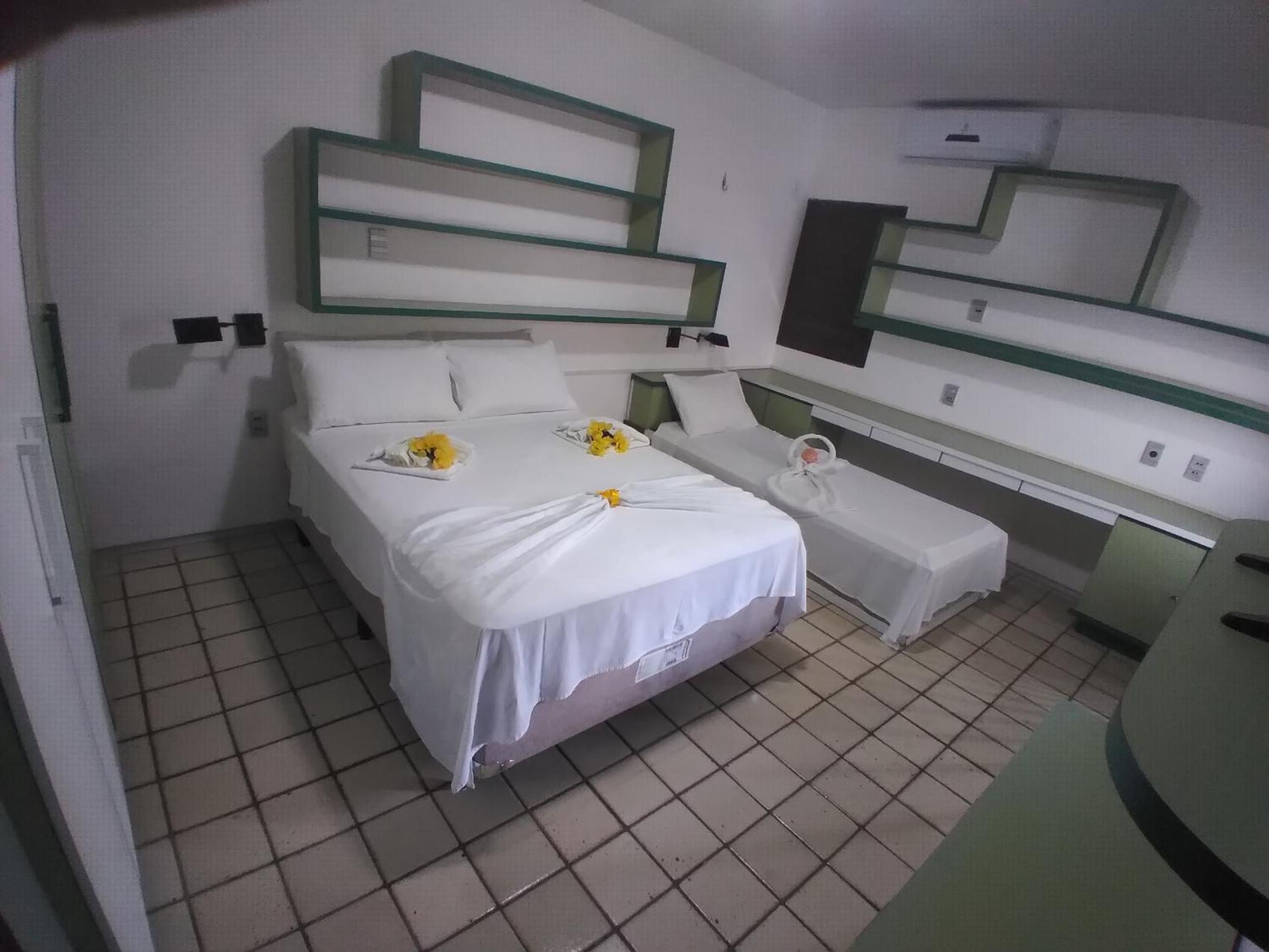 Quarto e banheiros grandes