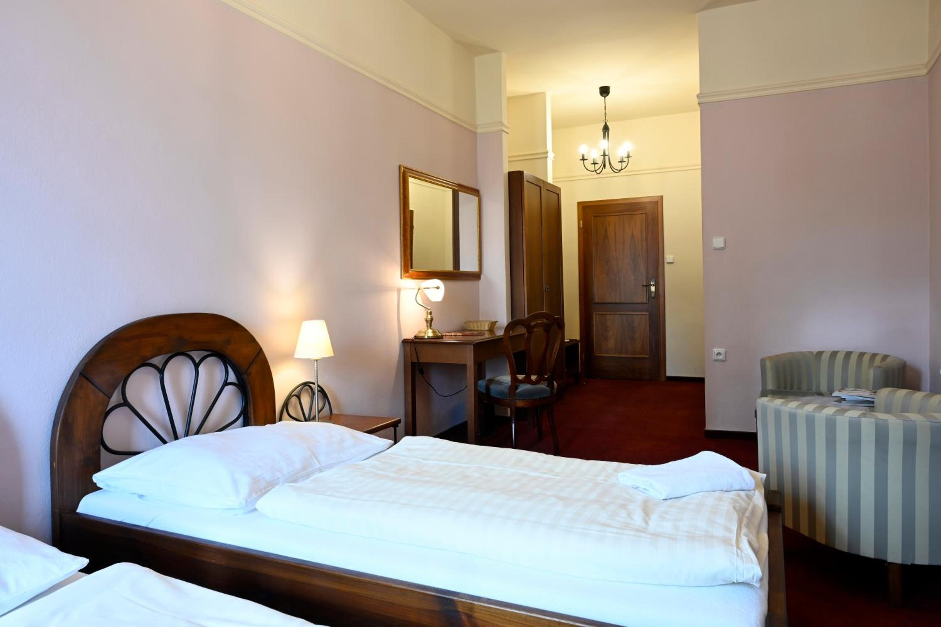 Hotel Boucek, located at Kroměříž’s main square, offers a picturesque view of the UNESCO-protected Archbishop's Palace from its rooms. The renovated rooms in 2011 feature modern amenities such as satellite TV, free Wi-Fi, and comfortable work desks. Some rooms even boast a spacious seating area for relaxation.