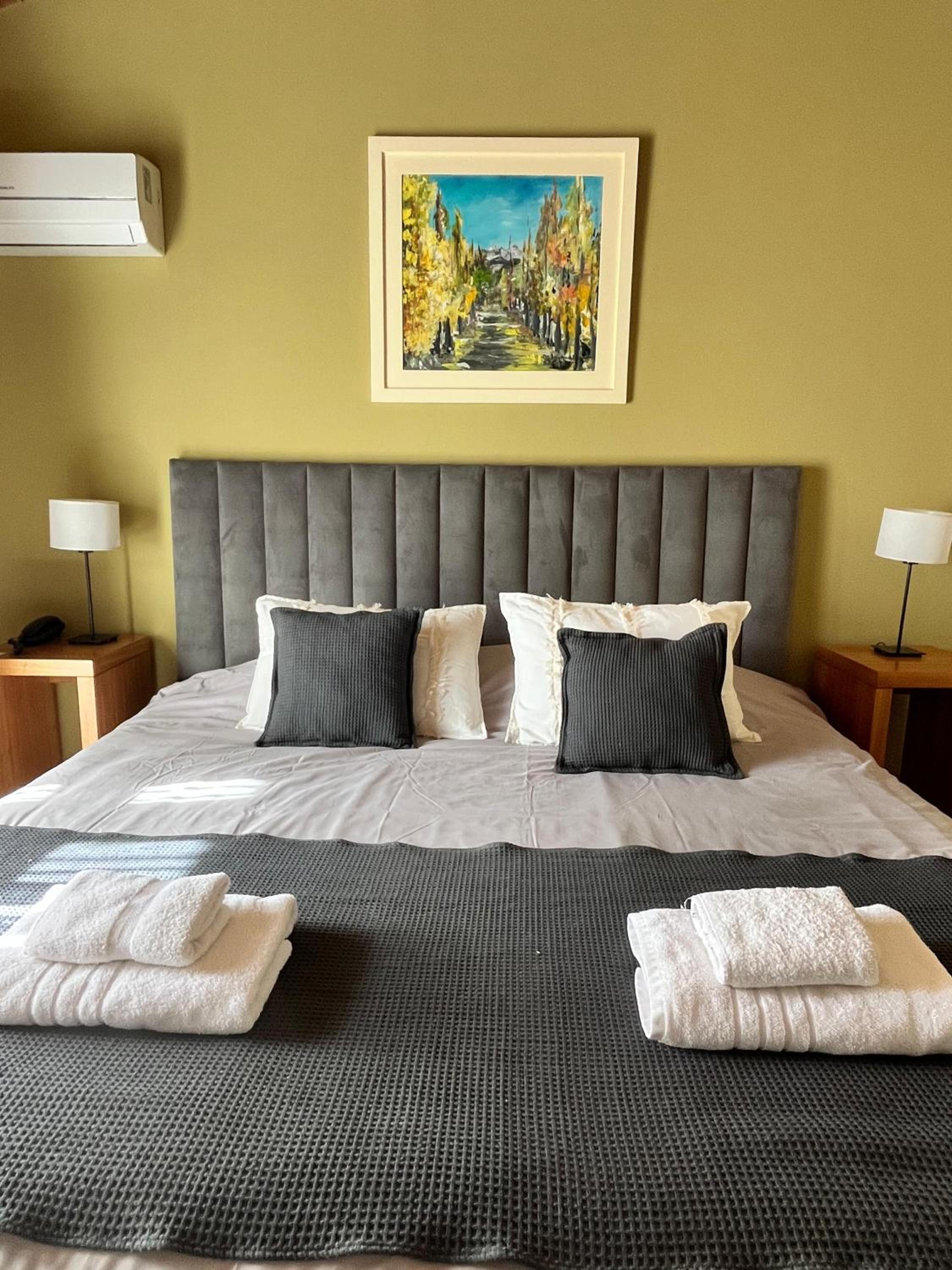 Dejlig stor seng. Godt værelse med køleskab, aircondition og radiator til vinterbrug. (Jeg var der om sommeren.)