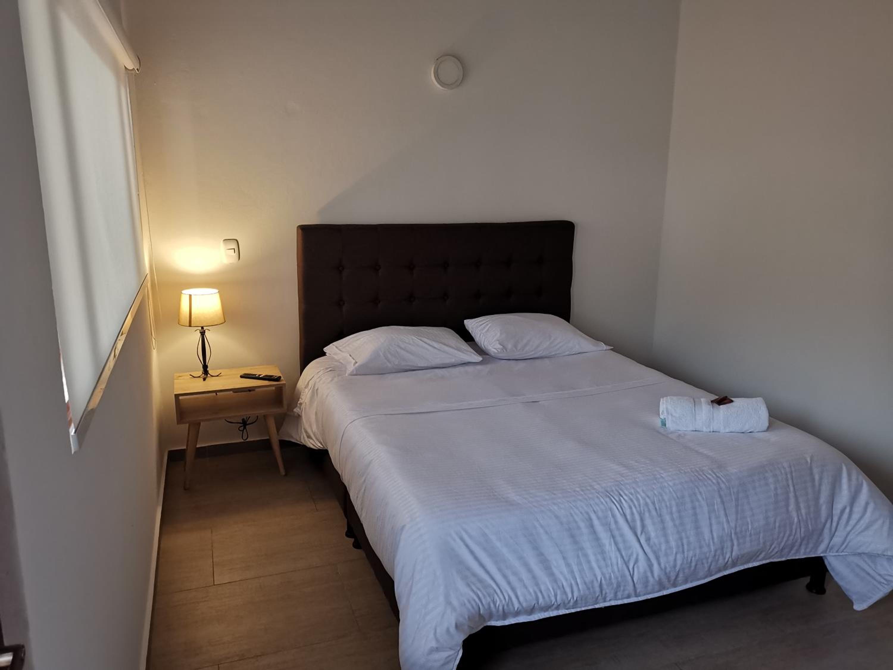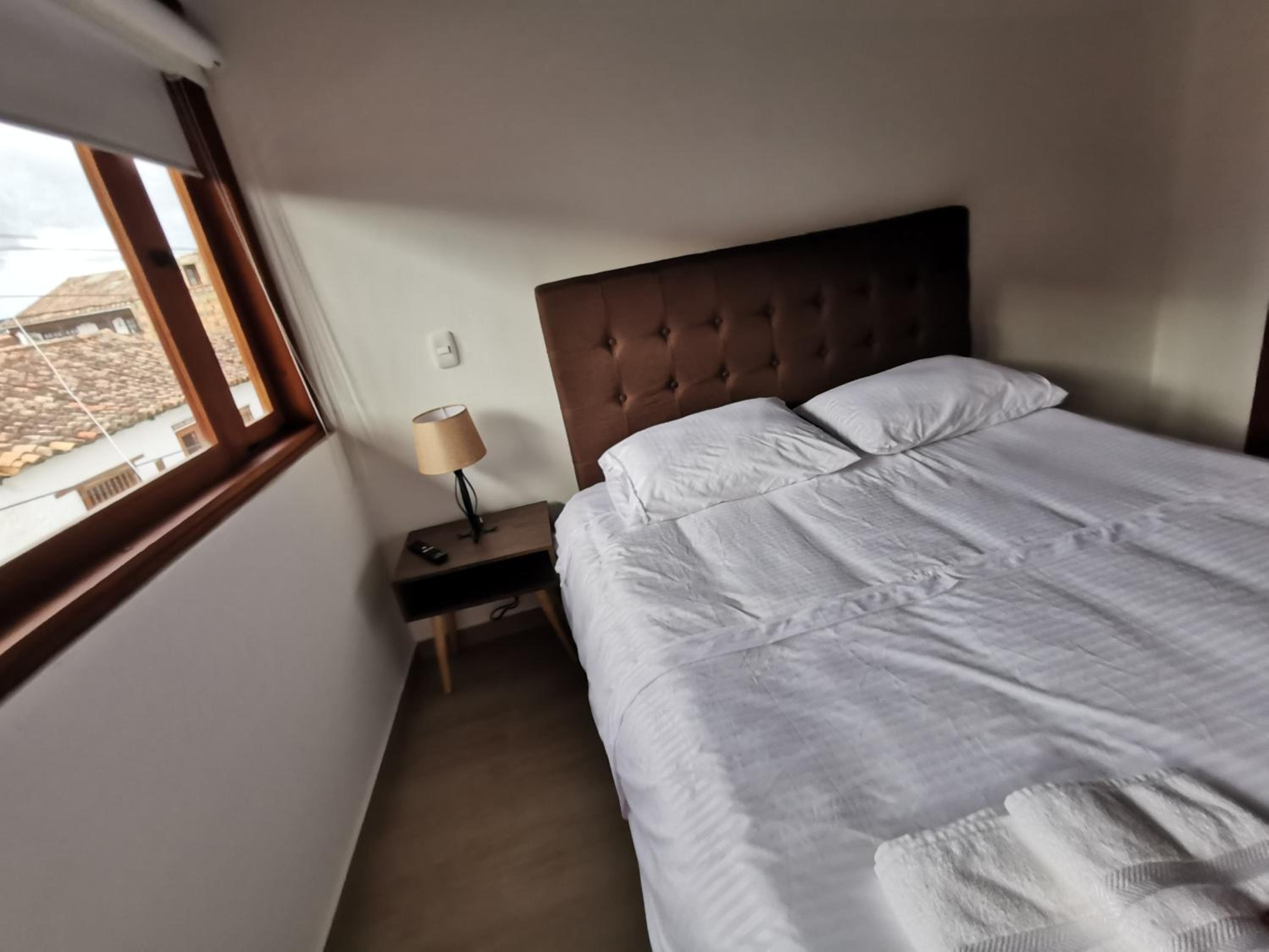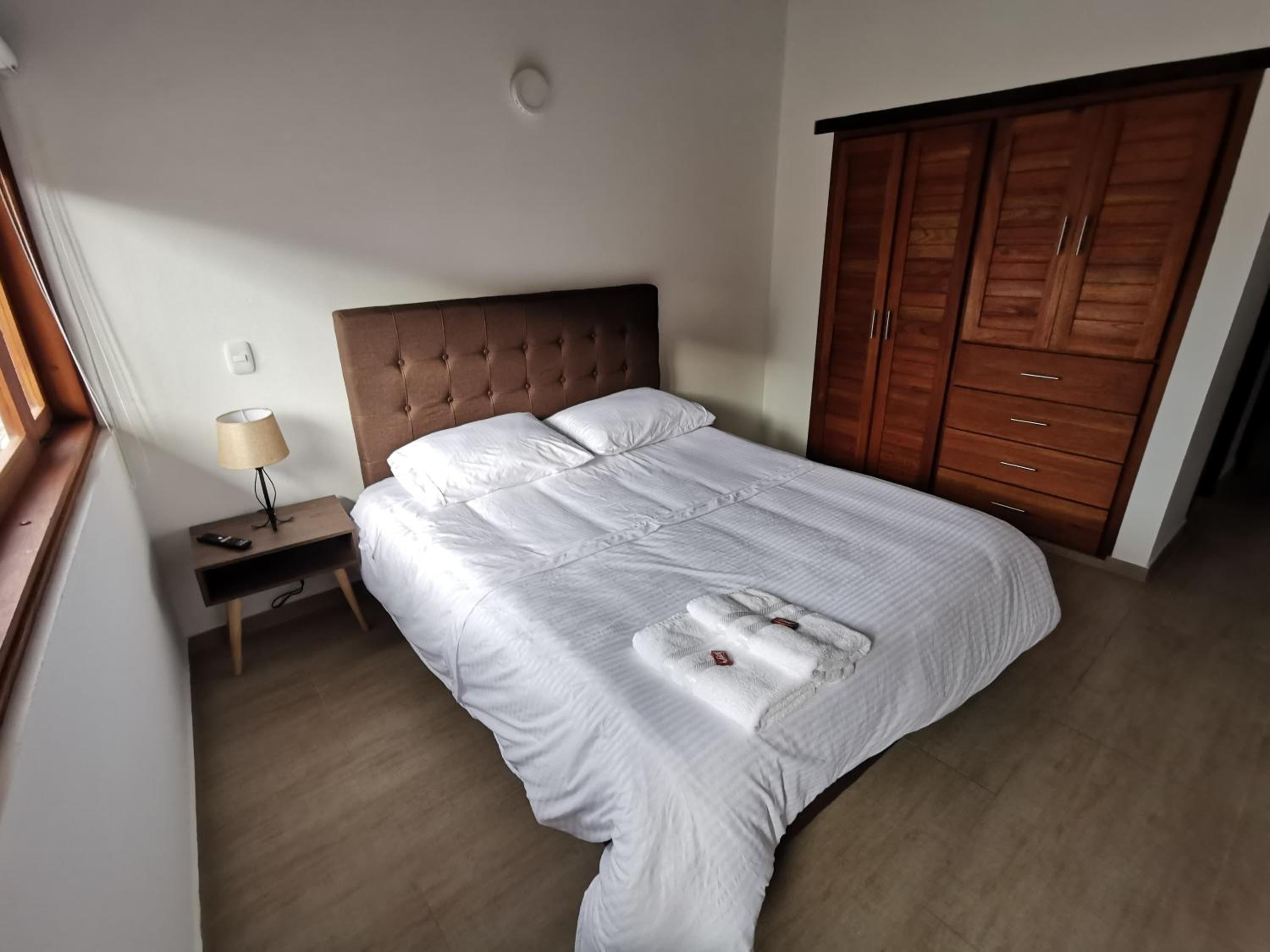 Queda a una cuadra de la plaza central y en diagonal hay posibilidad de parqueadero $35.000 por 24 horas. Así que eso soluciona. El personal muy atento. Lo recomiendo 100%.
