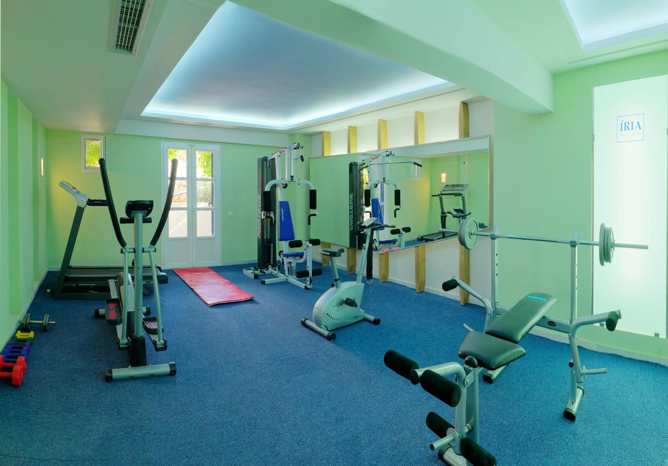 Good location at Agias Anna but this is not beachfront. There are restaurants in front of the hotel. We had a good view from our premium suite across the rooftops but paid £370 per night for it. Small gym which was adequate as I was the only person using it. It’s a low key hotel charging high end prices