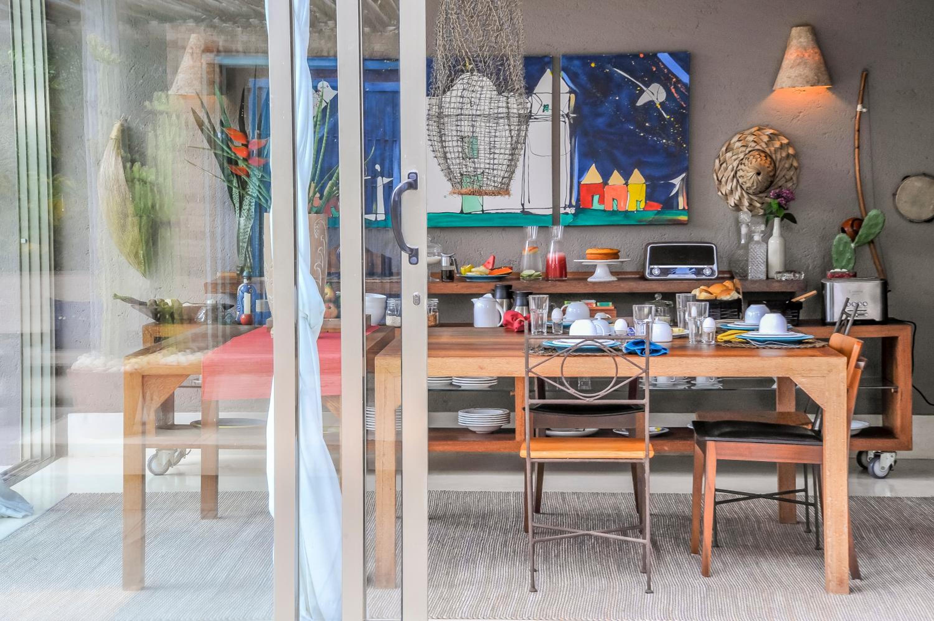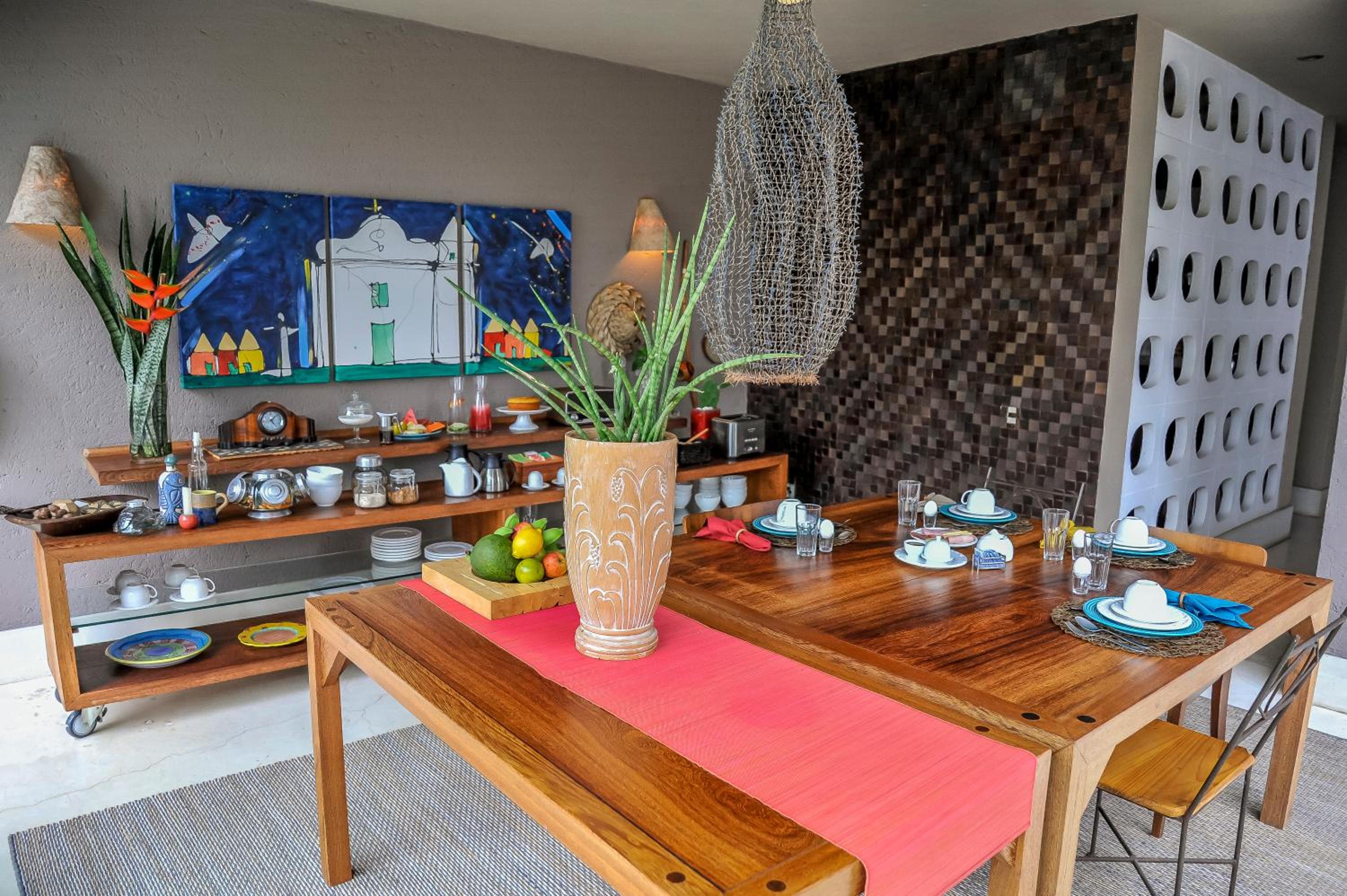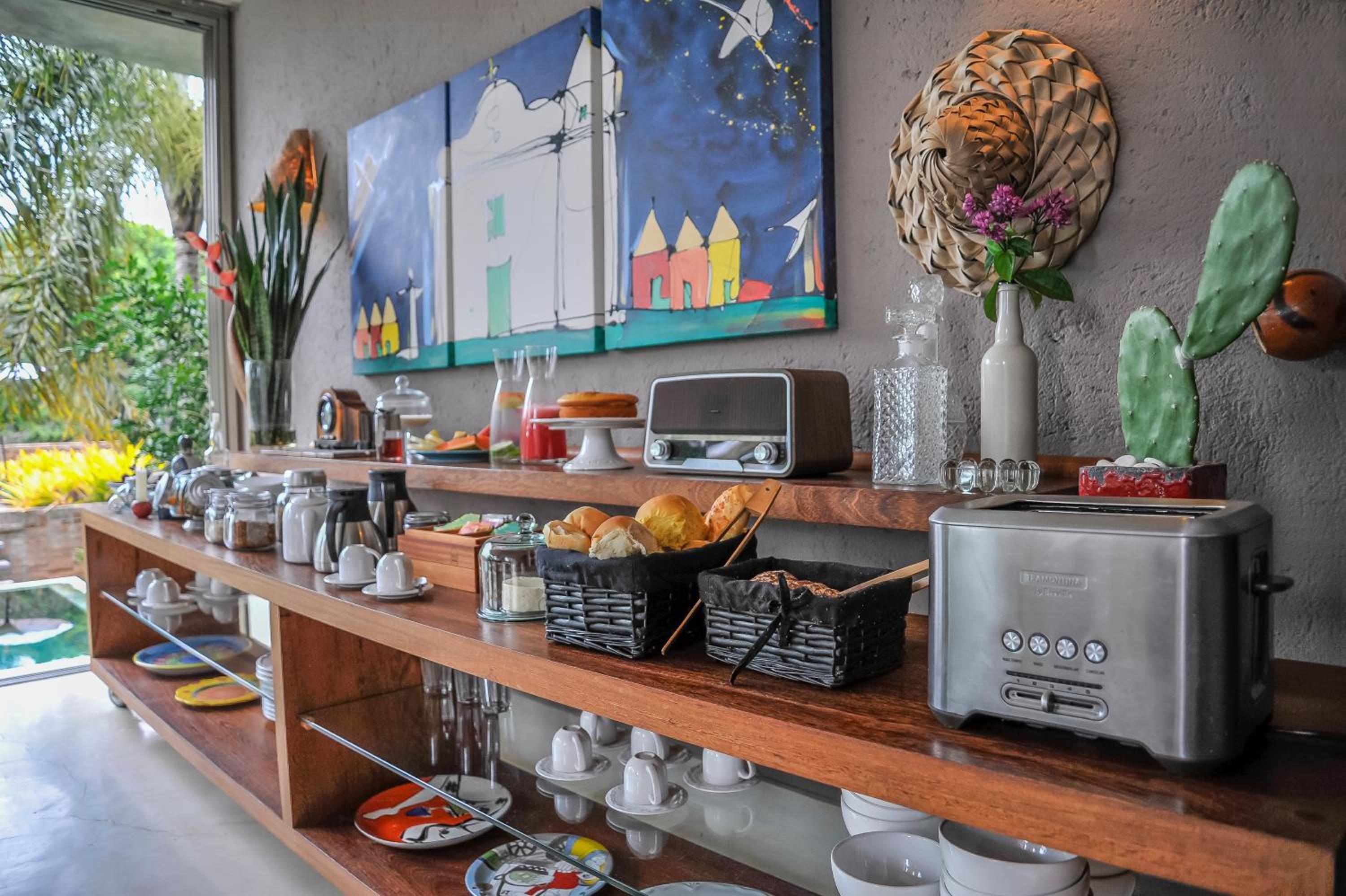 Comparando com outras hospedagens recentes, inclusive em Arraial, o café da manhã não é surpreendente como sugerem muitos comentários, está na média de outros lugares. Não oferecem shampoo nem condicionador. O quarto que fiquei tem um cabideiro embaixo de uma bancada, se colocar uma camisa no cabide ela fica arrastando no chão. Embora tenha um varal no box, a janela do banheiro é praticamente uma porta, é bonito de se ver, mas na prática não rola sair e deixar aberto para ventilar, então as roupas não secam.