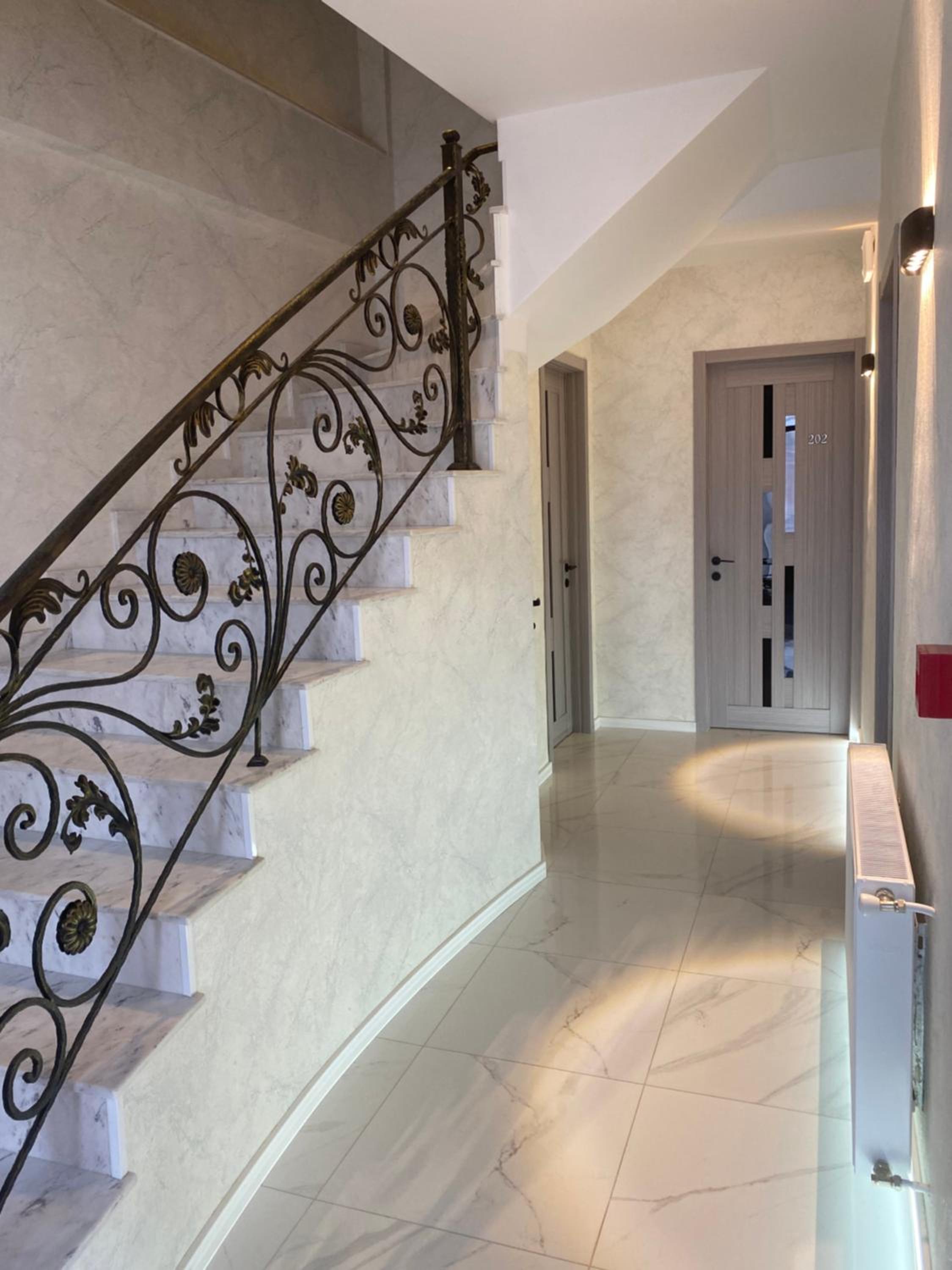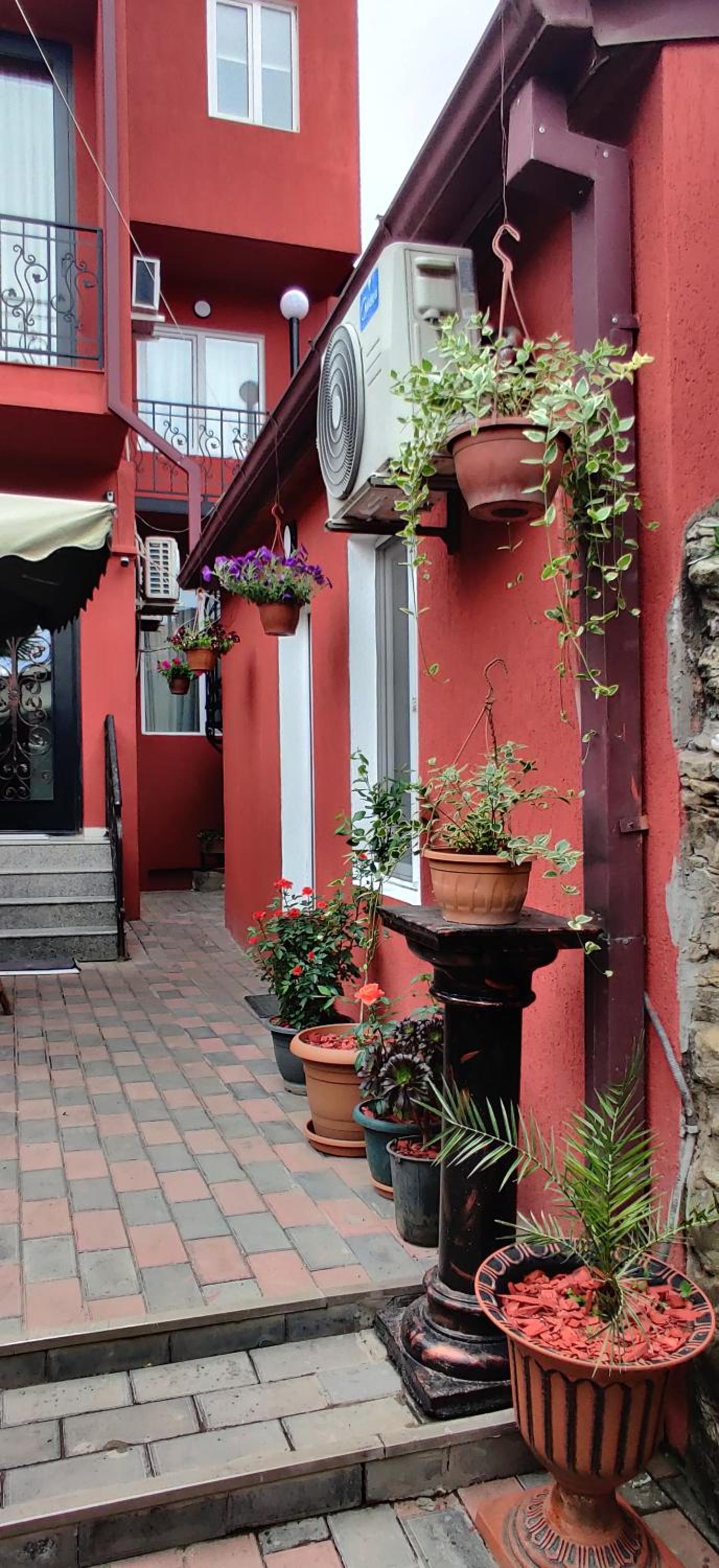 … on the contrary, it is actually a private home with several guest rooms. The guest rooms are accessed via a relatively narrow spiral staircase (as far as I was concerned, having only a backpack as luggage, this was not a problem; it is, however, a problem in the case of a lot of luggage or for elderly people). With only the references on Google Maps, even though I was in front of the house, it took me over 40 minutes to find the place, as I was looking for a hotel with a sign (see photos: the entrance is at the black gate: I have added pictures as it appears when you approach it from either one side). Let's be clear: I have no issue with renting rooms in private homes (I often rent an entire apartment myself). In this case, however, it is worth mentioning: both because sometimes the guest is looking for a hotel (and the related services: as in my case) and because... in this case, the price should be commensurate... with that of a B&B (for the same price, considering that it was peak season for hotels, I could have easily booked a WHOLE APARTMENT in central Tbilisi, not a room!).