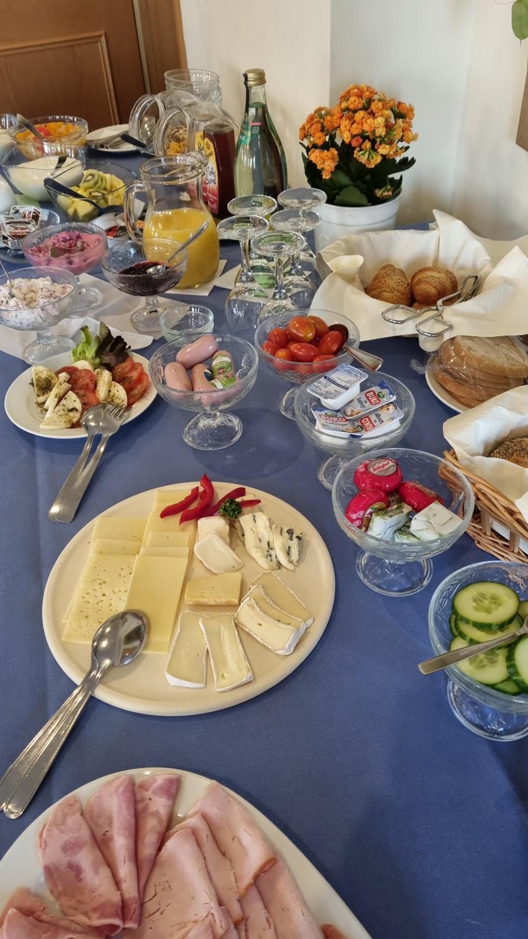 Am ersten Tag war extra nur für uns beide ein wunderschönes leckeres Frühstück‘s Büffet hergerichtet.