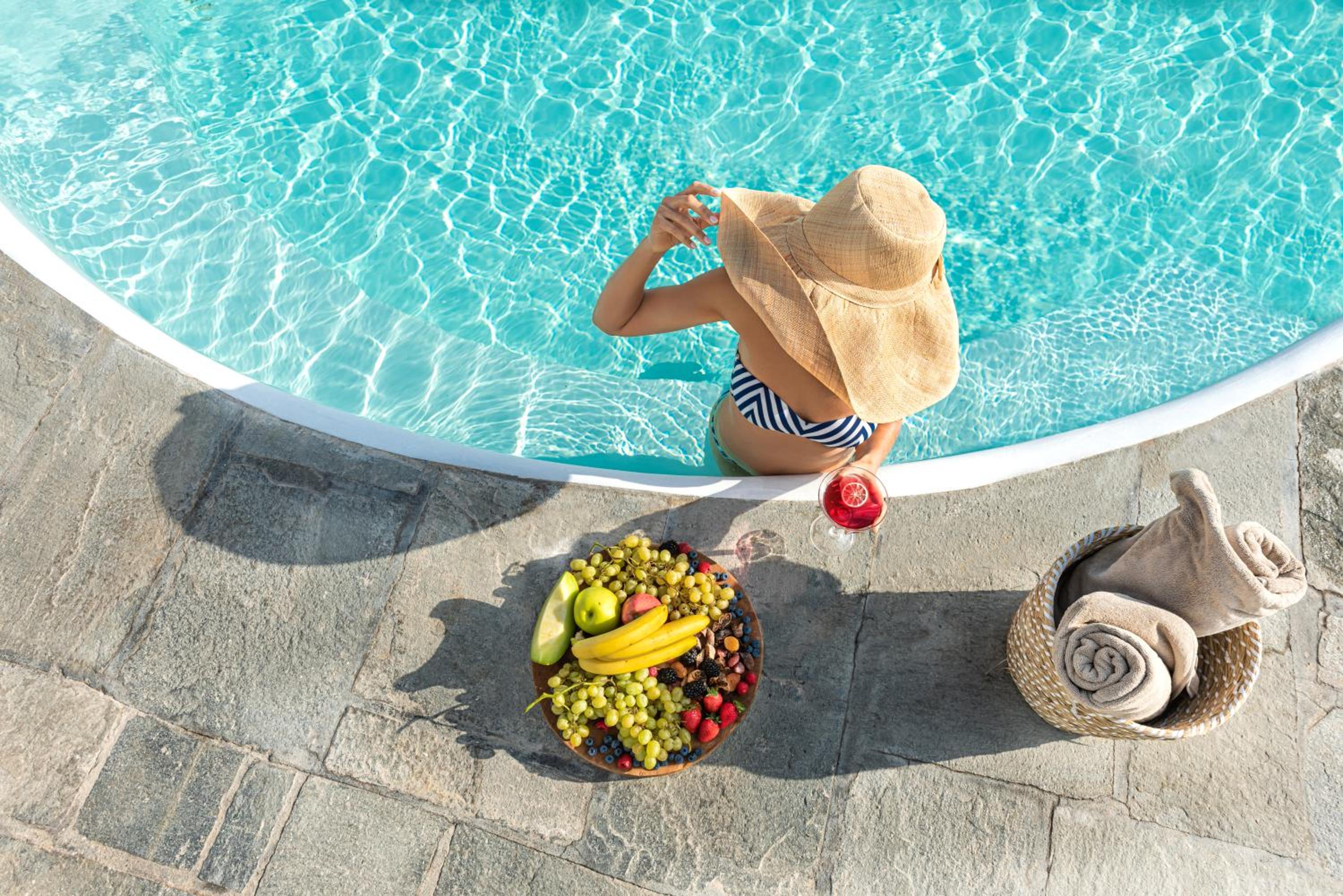 Indulge in air-conditioned suites with private balconies, state-of-the-art facilities, and Korres toiletries. Enjoy the outdoor and indoor pools, spa, fitness center, sauna, and more.