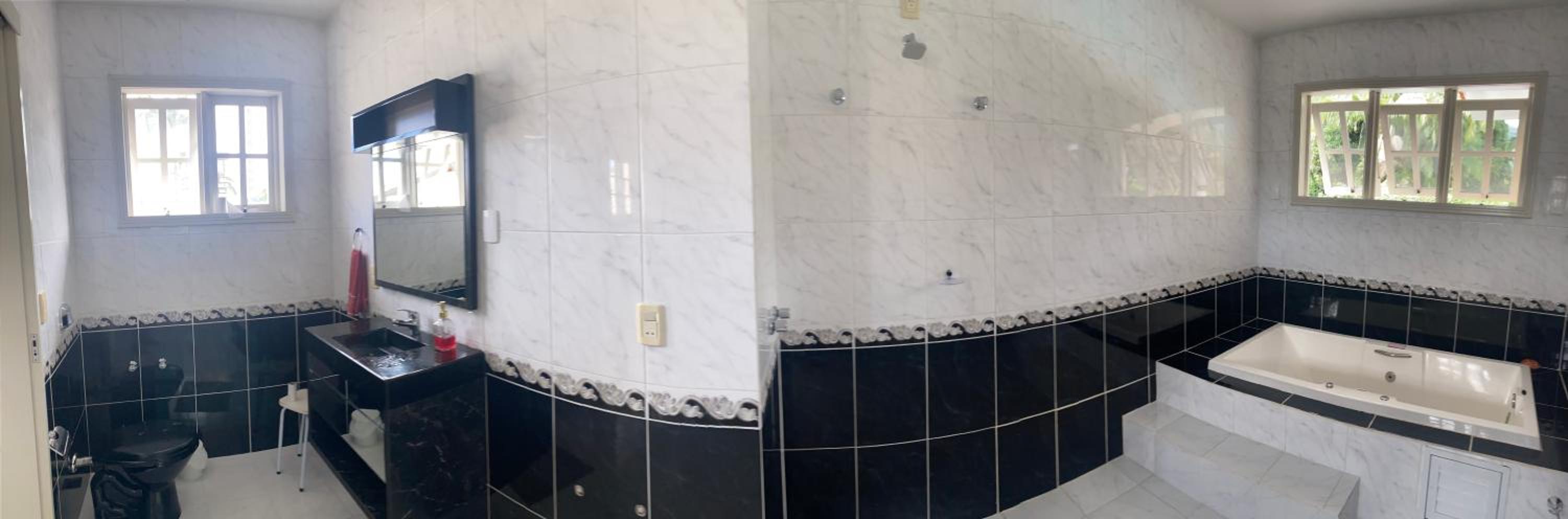 Do chuveiro do banheiro do térreo. Demora a esquentar, qdo esquenta, queima a pele. Qdo ligamos a água fria para misturar com a quente, simplesmente fica gelada. Não há meio termo. A água não fica morna. Ou é queimando a pele ou é gelada.