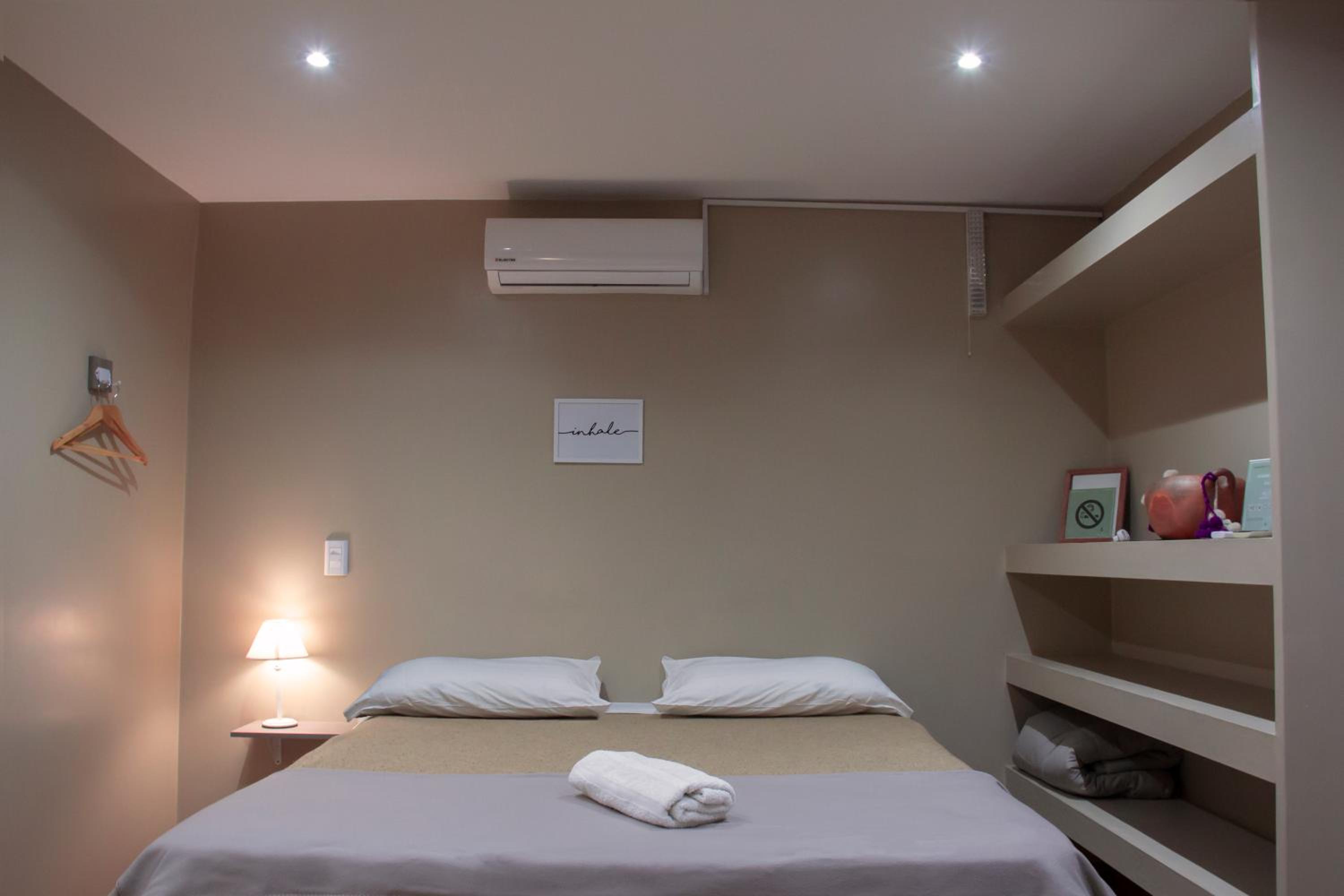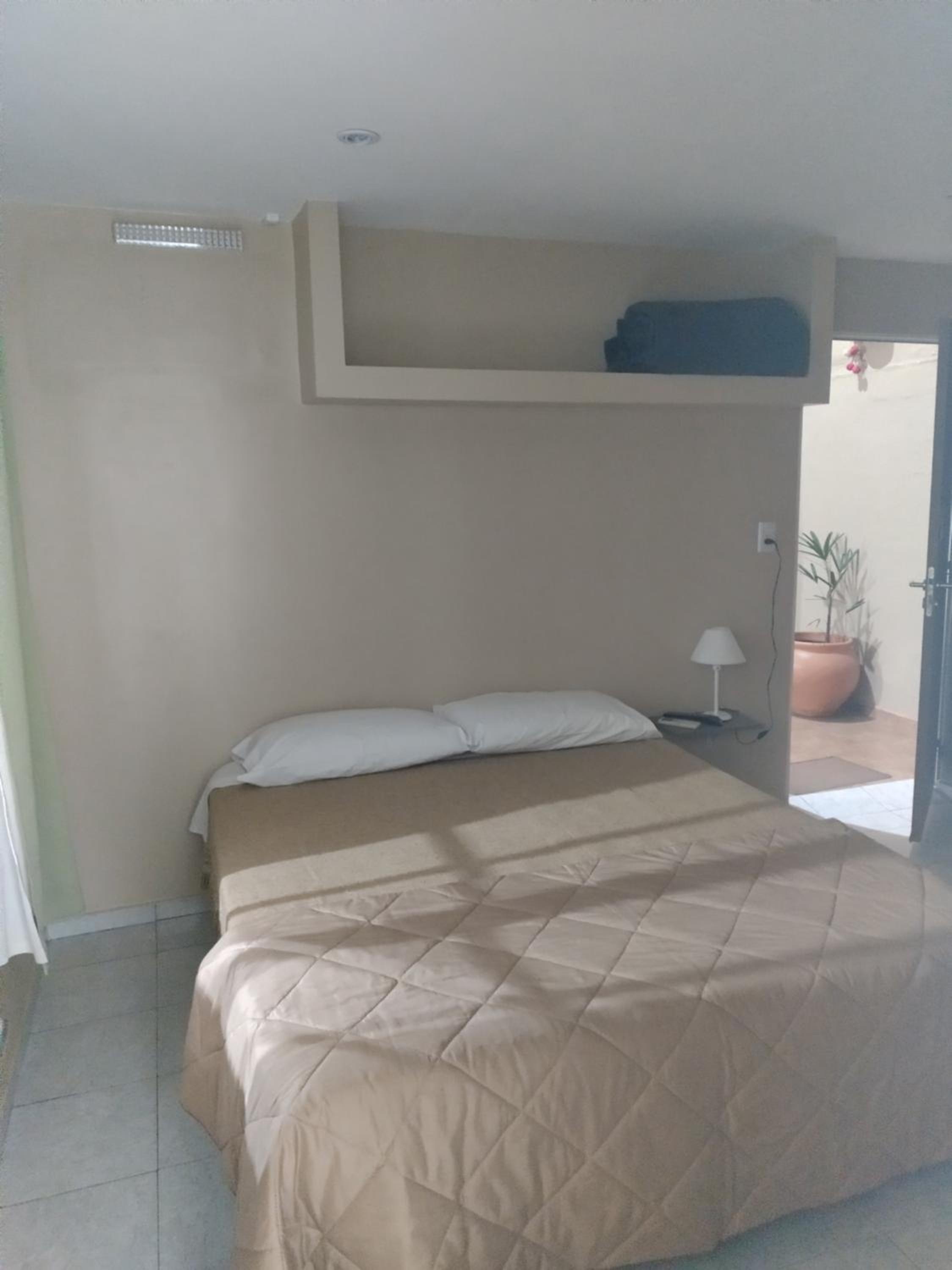 Poderia ter mais alguns móveis no quarto, criados mudos, prateleiras. Poderia ter 2 travesseiros adicionais. Acho que não tinha comércio perto, mas o proprietário trouxe o jantar.
