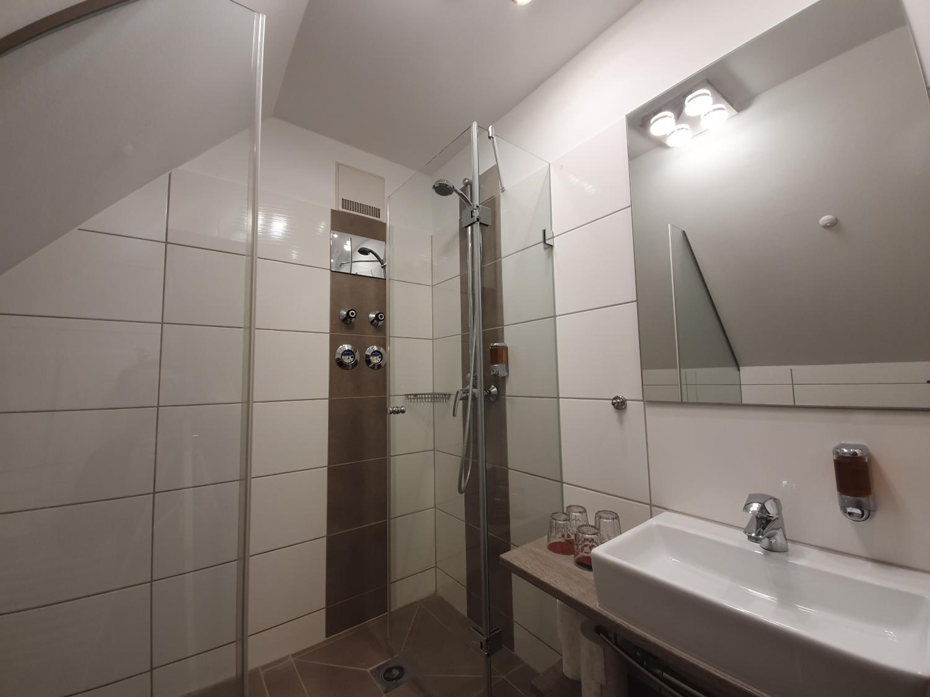 Die Ausstattung des Zimmers war veraltet, und das Badezimmer sehr klein.
