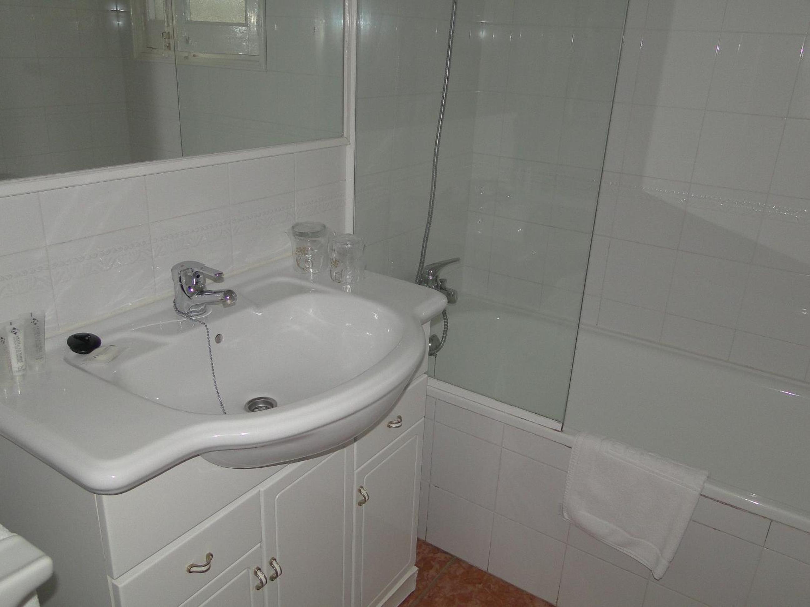 Cama cómoda pero muebles antiguos y el del baño roto.