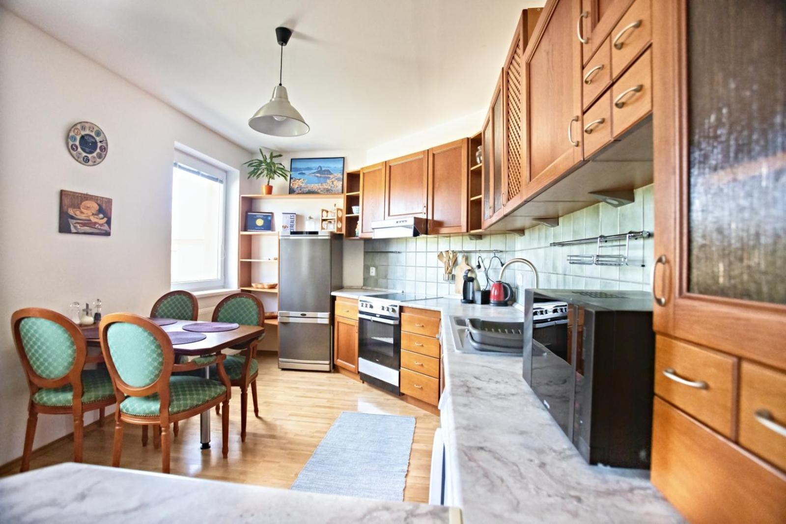 The apartment is fully equipped and clean. Location is good, only 10 mins of walk from the Tatra train. Very good price to value ratio!
