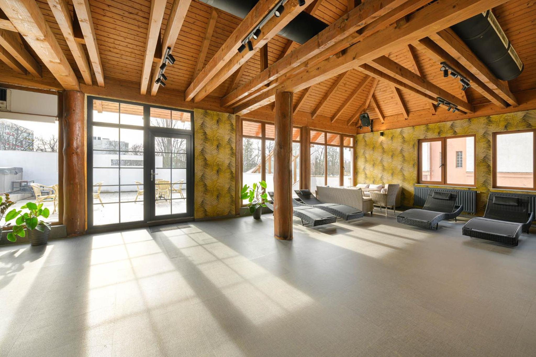 Indulge in our wellness area boasting two swimming pools, a Finnish sauna, a tranquil relaxation zone, and a sun terrace. Treat yourself to a variety of rejuvenating massages at our massage area, ensuring a truly relaxing stay.