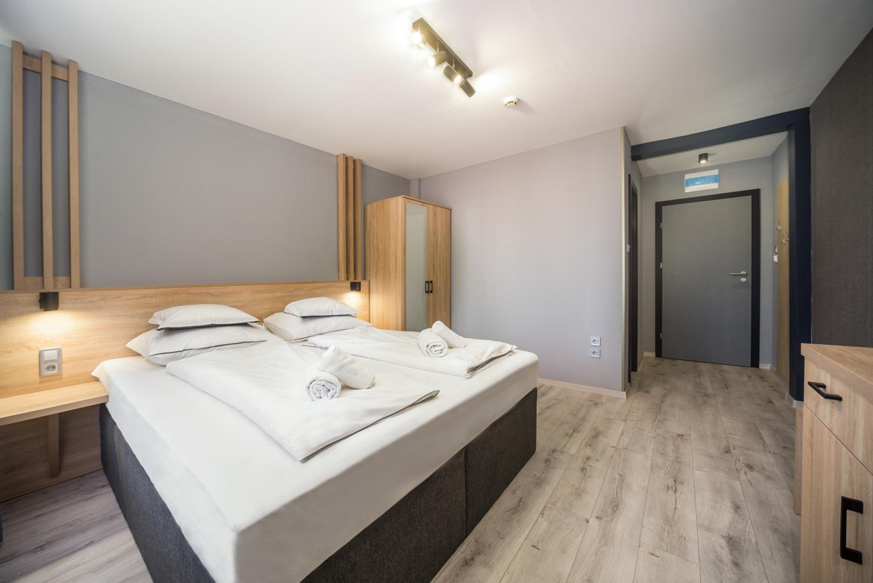 With 17 double rooms, 7 double apartments, and 4 quadruple apartments, each featuring individually controlled air conditioning, LCD TV, and modern bathrooms, your comfort is our priority. Some units even offer a convenient kitchenette for added convenience.