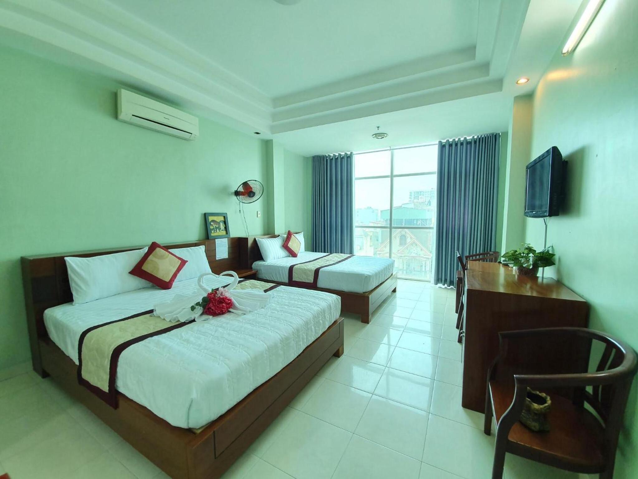 Experience comfort in our air-conditioned rooms equipped with free WiFi, private bathrooms, flat-screen TVs, and city views in select rooms. Our 24-hour front desk staff are fluent in English and Vietnamese, ensuring a seamless stay for all guests.
