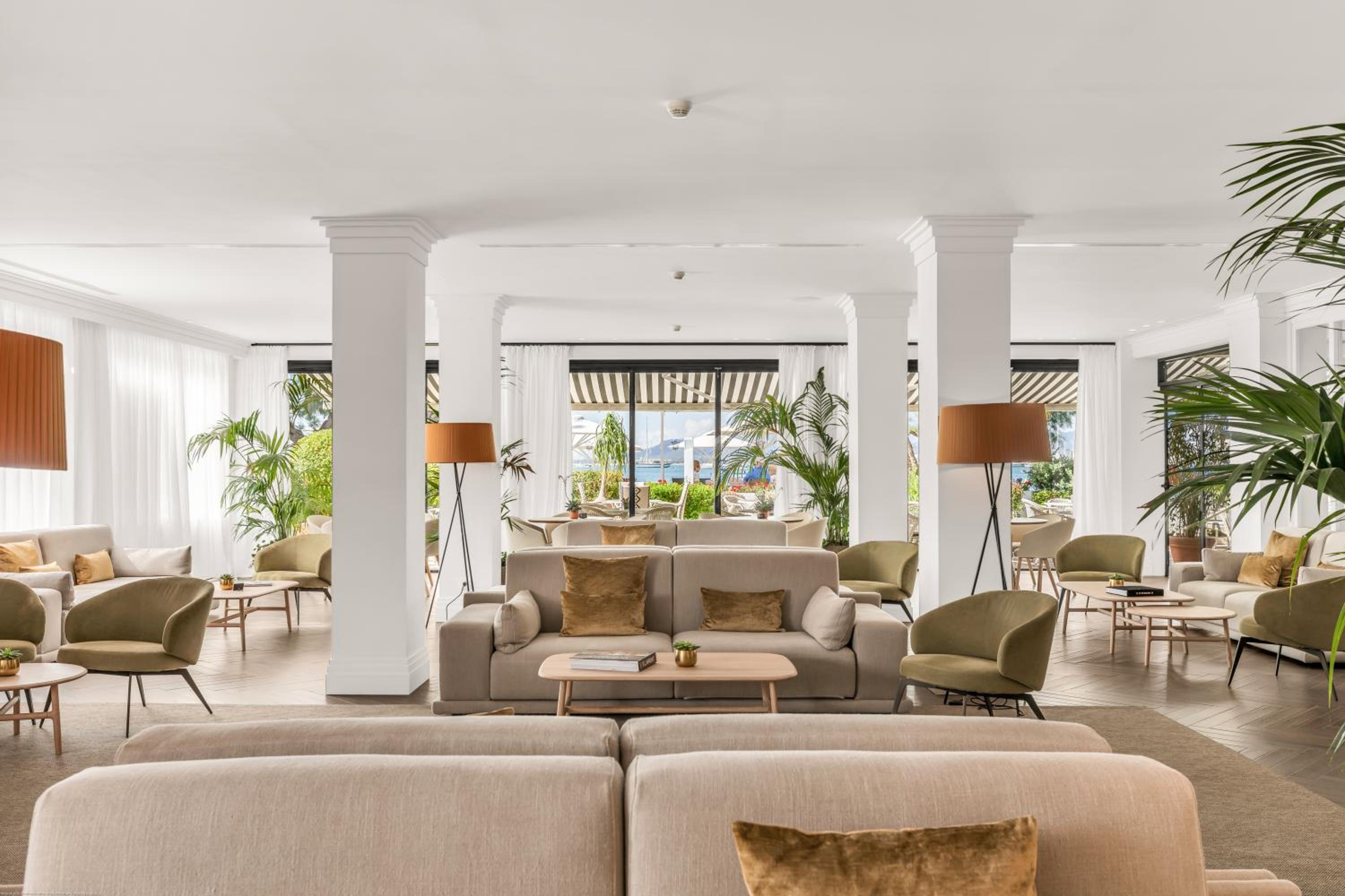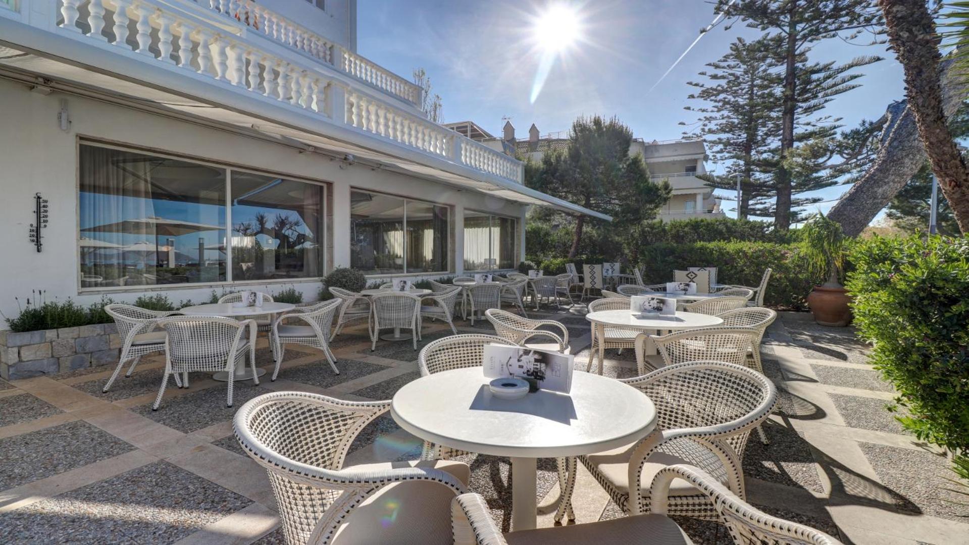Wonderful location next to the sea with large seating areas under parasols. The hotel is immaculate and stylish. Staff are without exception friendly and helpful. Restaurant food is delicious and beautifully presented. Our room was very comfortable with a beautiful view from the balcony. Secure bile room is an added bonus.