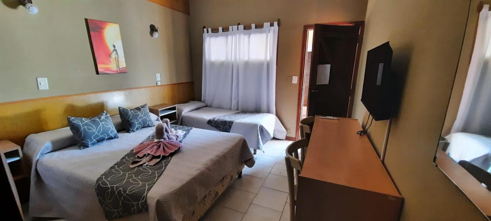 La habitación que nos tocó no era muy cómoda, poco espacio, el baño era chico y su puerta no cerraba bien, la ducha se inundaba.