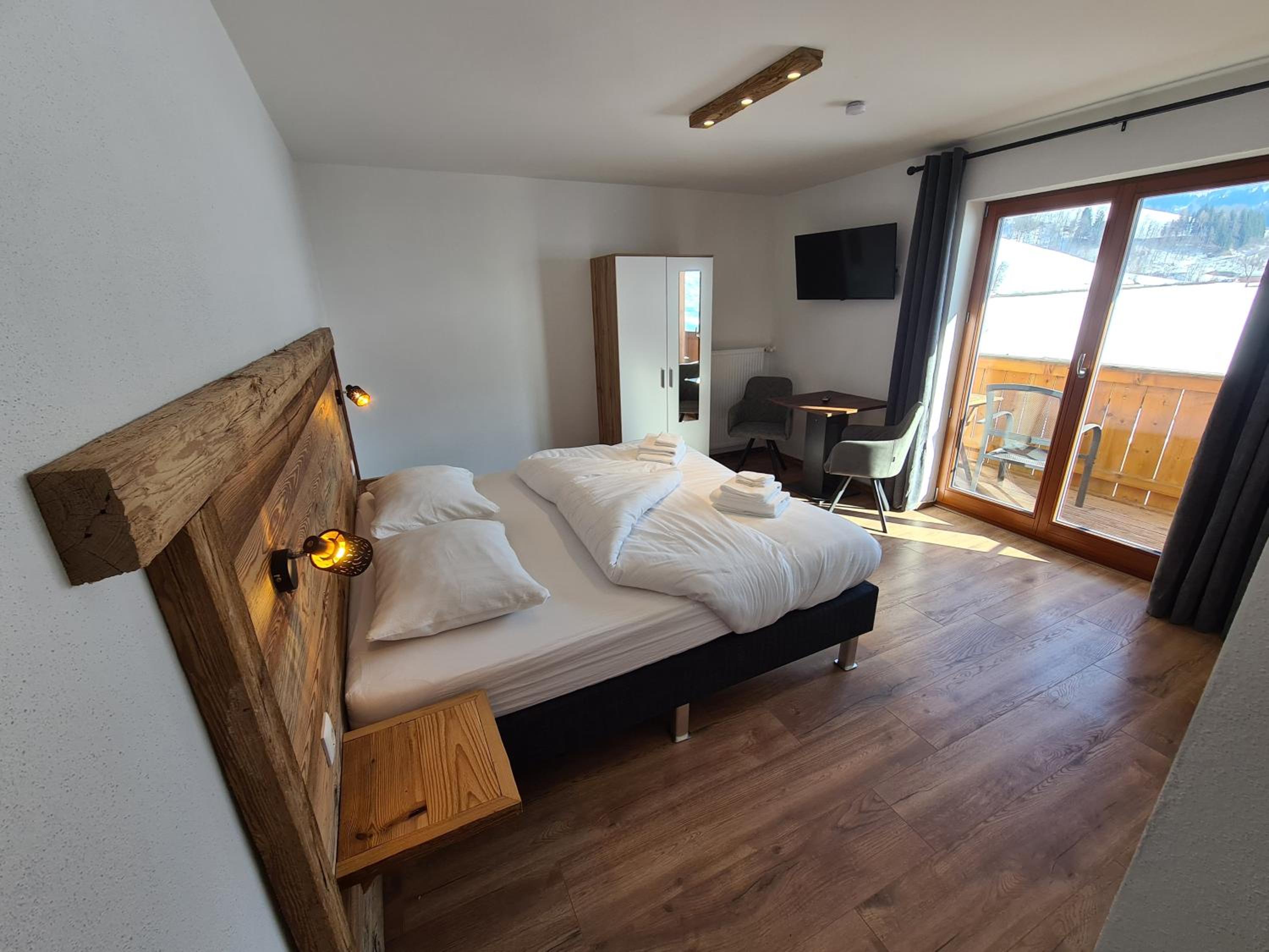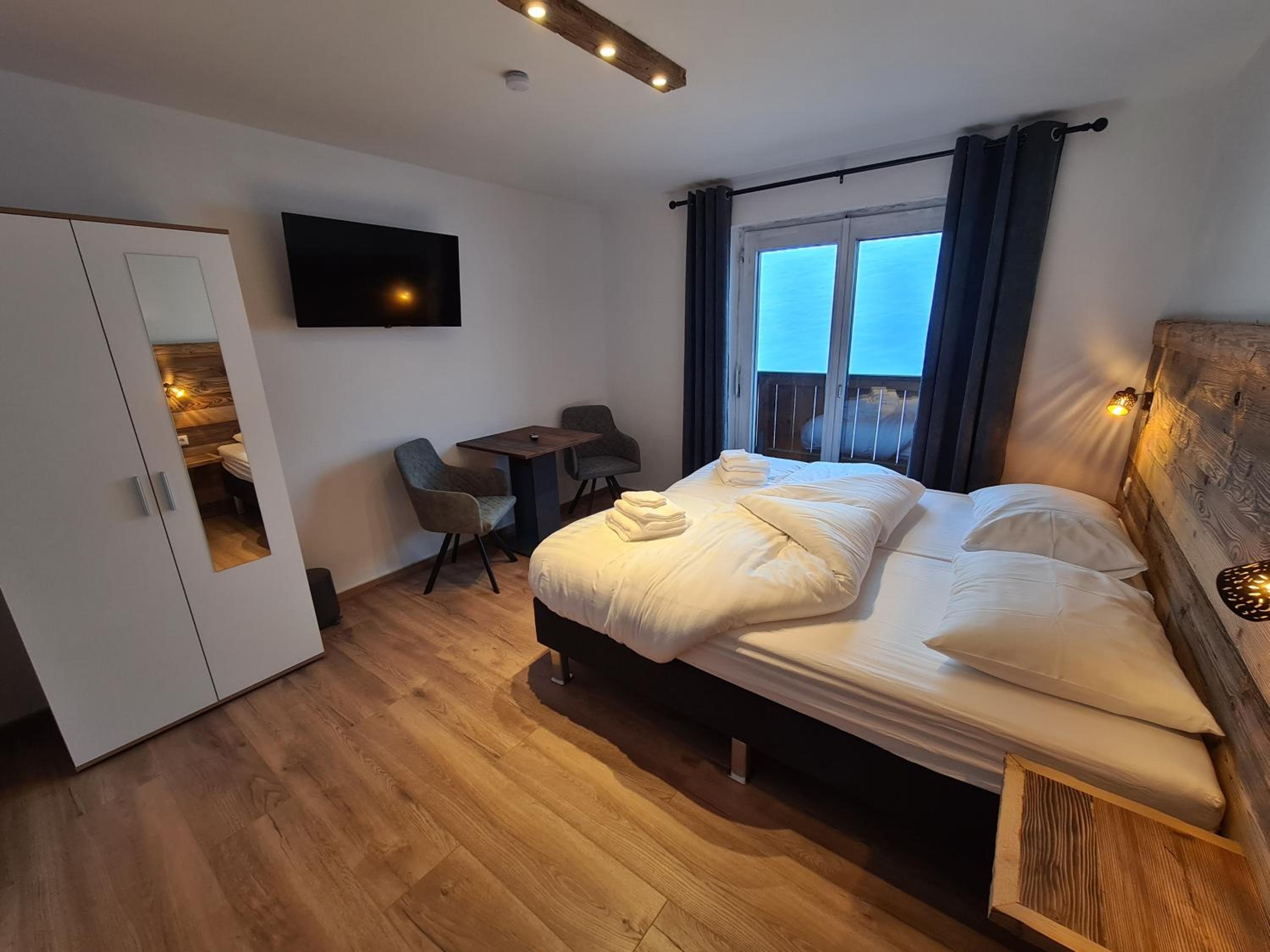 Erg leuk hotel aan de rand van prachtig alpendorpje, gerund zeer vriendelijk jong stel die hun ziel en zaligheid leggen in dit hotelletje. We hadden een lekkere, schone kamer met balkon en zicht op de bergen. We waren er in de week van oud en nieuw. Oudejaarsavond werd gevierd met verse, in eigen keuken gemaakte oliebollen, er was een glaasje bubbels en vuurwerk tijdens de jaarwisseling. Er wordt lekker gekookt in eigen keuken, dagelijks soepje, hoofdgerecht (keuze uit 3 waarvan altijd een vegetarisch), en toetje. Eetruimte is gezellig ingericht met open haard en bar. Toen wij er waren was alles sfeervol in kerstsfeer met mooie kerstbomen en prachtige lichtjesboom in de tuin.