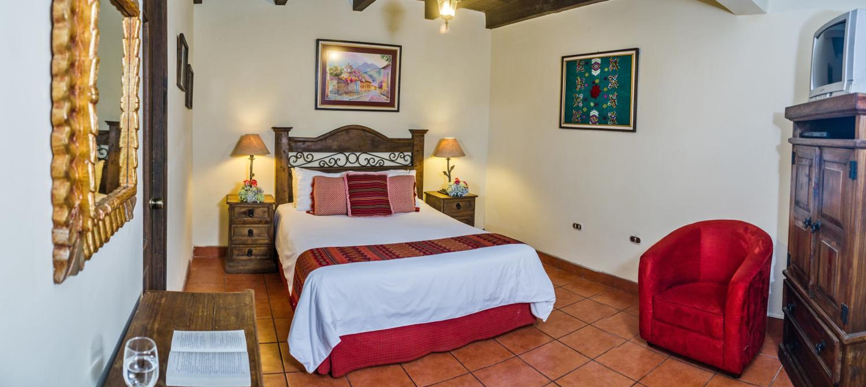 El hotel en si estaba muy bonito, muy acogedor y justo para las necesidades que se puedan tener en Antigua, incluso ofrecen cafe (de buena calidad) y te colaboran con extras que puede no estar mencionadas, incluso hasta con platos o cucharas que pueda necesitarse en caso de llevar comida de afuera.