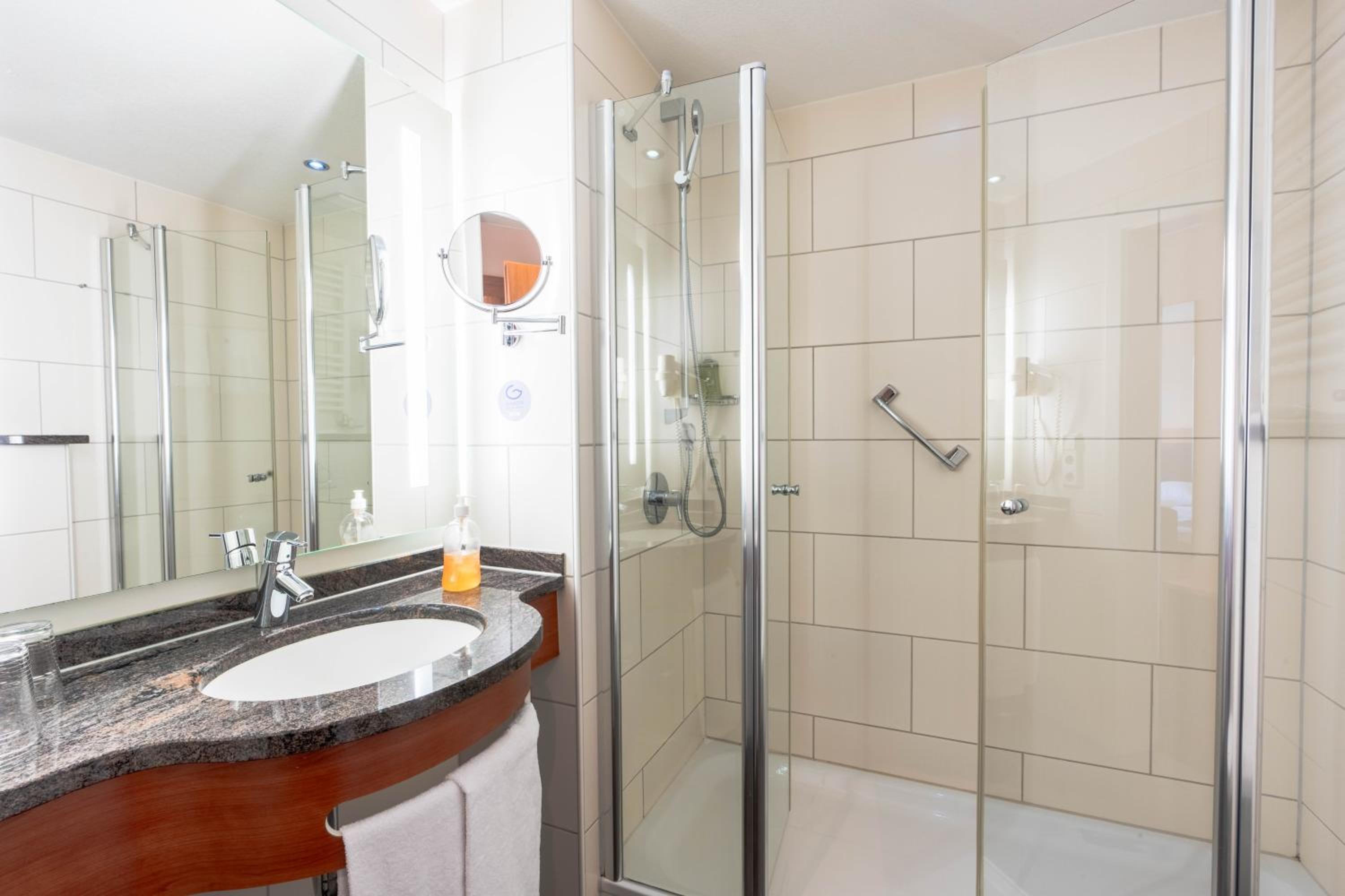 All rooms at Ott‘s Hotel-Restaurant Leopoldshöhe come equipped with a flat-screen TV and a private bathroom with a shower.