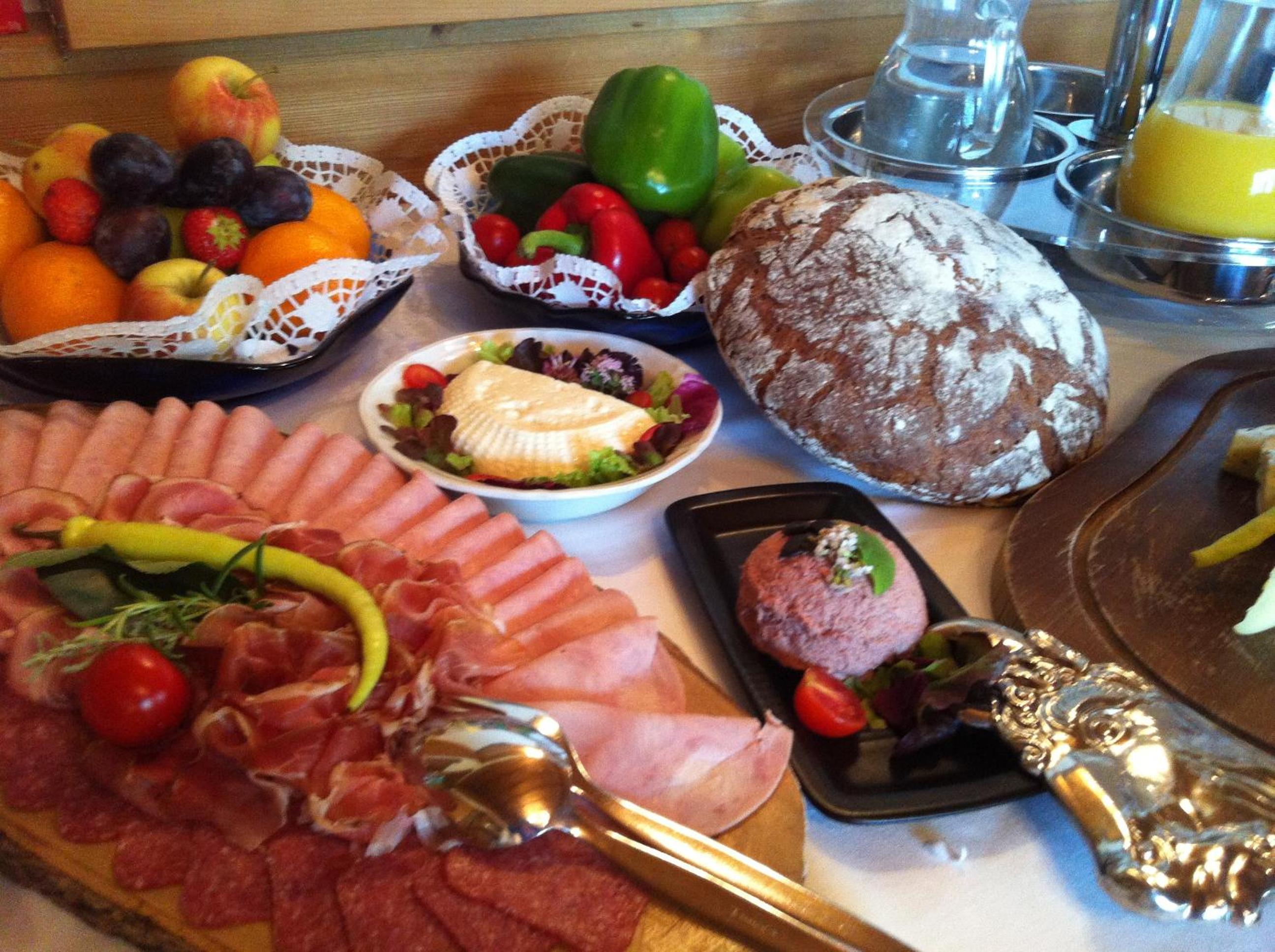 Das Frühstück war ausgezeichnet. Wir genossen die regionalen Produkte und die steirische Eierspeis mit Kernöl. Dies konnte man sich bestellen und war inkludiert.