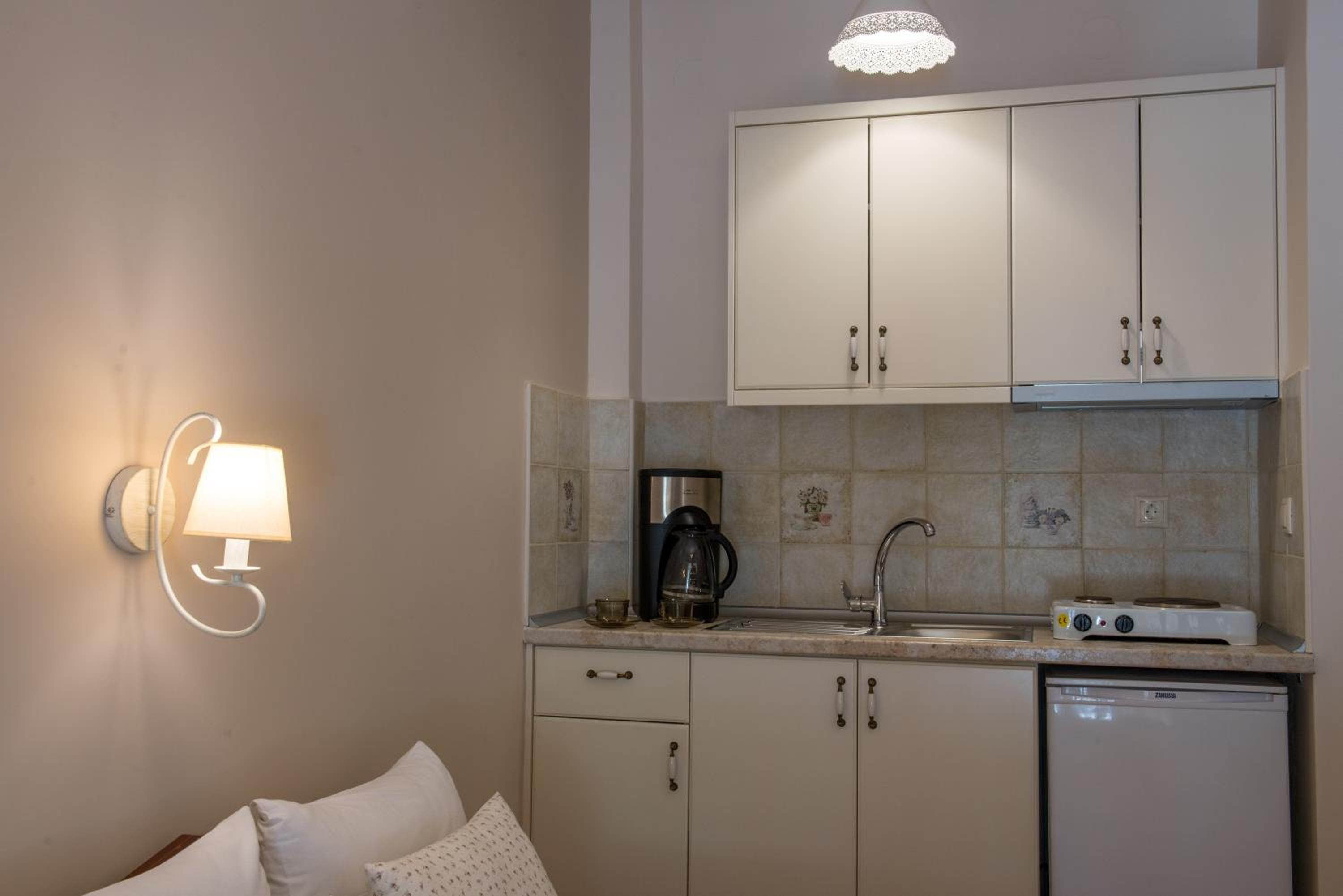 Indulge in the elegant and romantic decor of Megas Alexandros, featuring rooms with flat-screen TVs, kitchenettes, and private balconies with park views.