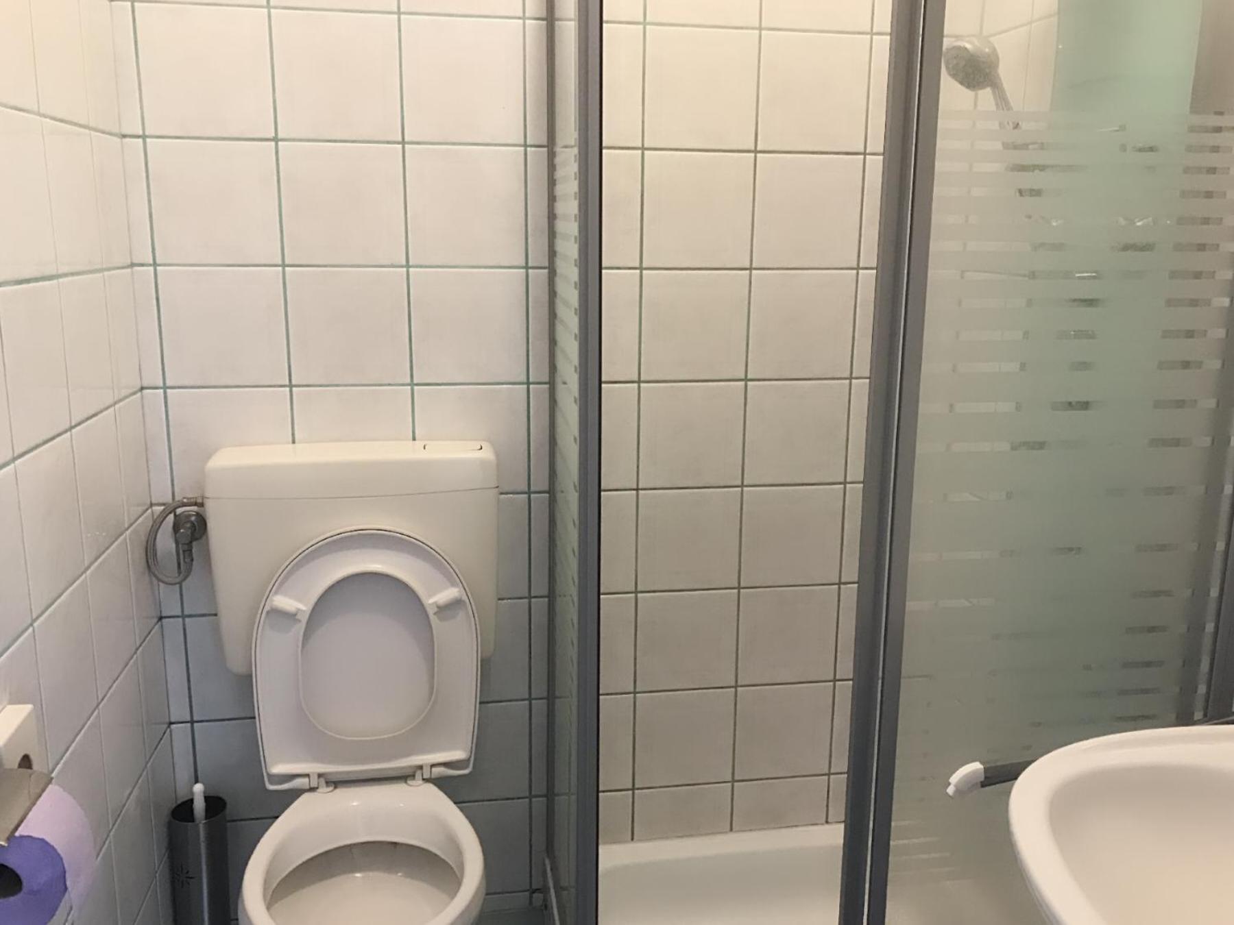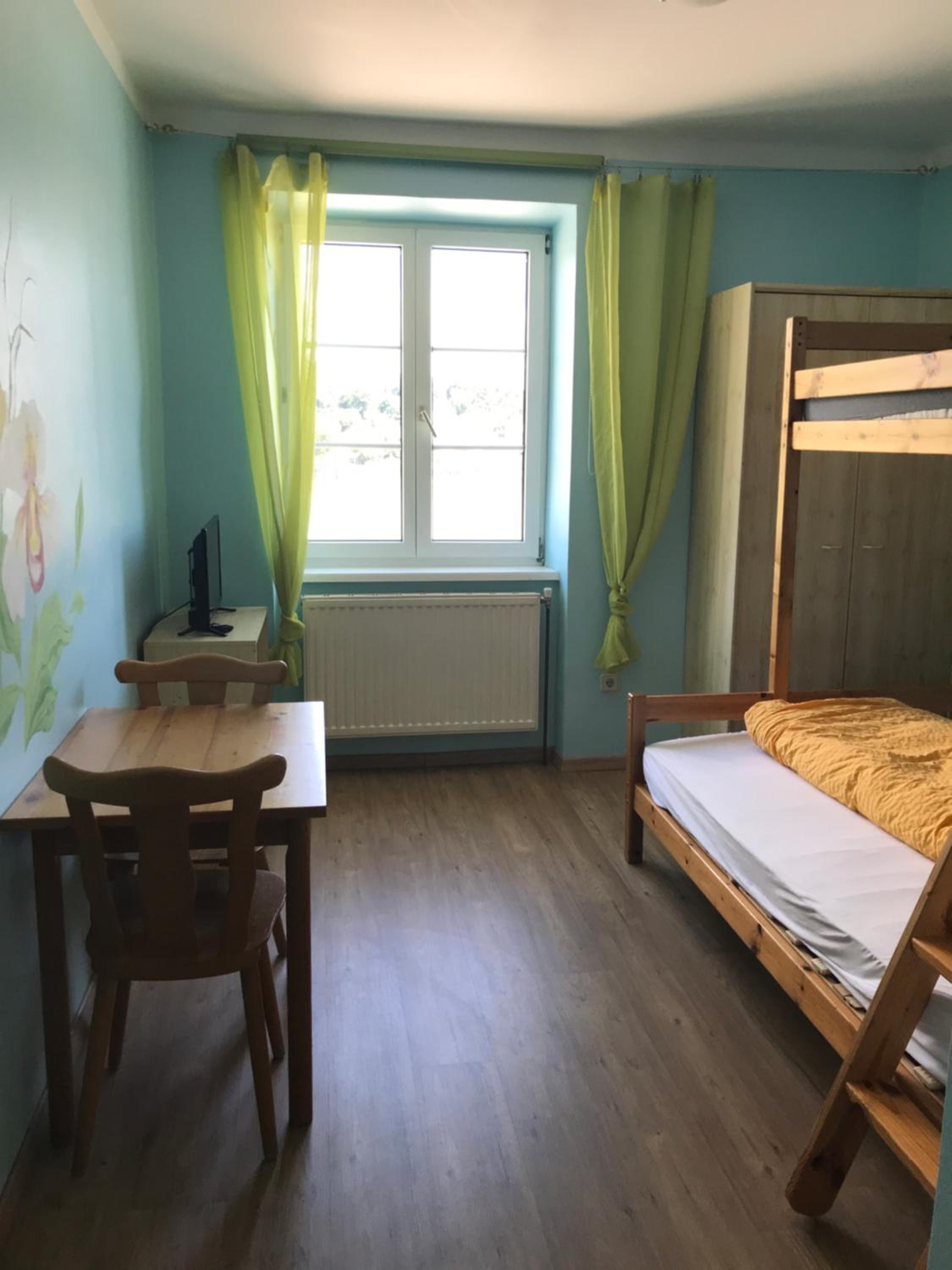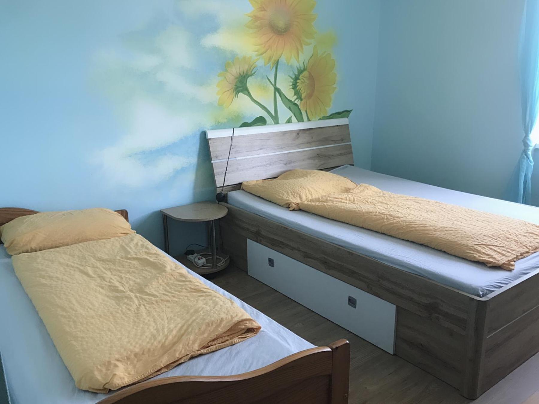 Dobrá lokalita pro další výlety, novější postel a příjemné matrace, na oknech byl zatemňovací závěs, paní byla velmi milá. Na umyvadle balea sprchový gel na mytí rukou a na sprchování, na pokoji varná konvice a android televize - to je super, protože na německé kanály se nepodíváme, takhle si pustíme film na youtube a toho si cením.