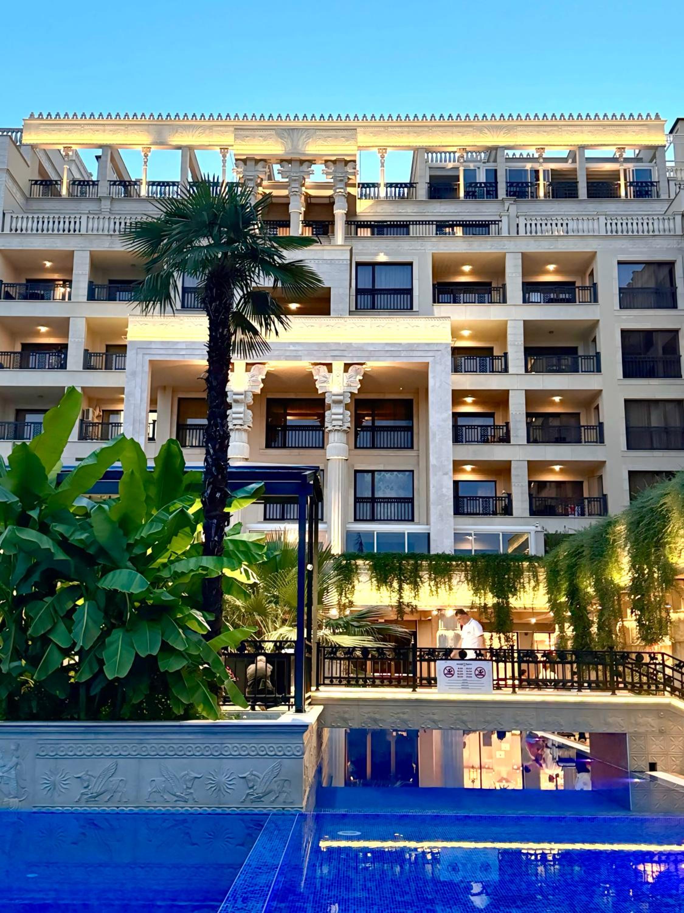 Hotelul merită cele 4 stele, design unic, luxos, mâncare foarte gustoasă, diversificată, fructe și dulciuri gustoase, cafea grozavă. Apartamentul în care am fost cazați ne-a depășit așteptările prin confort, în special terasa imensă de la care admiram cele 6 piscine sau ne relaxam în leagănul cuib din dotare.
