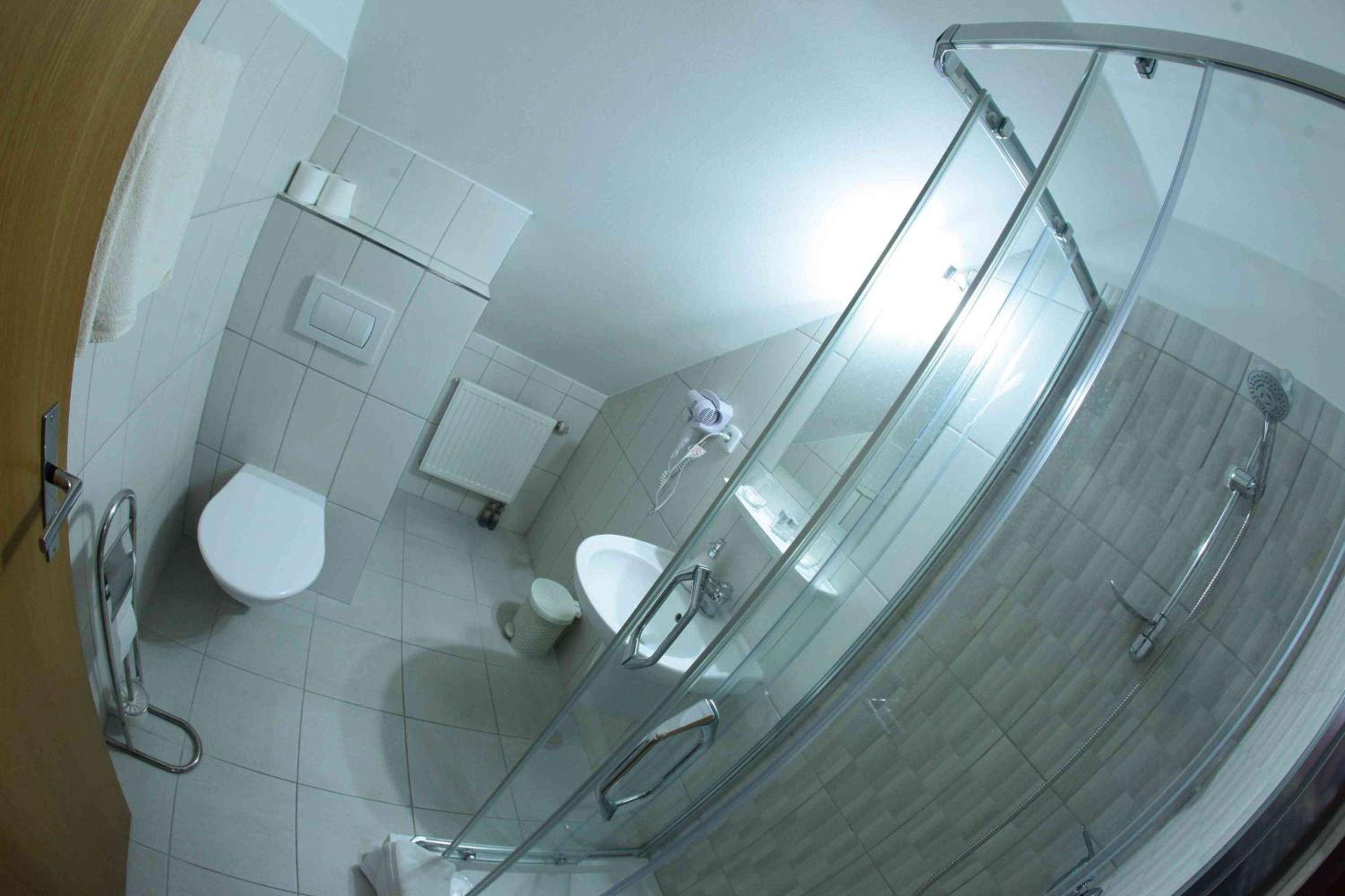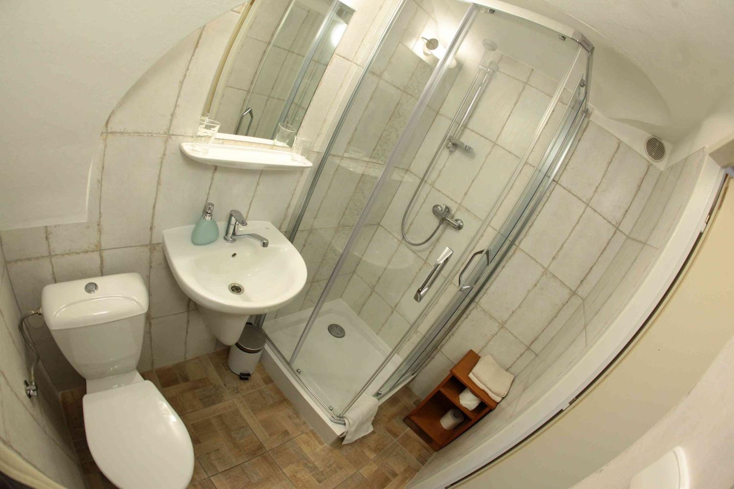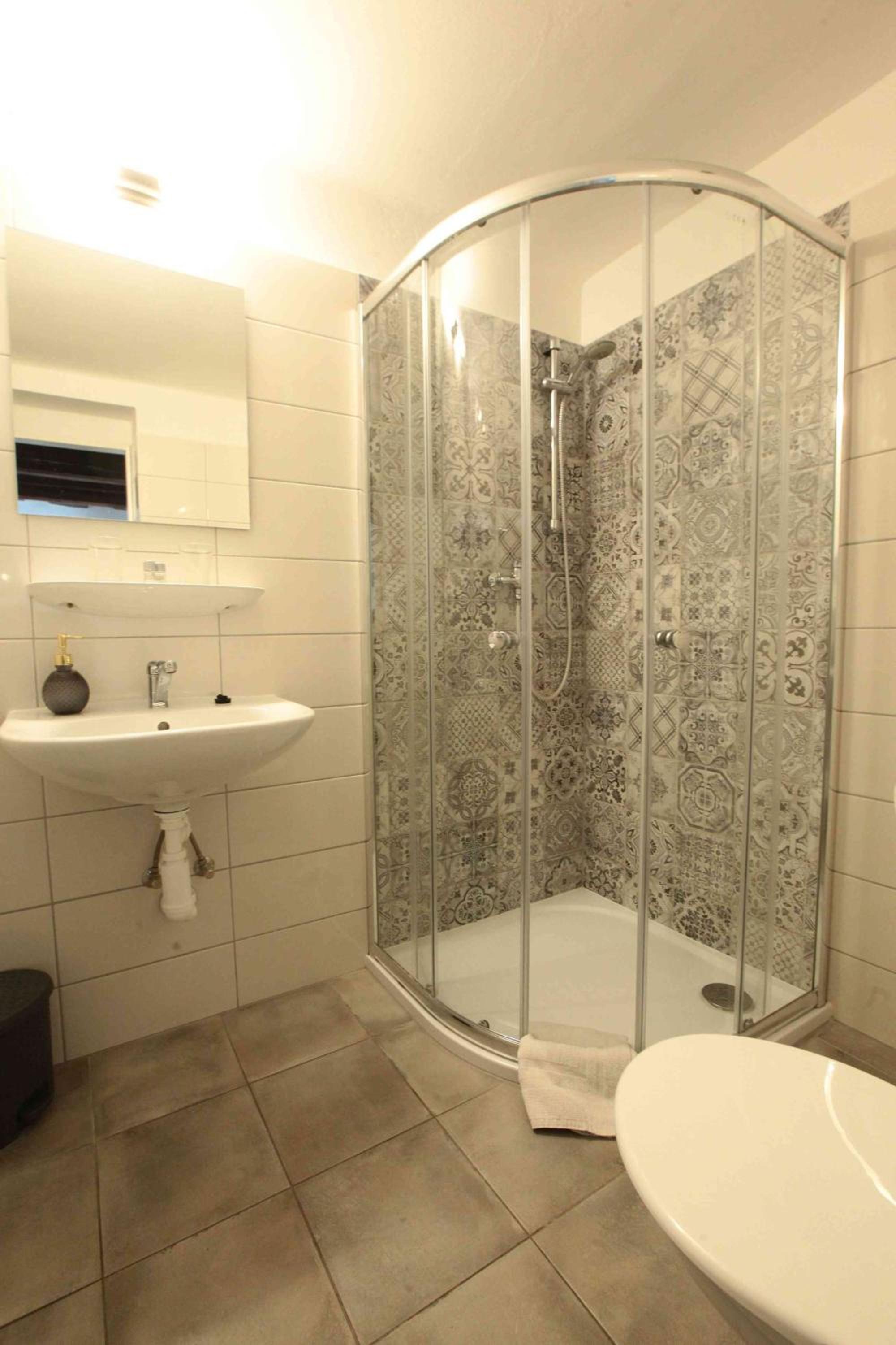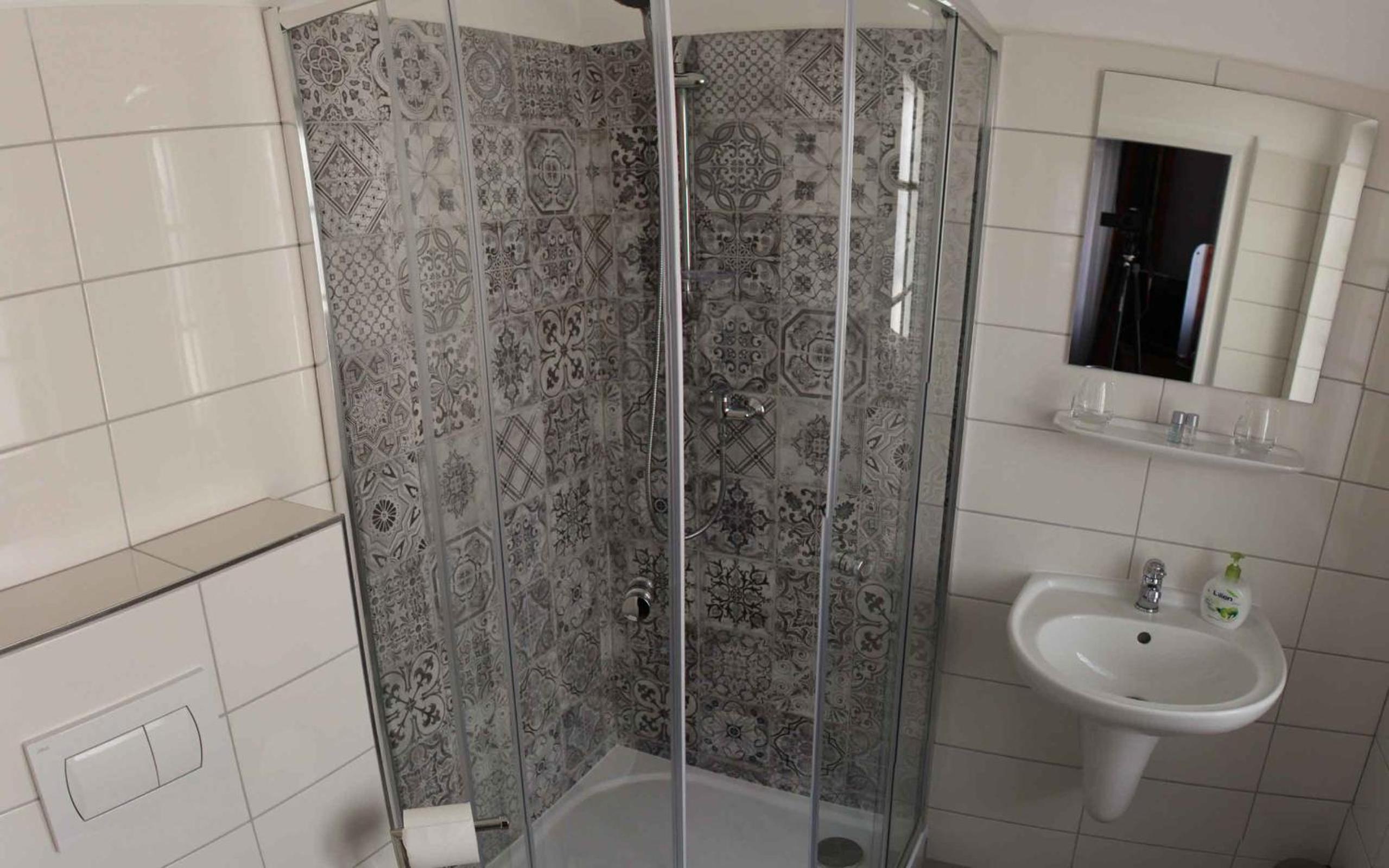 Treppe etwas eng, wenn man viel Gepäck hat. Duschkopf undicht