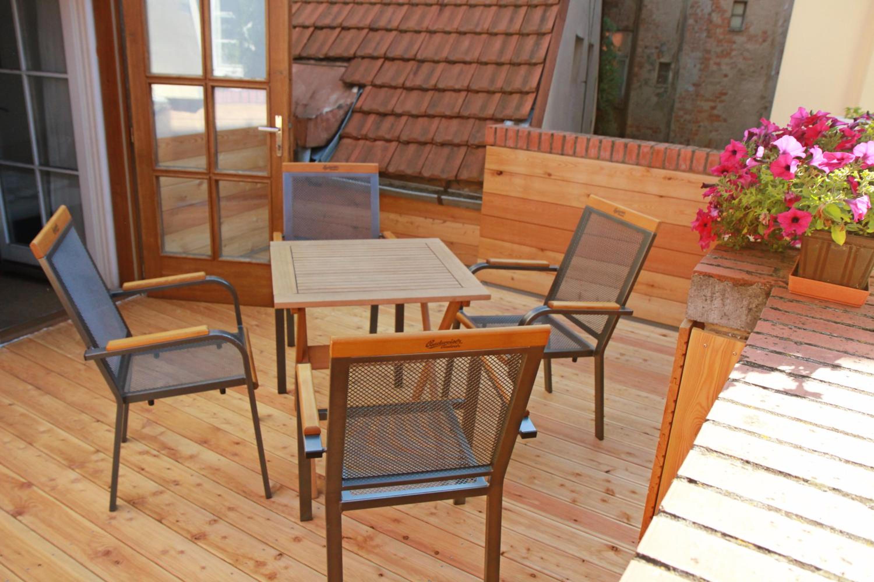 Velký čistý apartmán v centru města s nádhernou terasou a pohodlnou postýlkou. Parkování ve dvoře a pekárna za rohem nas taky moc uspokojila 😅😊