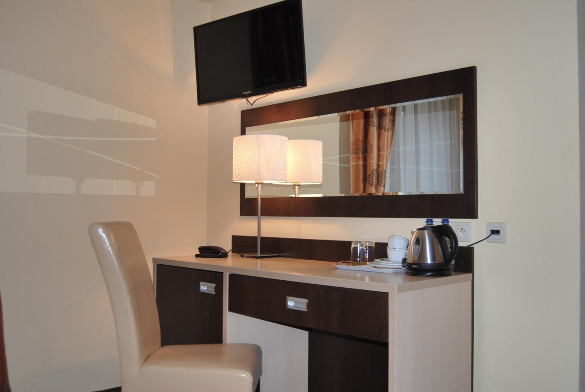 The classically appointed and bright rooms at Hotel Eljot are equipped with modern amenities including a flat-screen TV, fridge, and electric kettle. The private bathrooms feature showers and complimentary towels for your comfort.