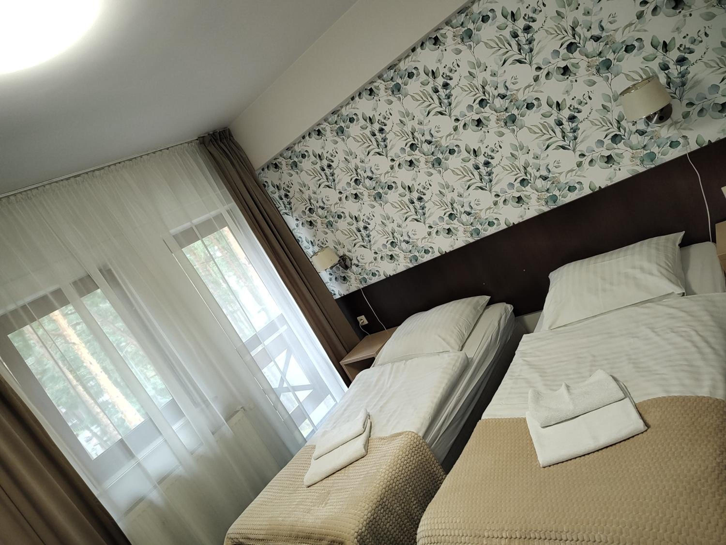 Hotel bardzo ładnie położony wśród sosen, niedaleko jeziora. Pomocny personel. Spokojnie.