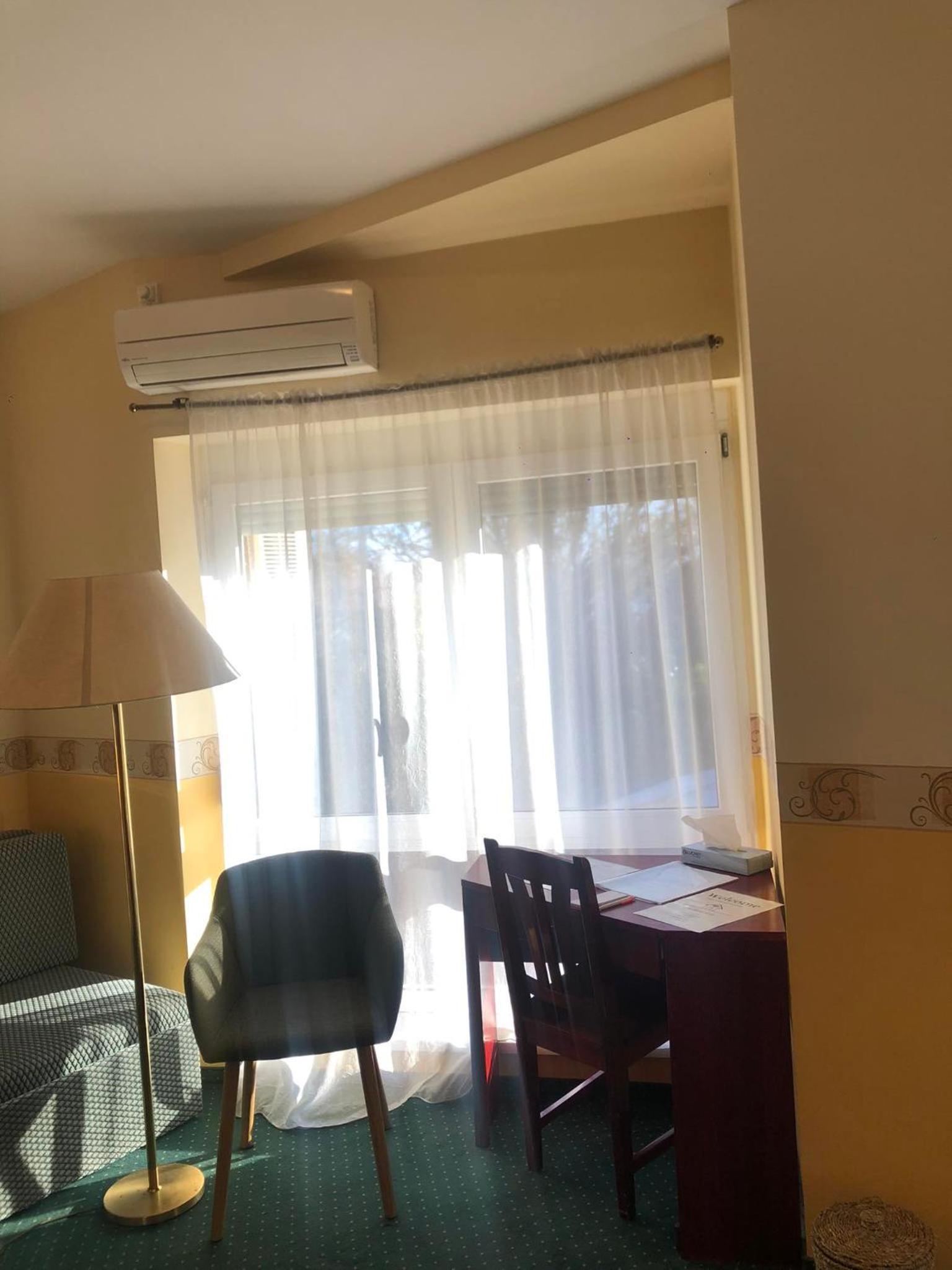 Endlich im Zimmer, hatten wir 35° !! Unaushaltbar.
