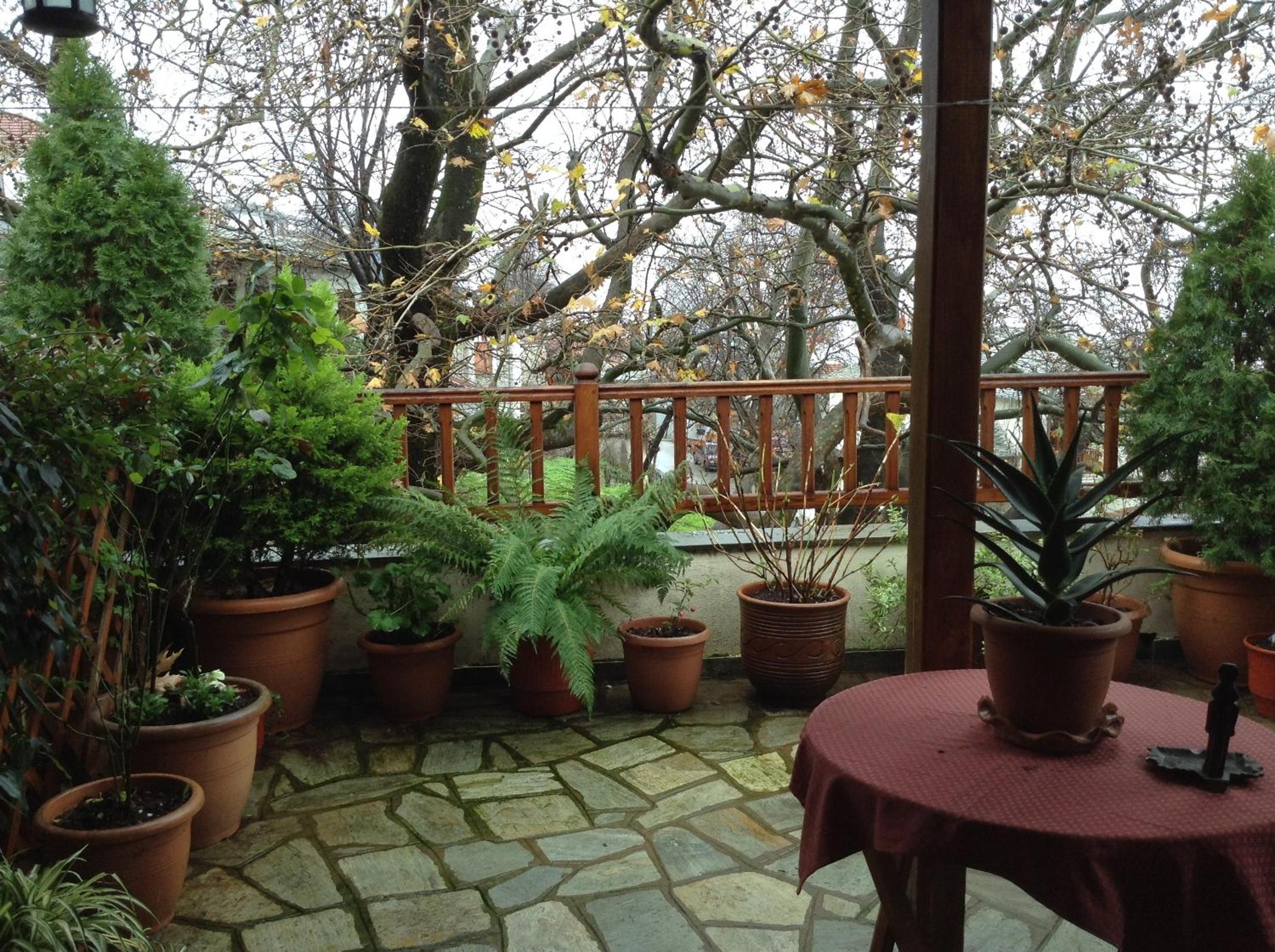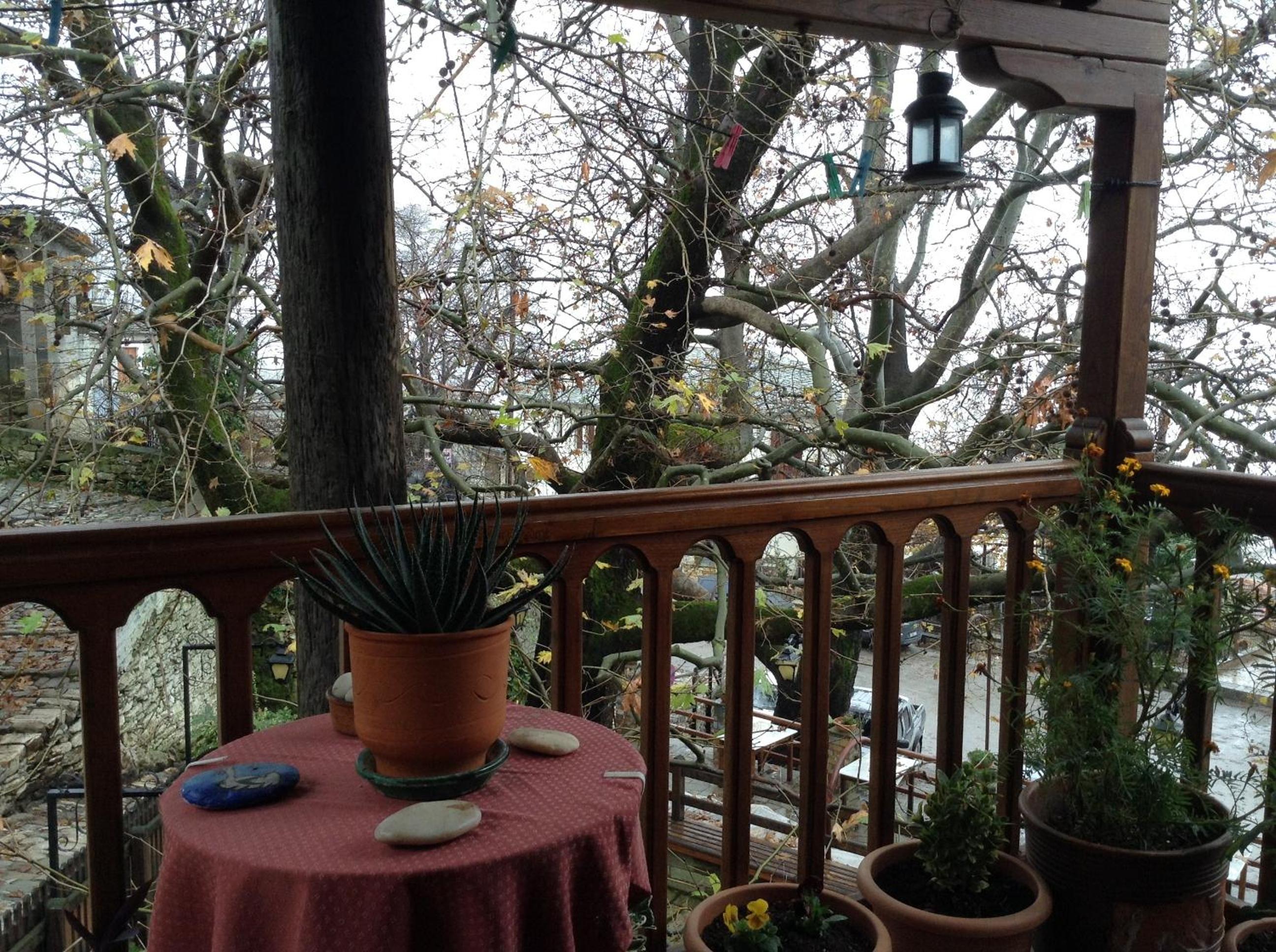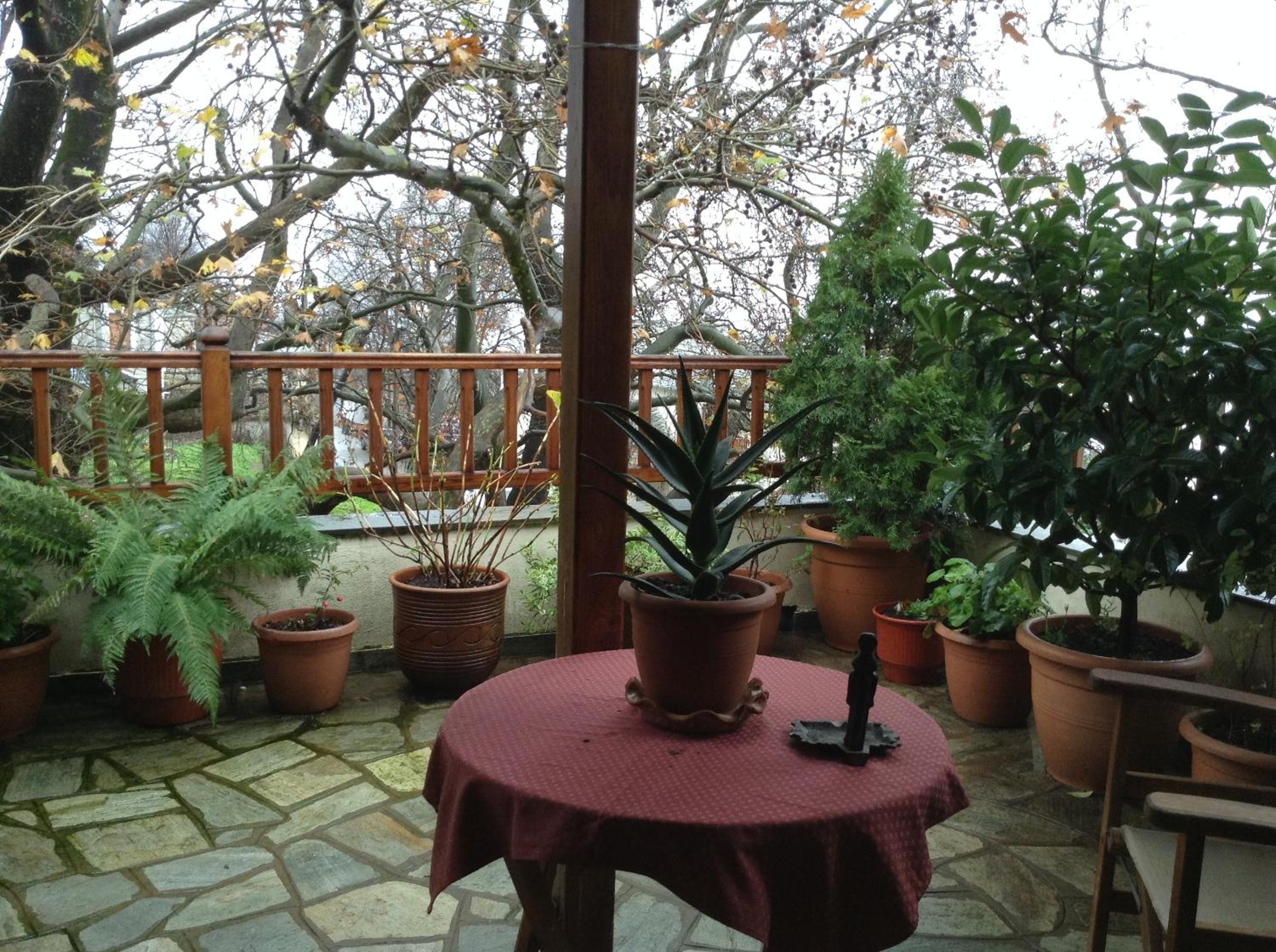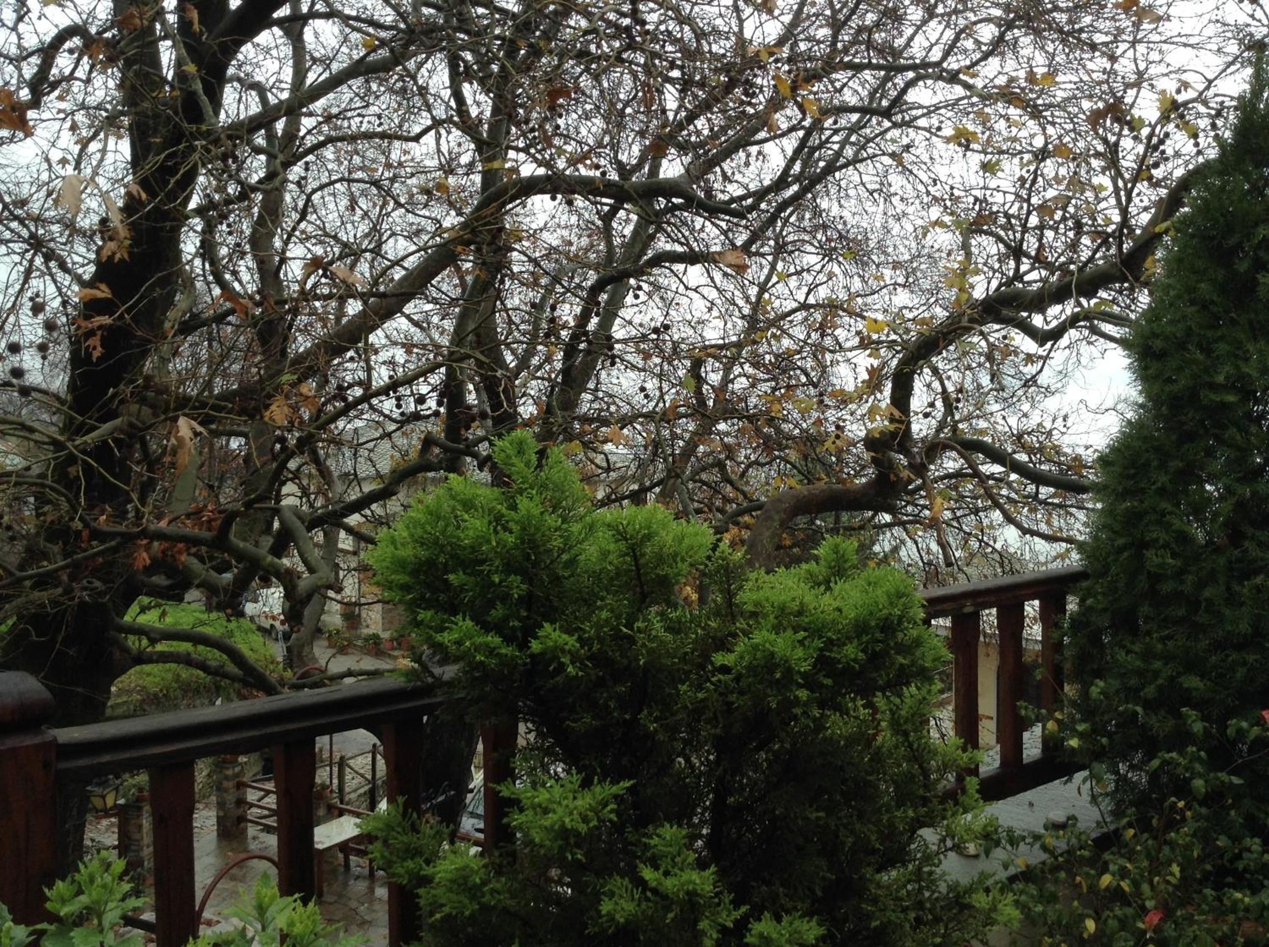 The little yard of our room, in the shade of tri-century plane trees, the closeness with both the central square and the bus station, the kindness of our hostess and the staff.