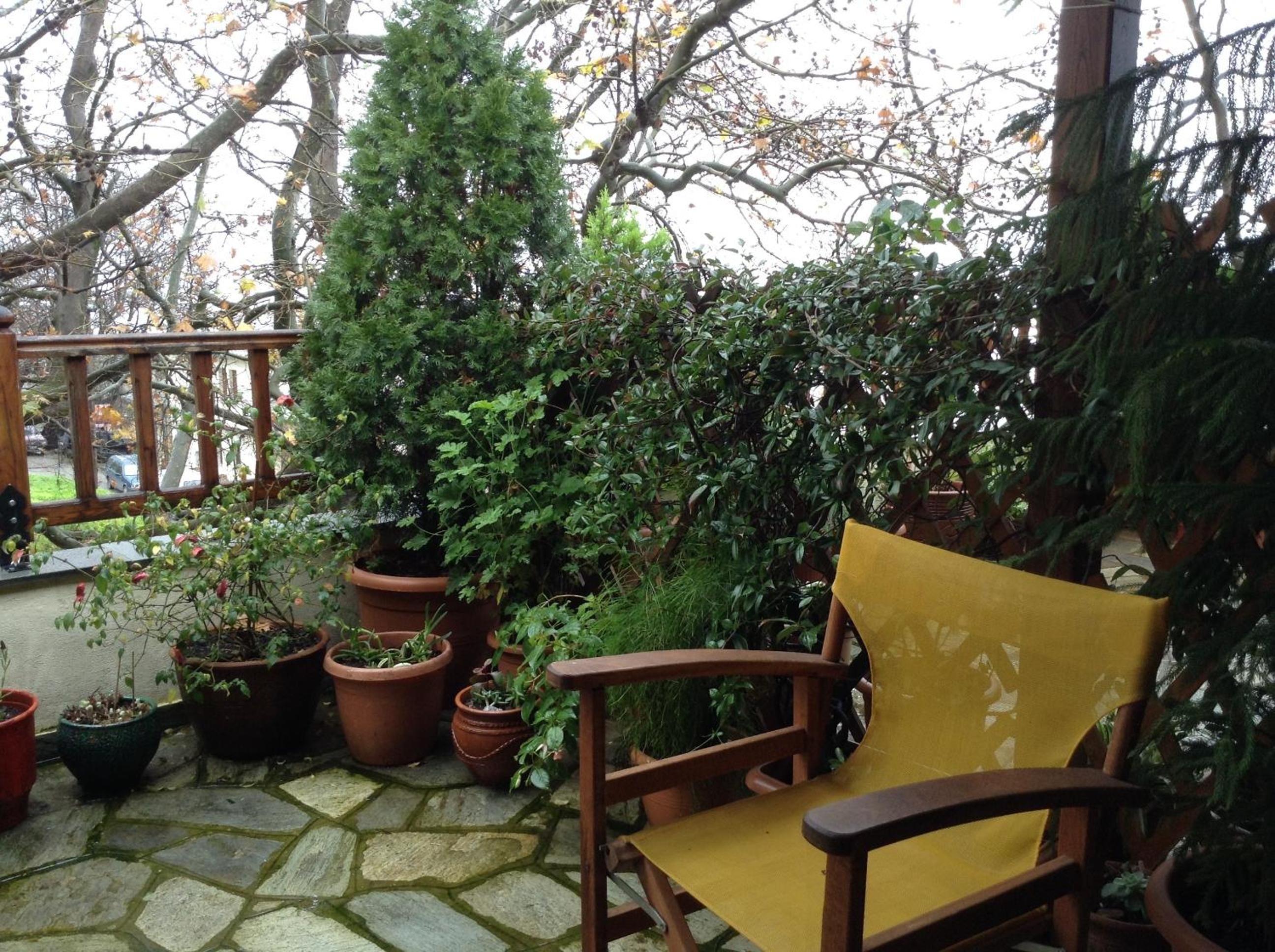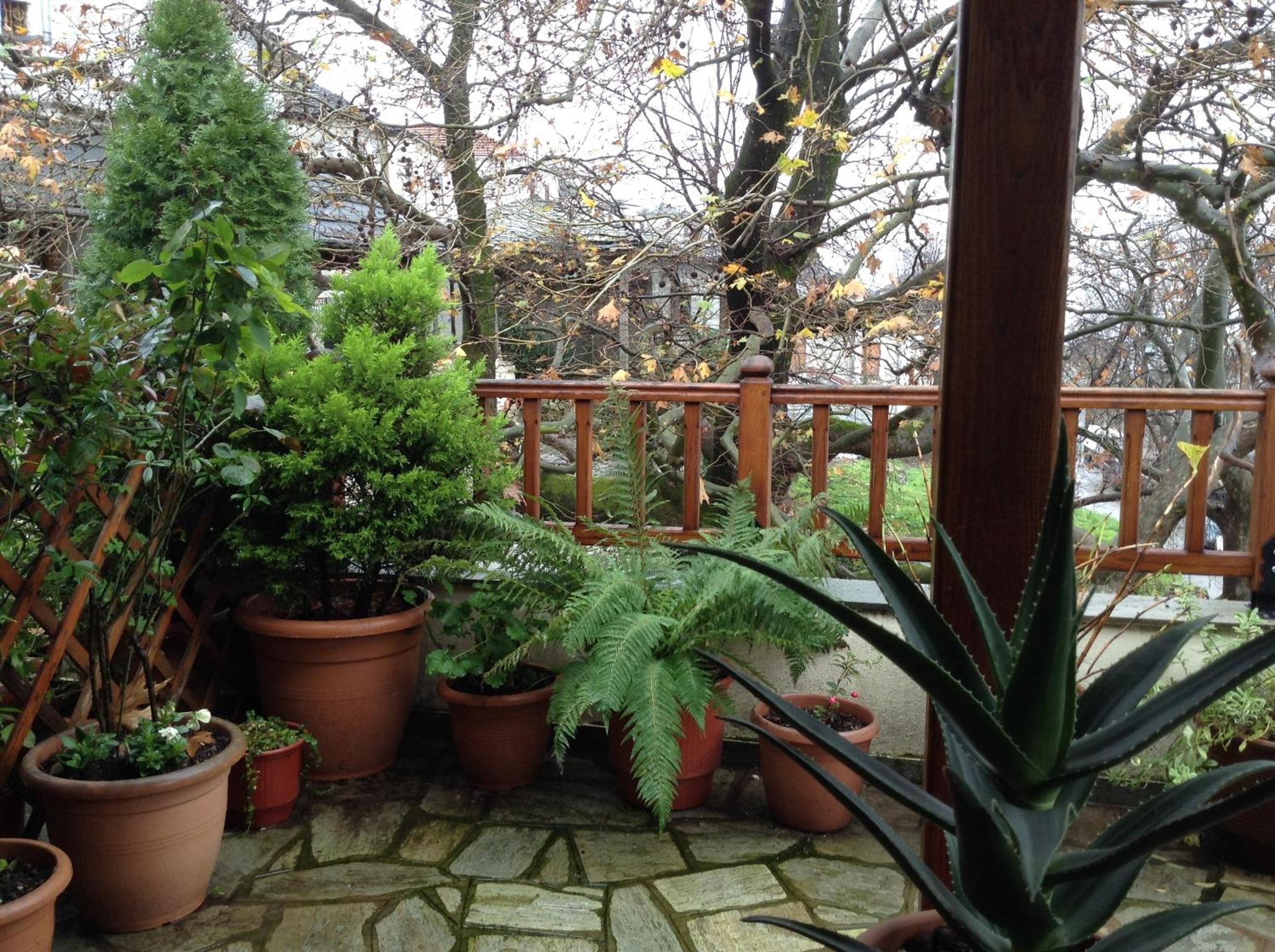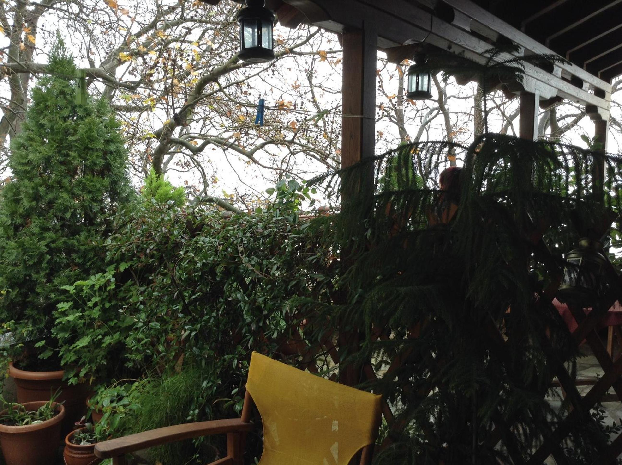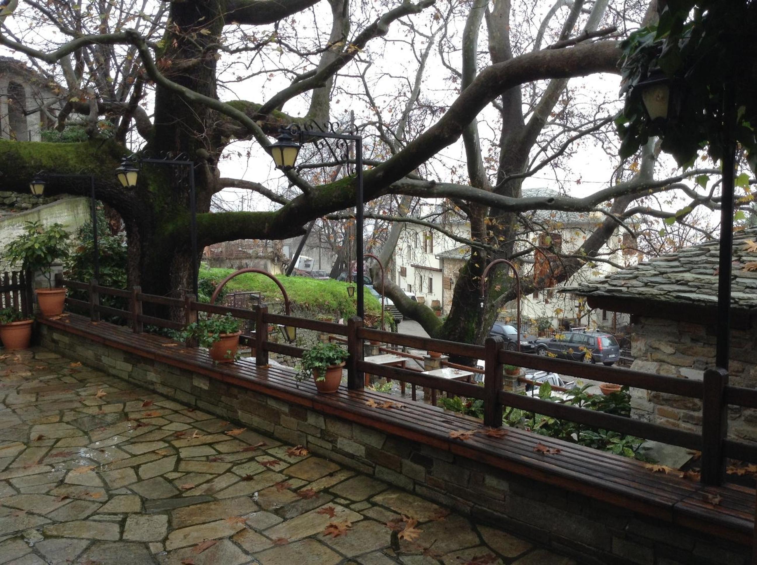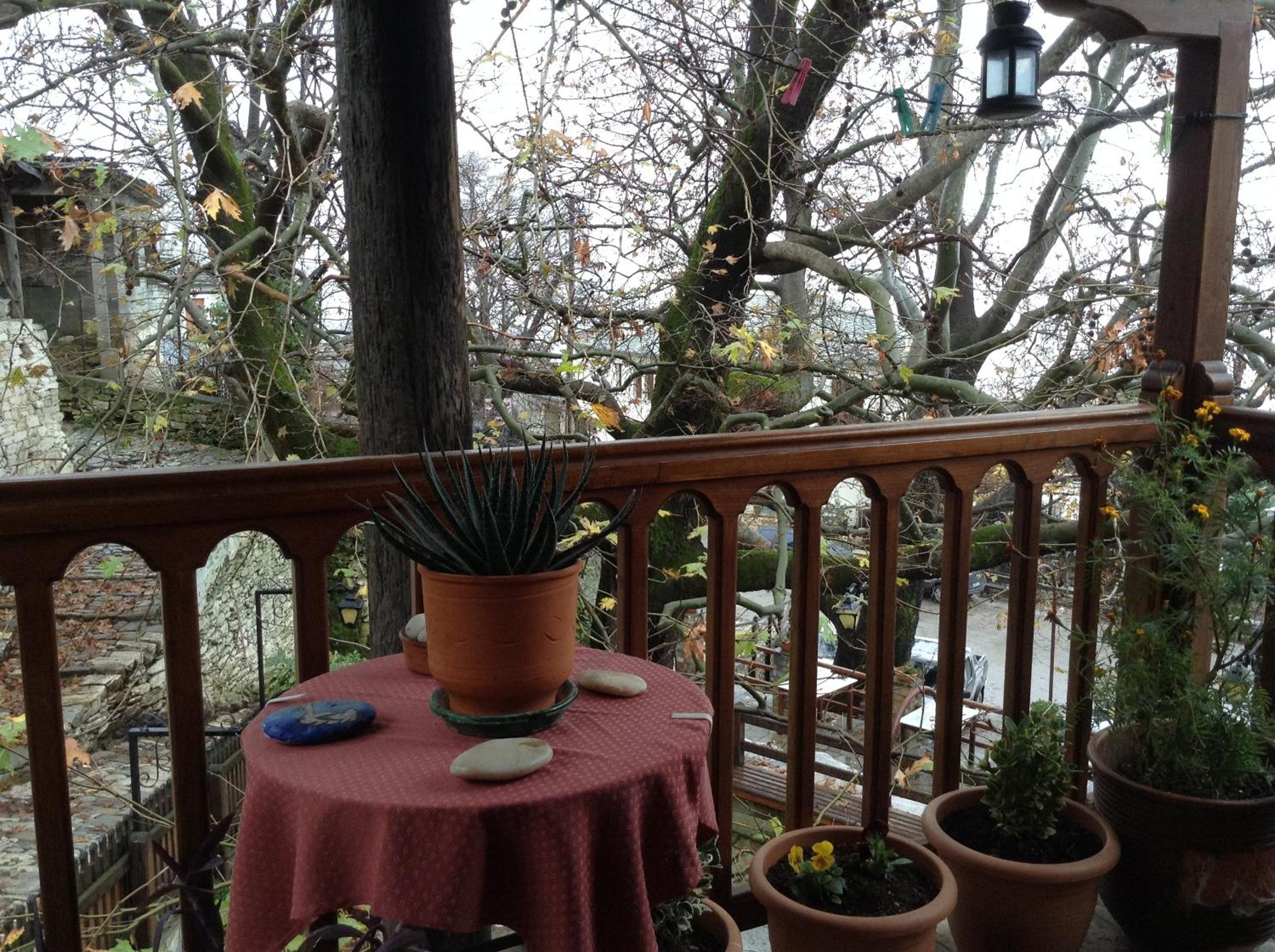 The little yard of our room, in the shade of tri-century plane trees, the closeness with both the central square and the bus station, the kindness of our hostess and the staff.