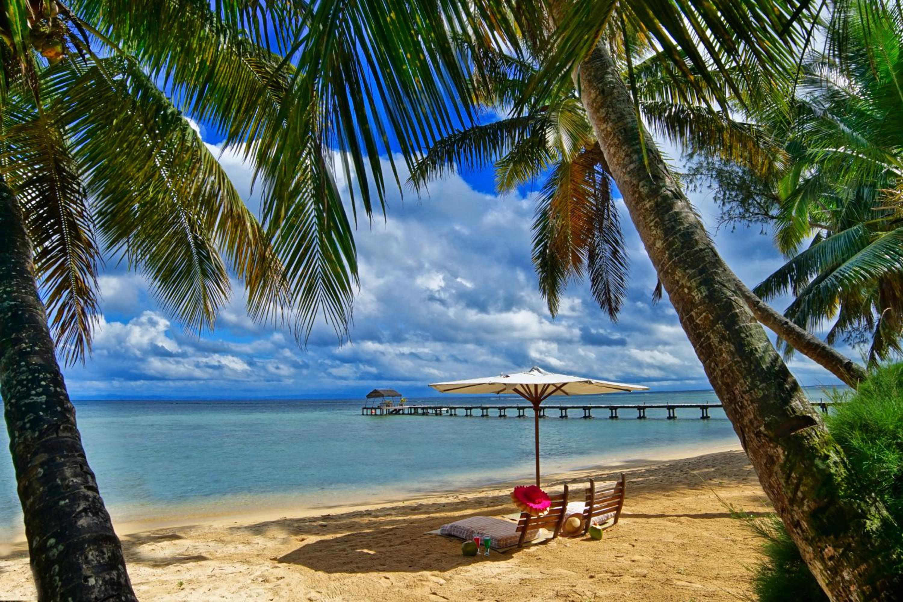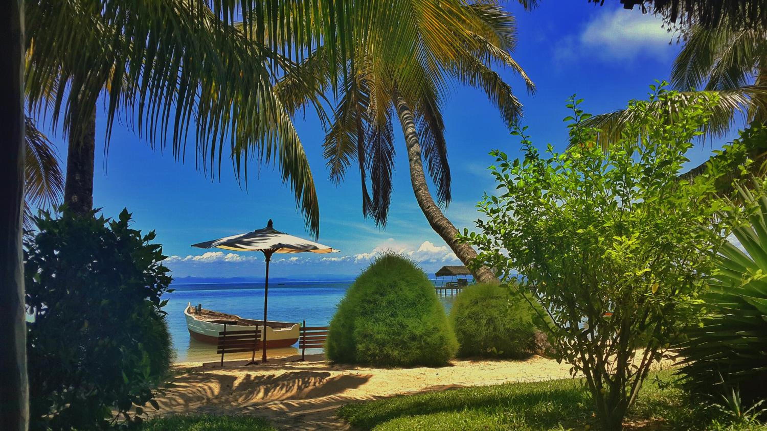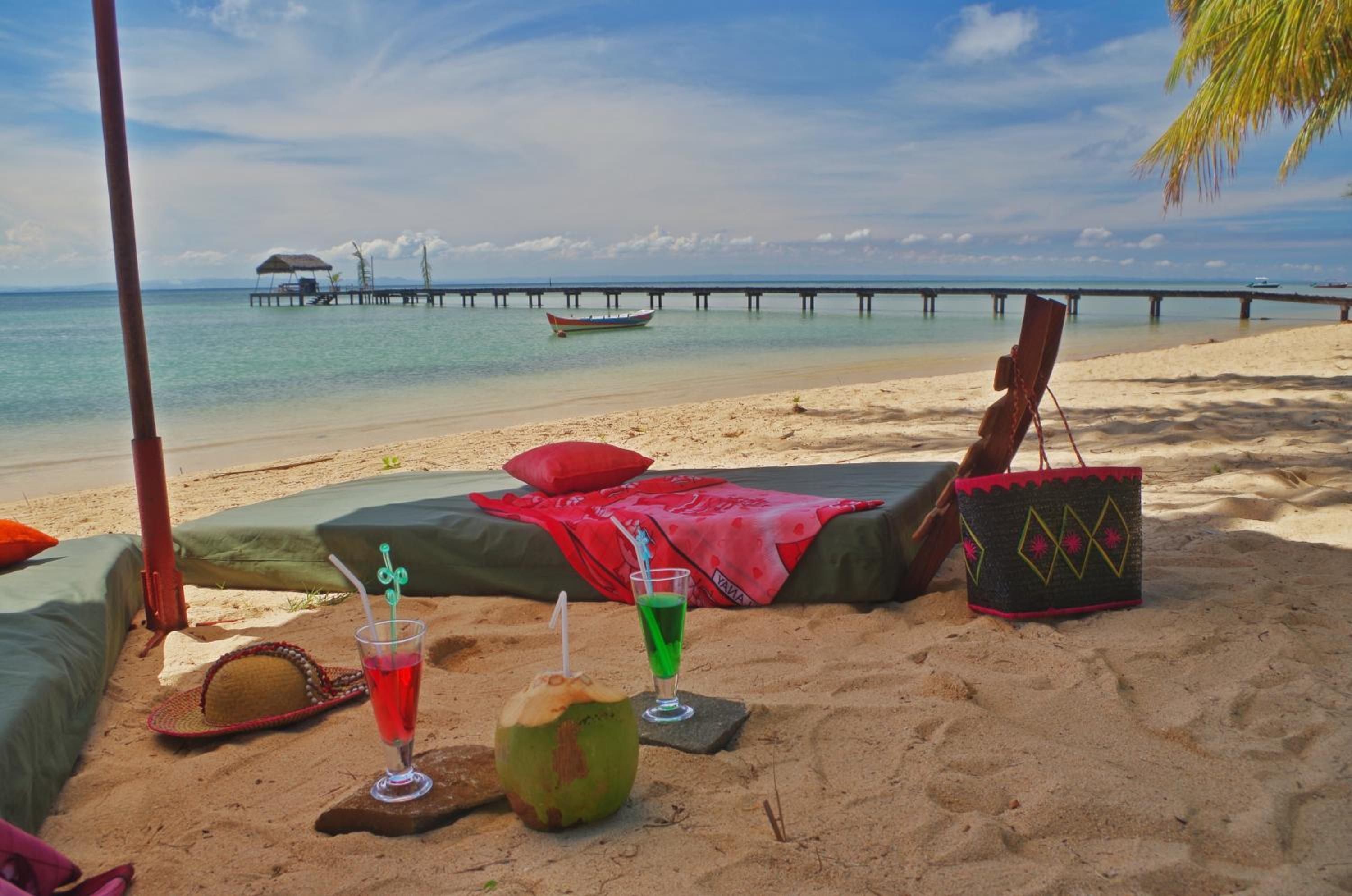 The beachfront can be tricky to swim in without water shoes although there is a nice swimmable section at the end of the hotel's pier. La Pointe Sud is a beautiful beach that isn't far to get to by Tuc Tuc.