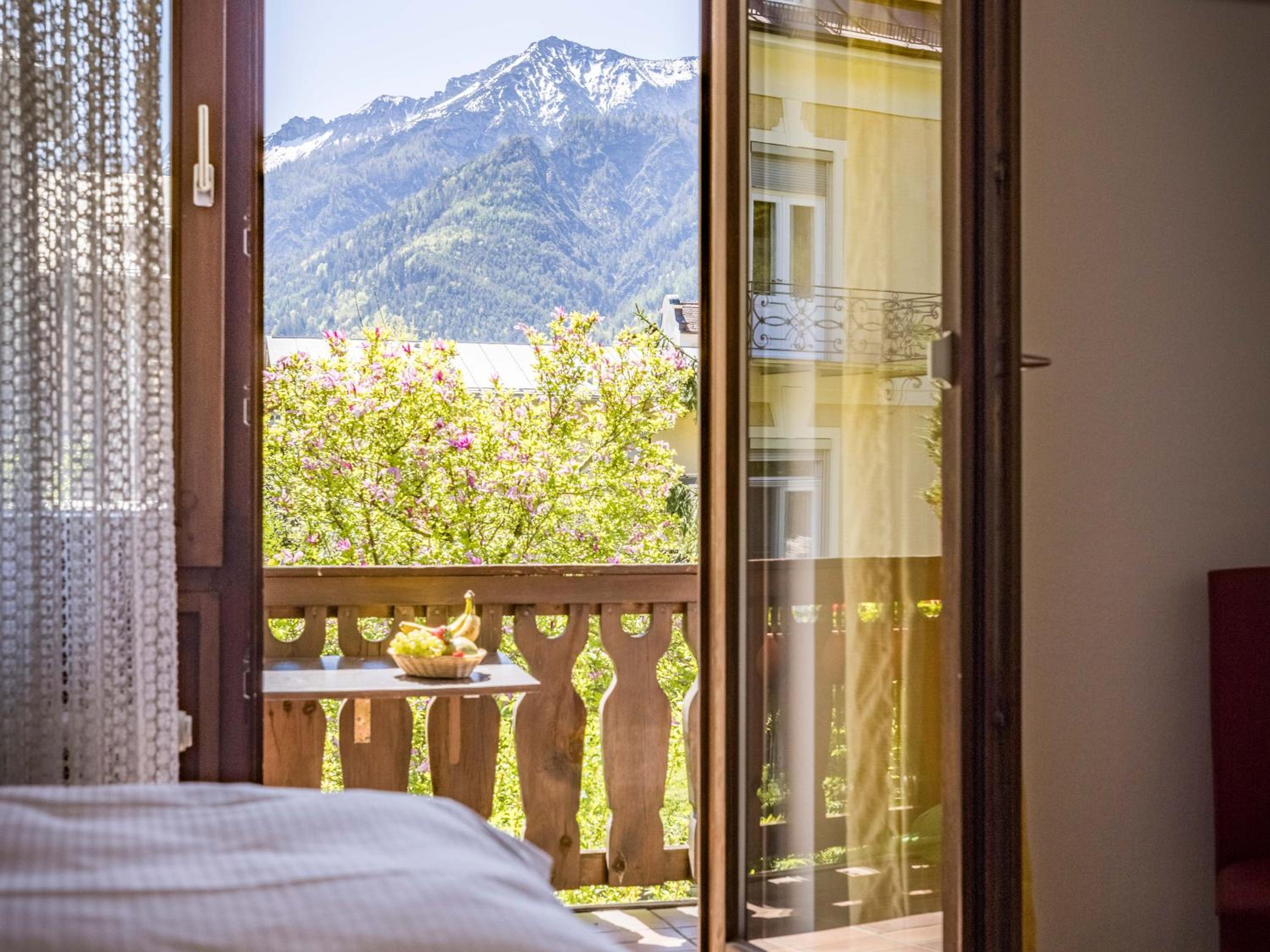 У нас был великолепный вид с балкона на горы. Отличное расположение отеля, бесплатная парковка, рядом парк и термы. Приятный приветливый персонал. Хороший разнообразный завтрак.