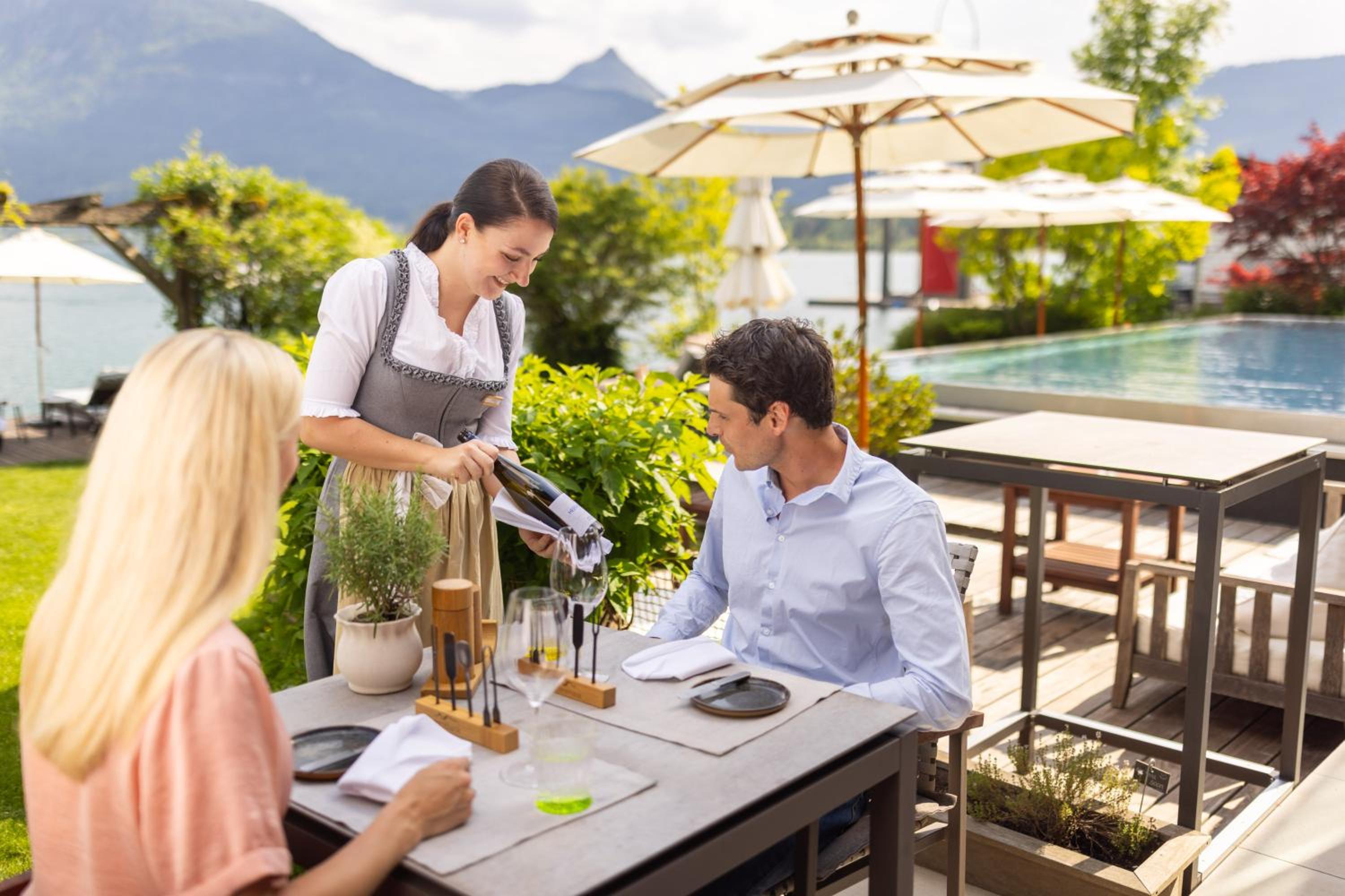 Indulge in a delightful breakfast buffet every day until 11:30, complete with fresh fruit, an array of bread rolls, yoghurt, and muesli. Additionally, guests can savor Austrian cuisine made from local ingredients at the on-site restaurant with a charming lakeside terrace (reservation needed).