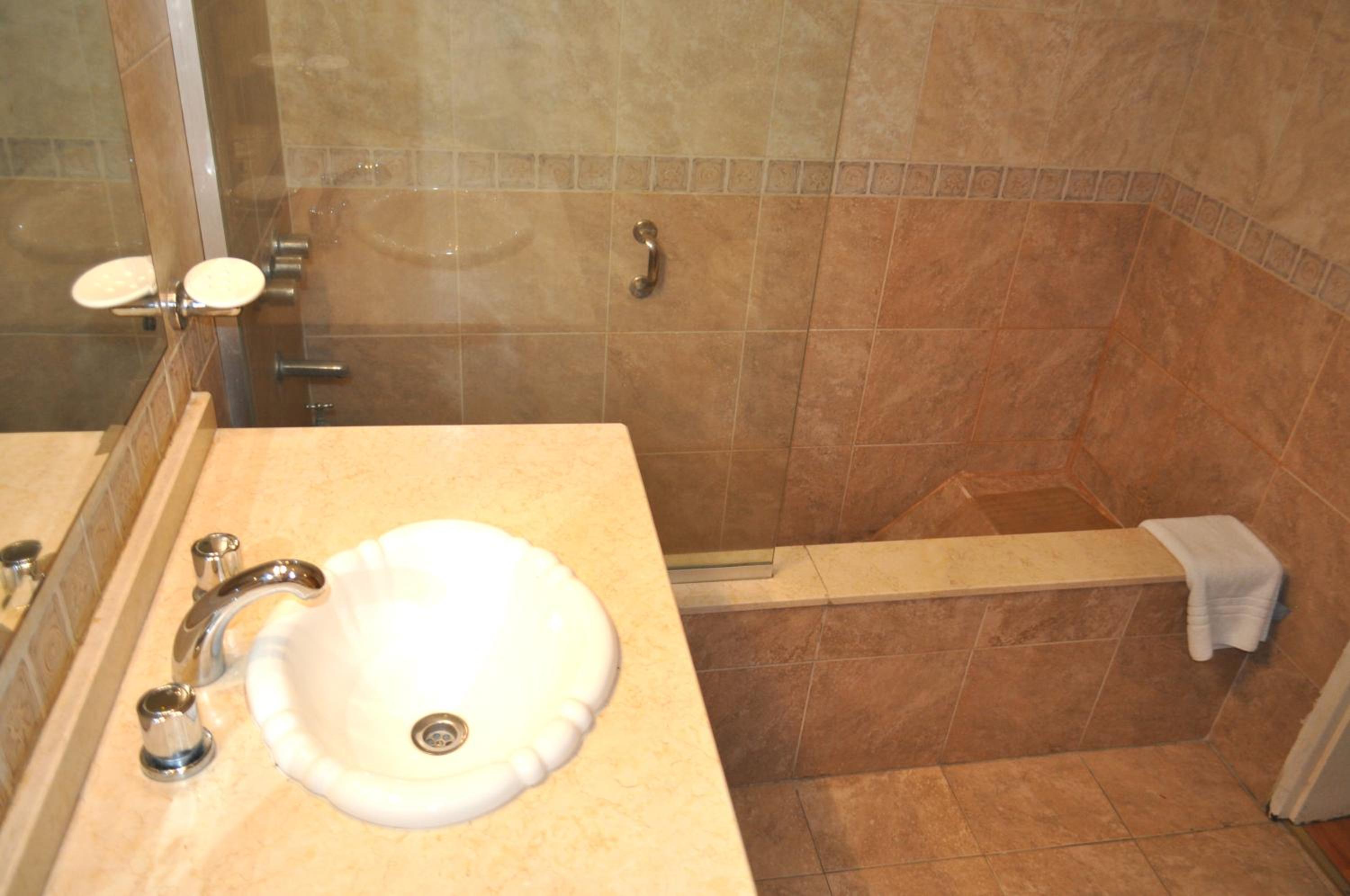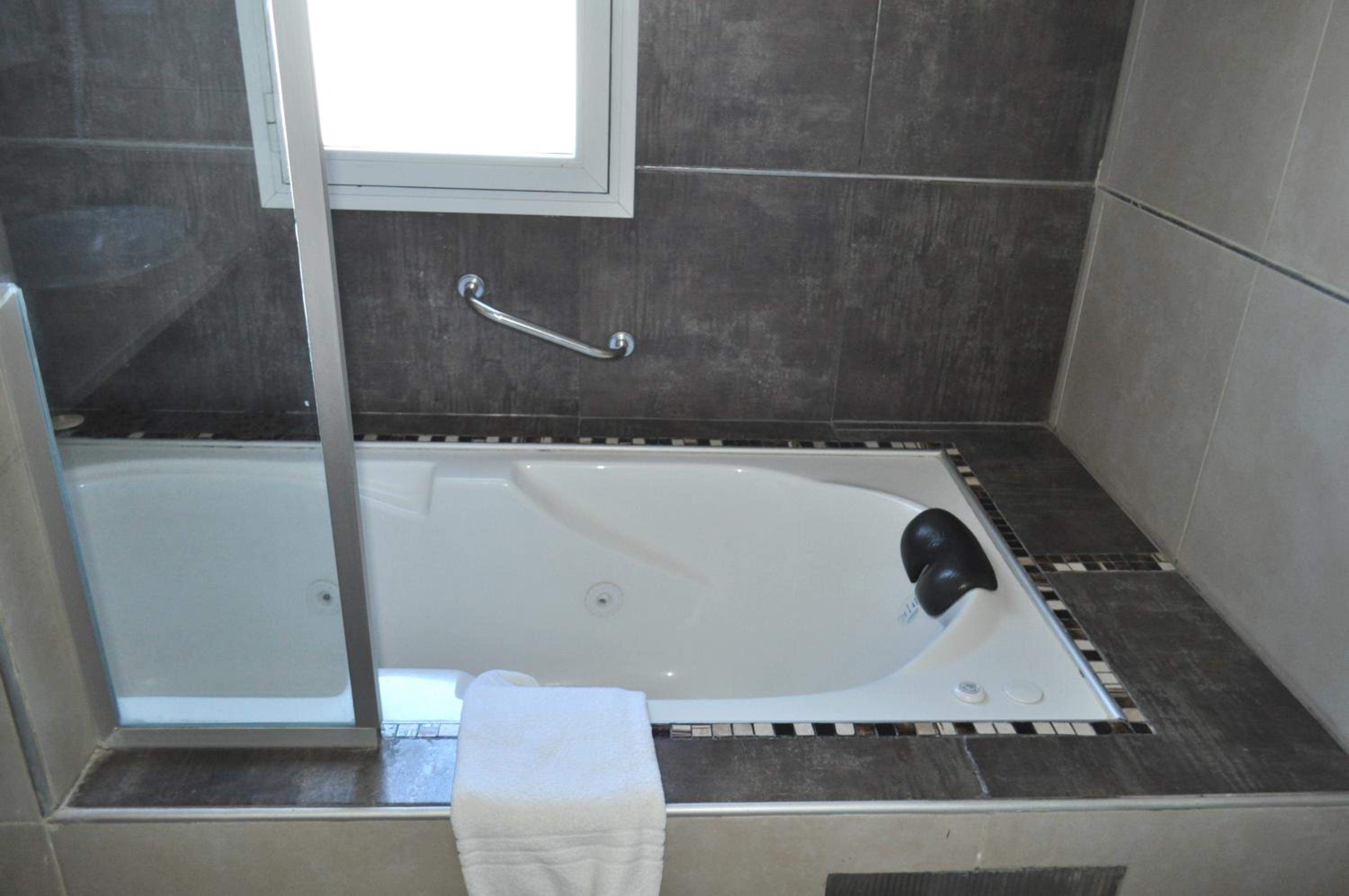 Experience a restful stay in rooms adorned with soft hues, air conditioning, and heating. Each room is equipped with a sommier bed, ceiling fan, safe, and private bathroom facilities. Upgrade your stay with rooms featuring spa baths for added luxury.