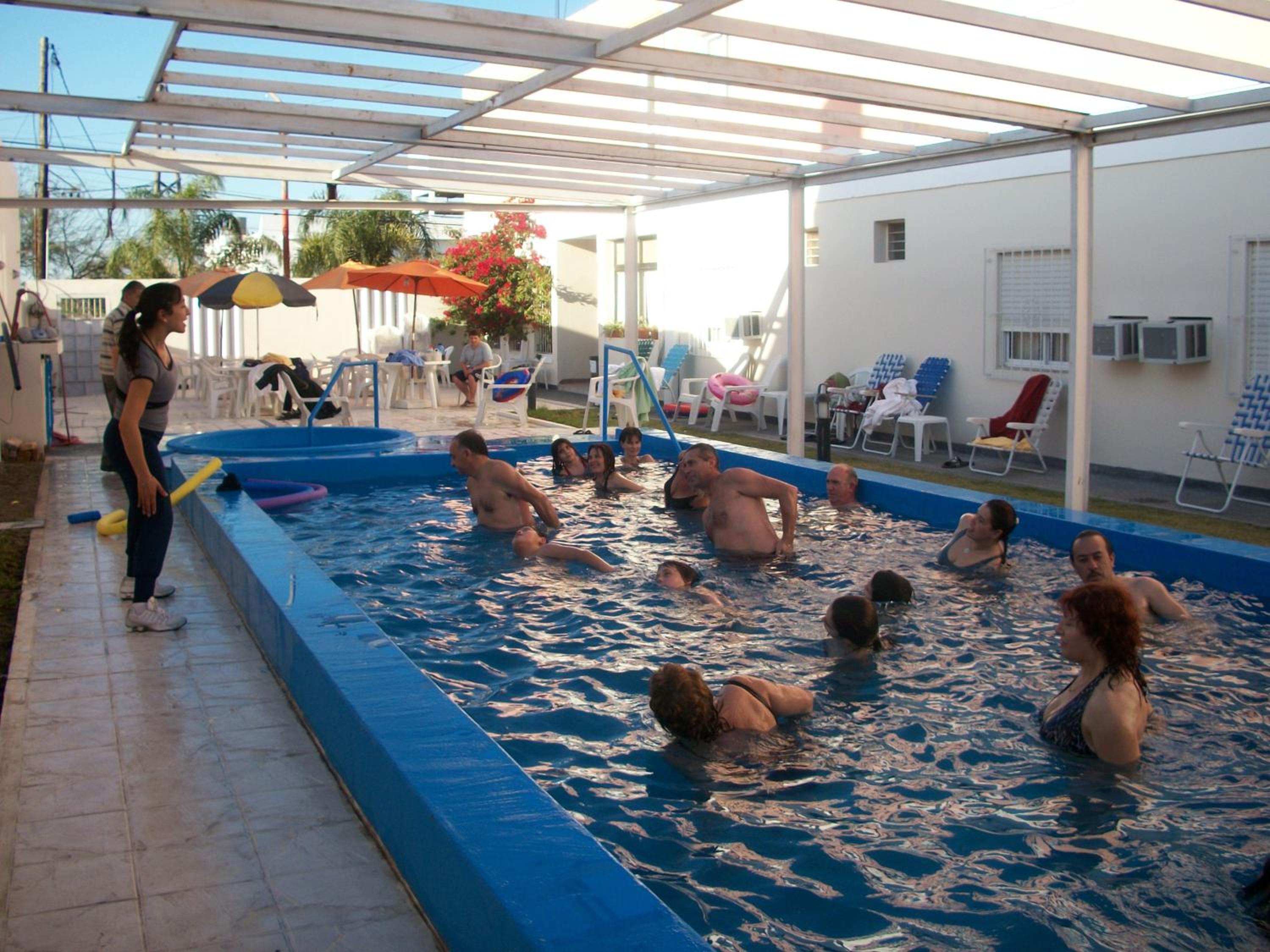 toallón roto, muchos chicos molestando en pileta termal